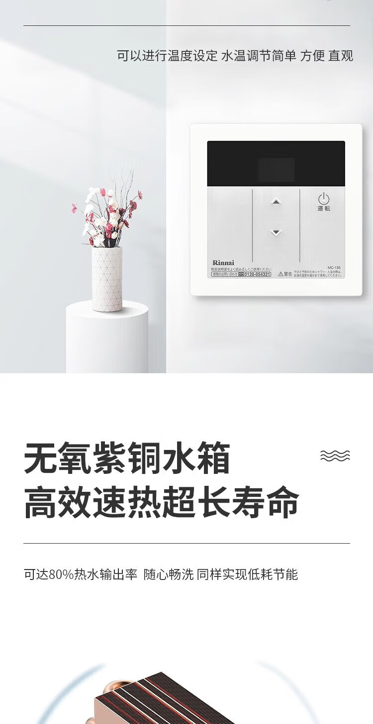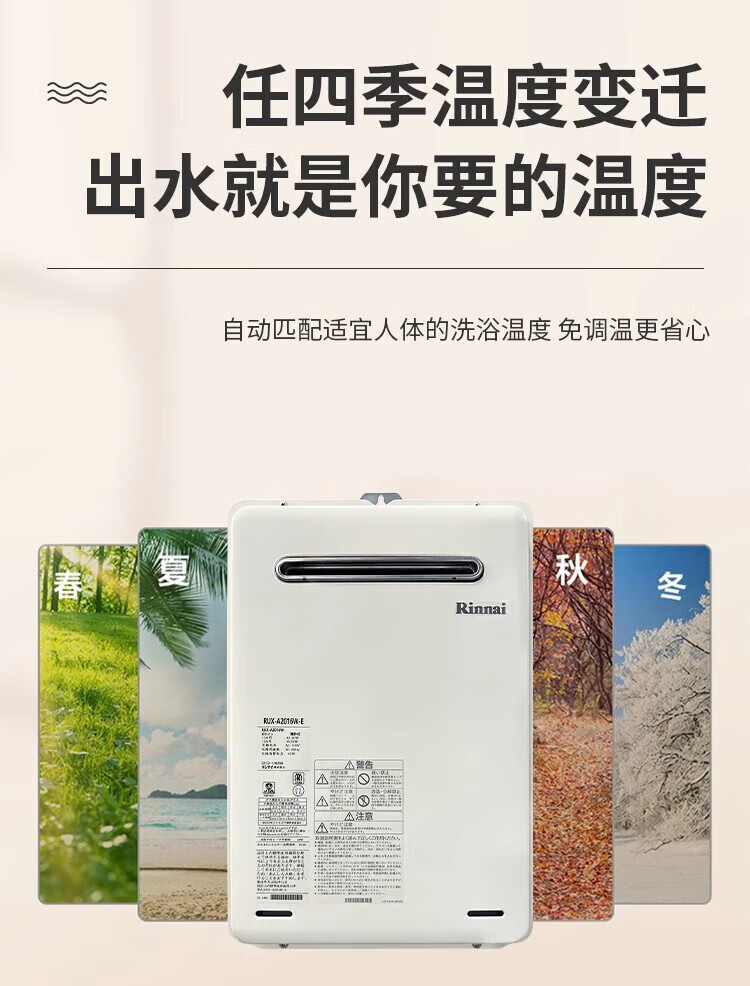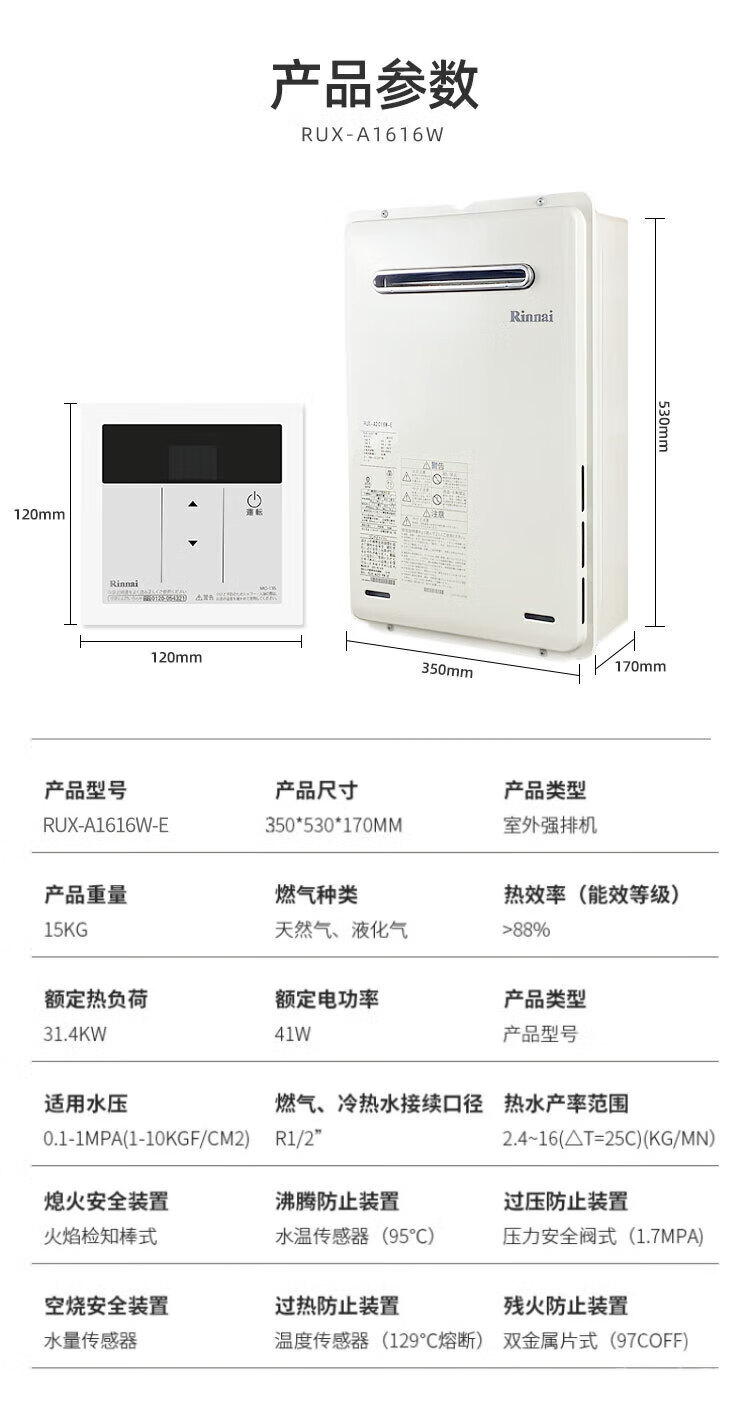 林内(Rinnai)日本原装进口燃气热水器RUX-A1616W-E水量伺服恒温静音防冻室外机 16L 带水量伺服器RUX-A1616W-E 天然气