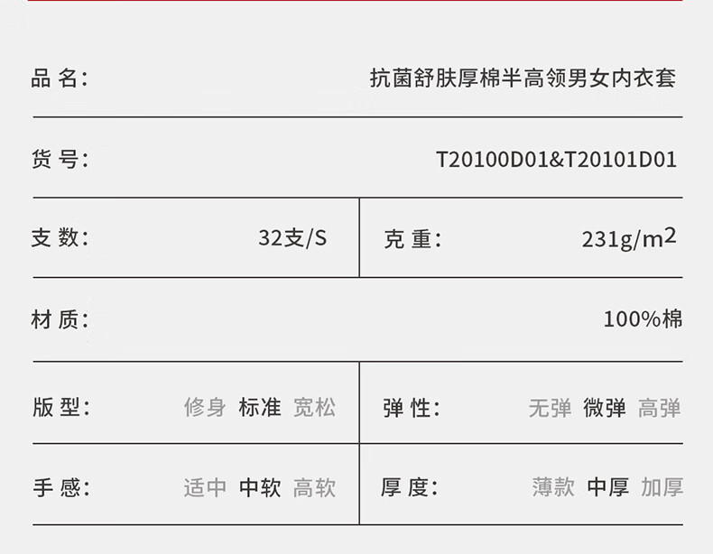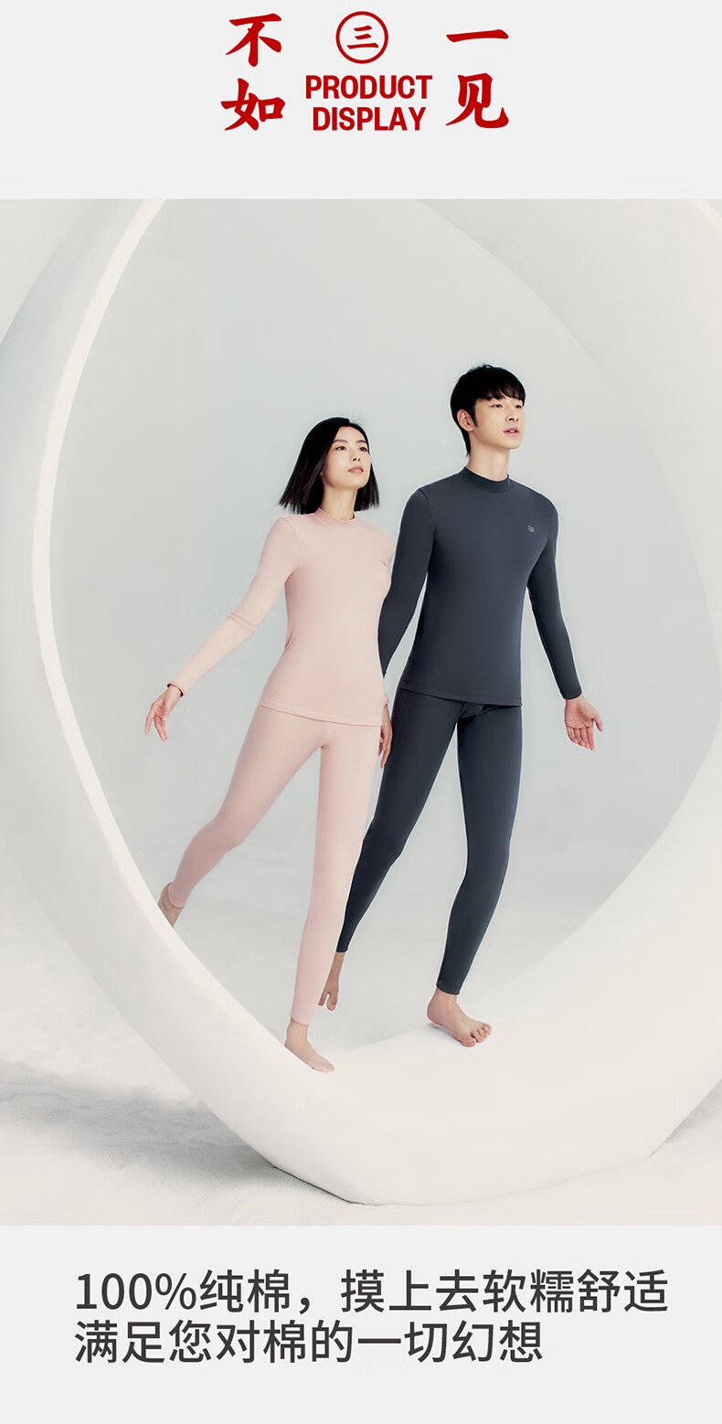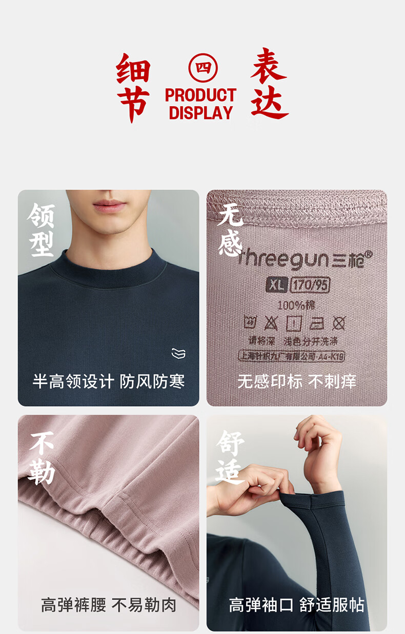 三枪秋衣秋裤男[原纱抗菌]全棉半高领保暖内衣抗静电厚棉毛衫裤套装