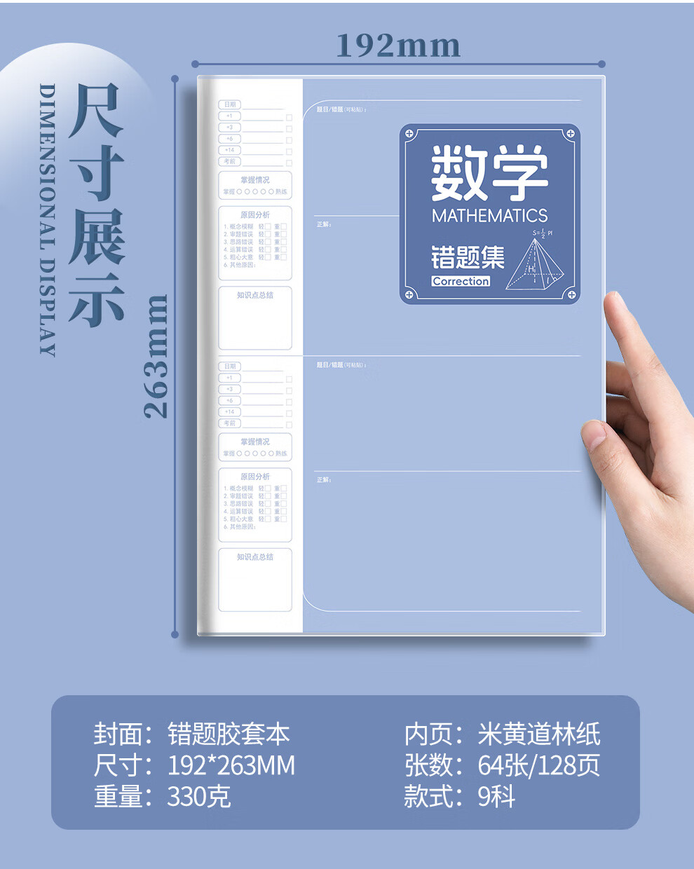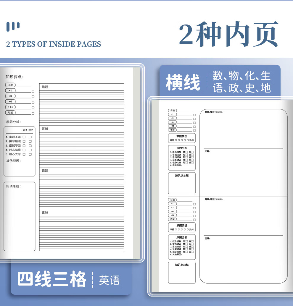 佐澜哲【3本装】B5胶套错题本小学初高中生专用数理化加厚全套学科笔记本语文数学英语错题本整理神器