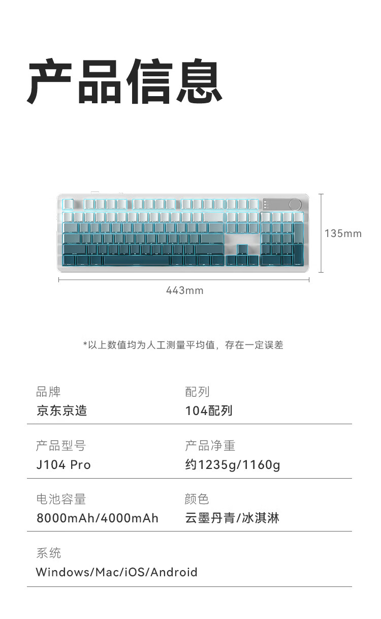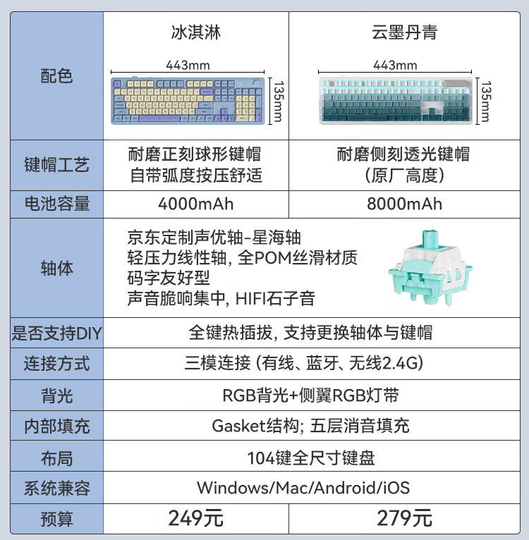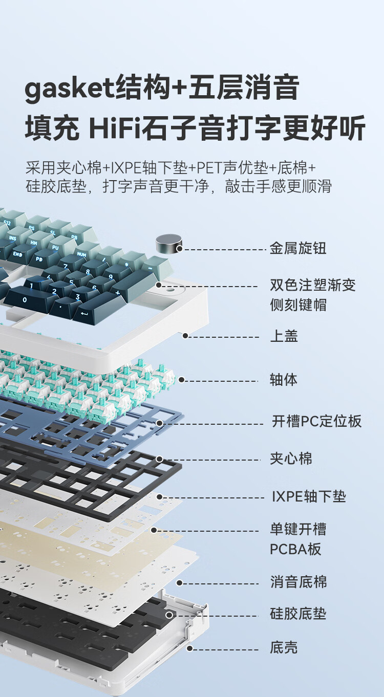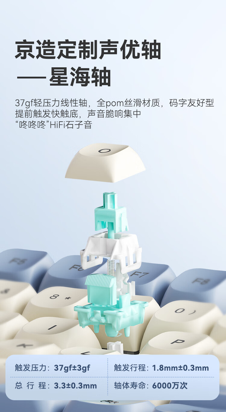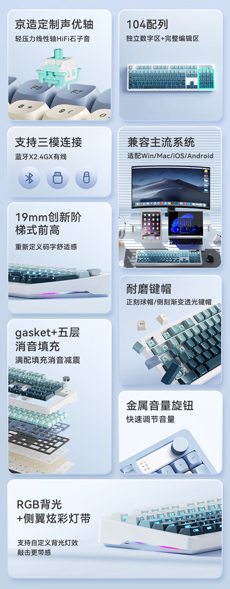 京东京造J104Pro无线蓝牙三模客制化机械键盘 游戏电竞办公104键gasket五层填充石子音 冰淇淋 星海轴