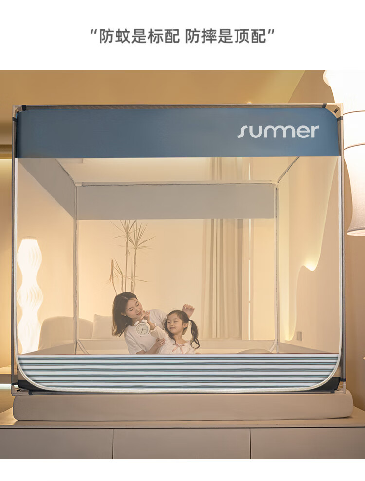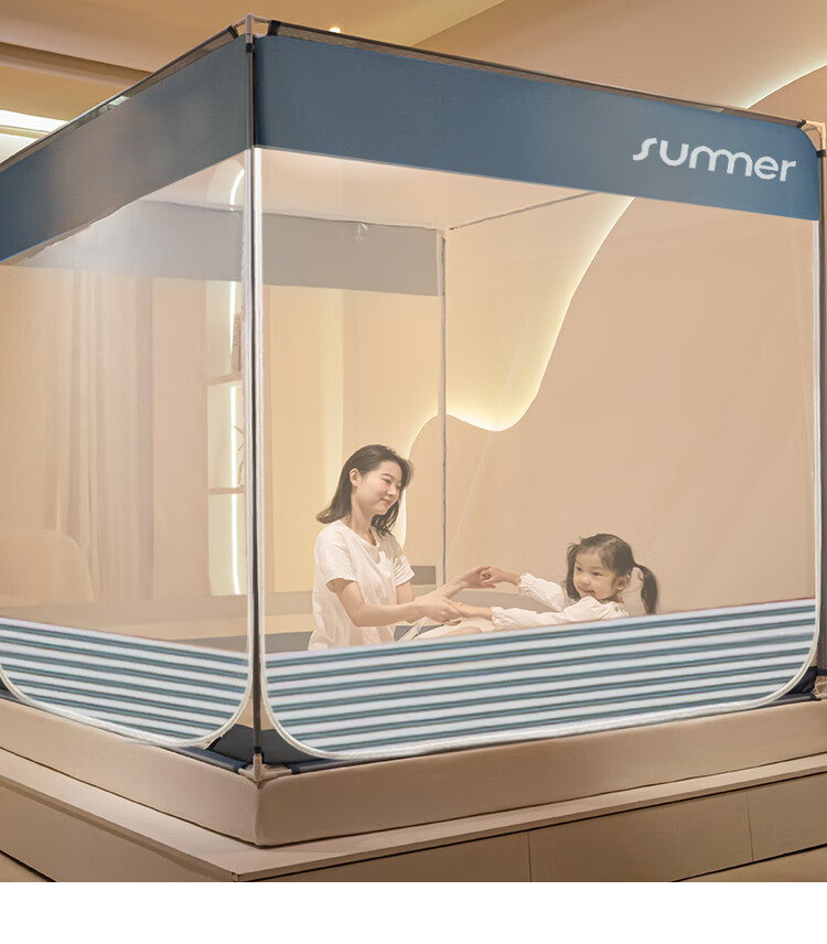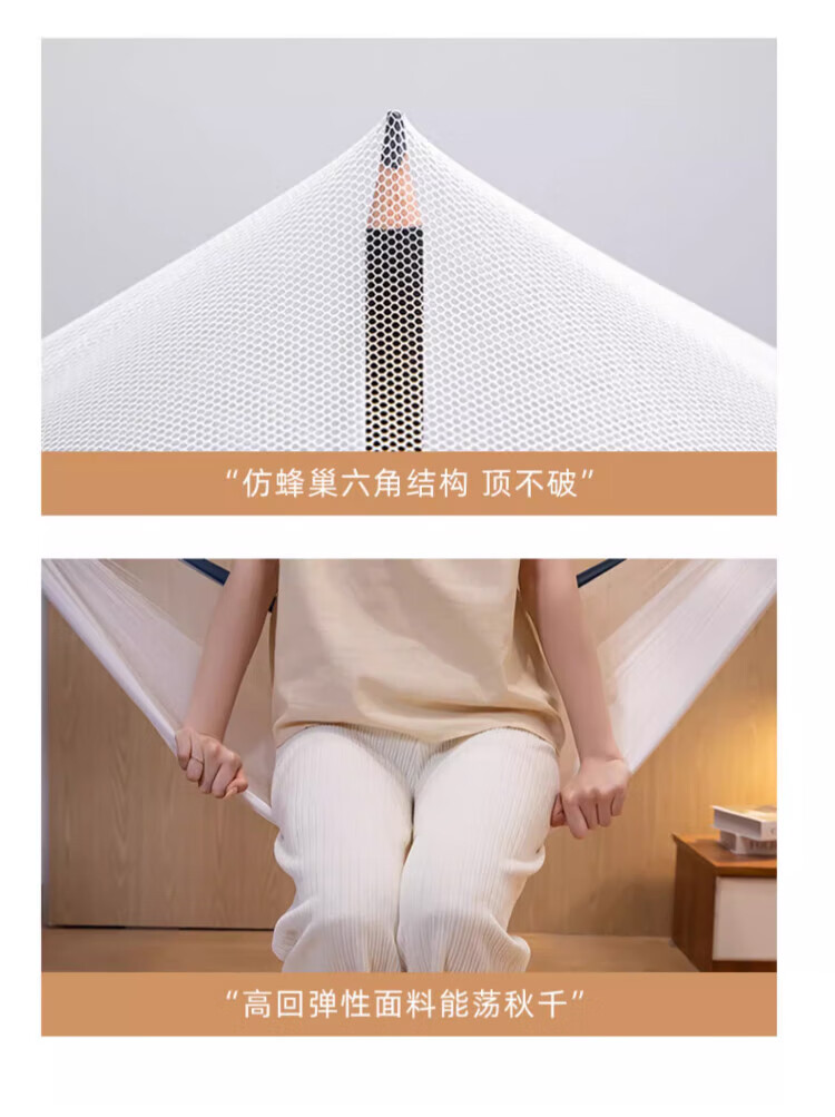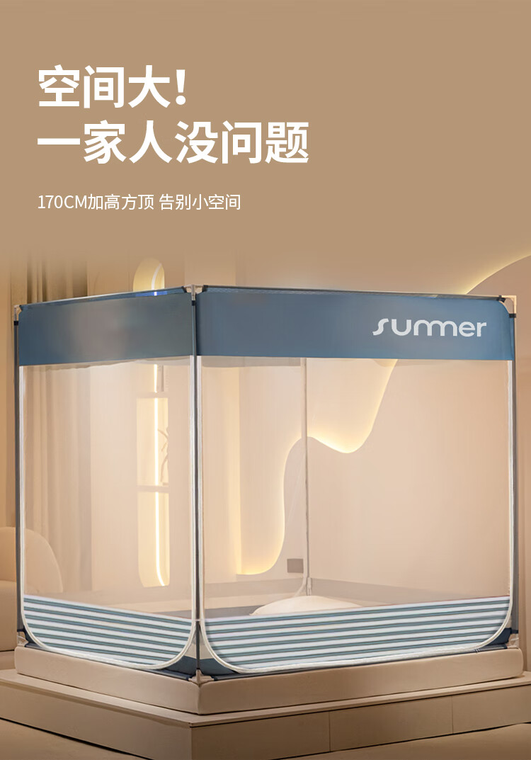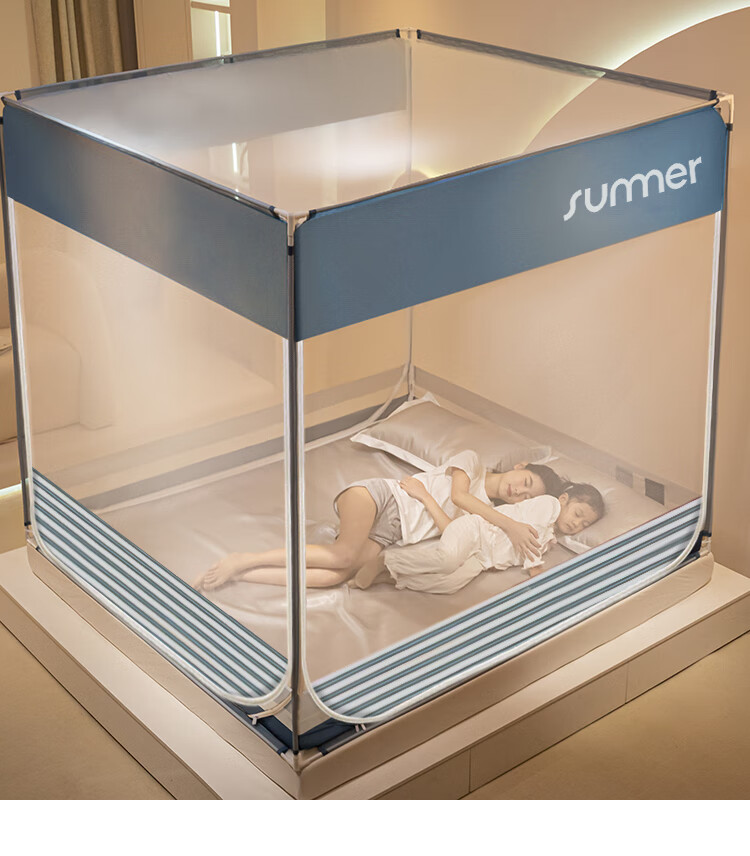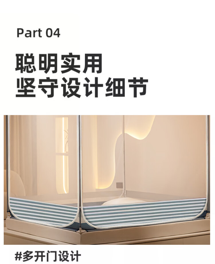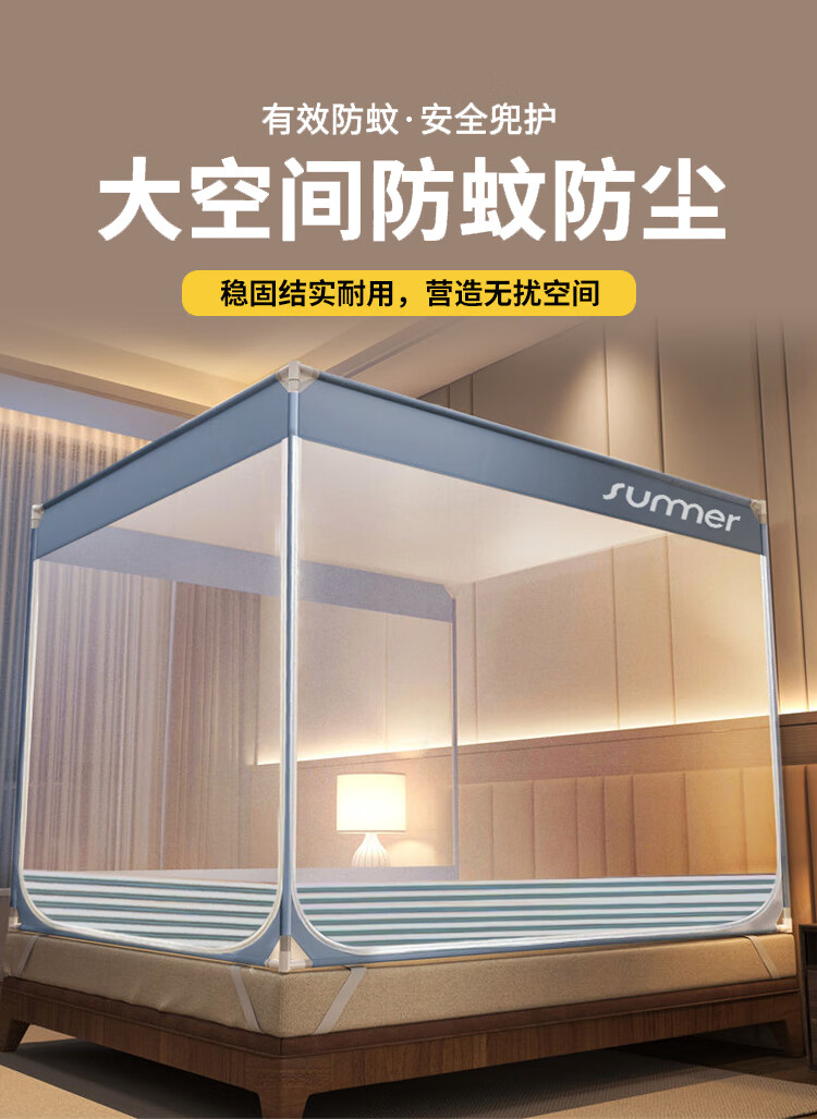 无印良品蚊帐架1.8X2米床加密帐纱三开门拉链回底方顶家用防摔含支架