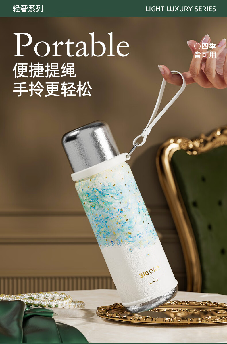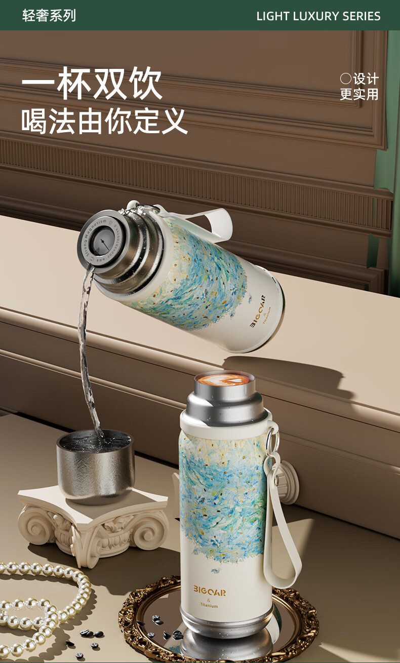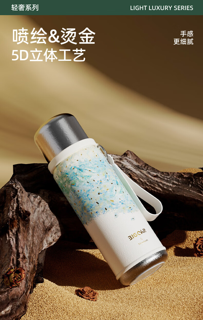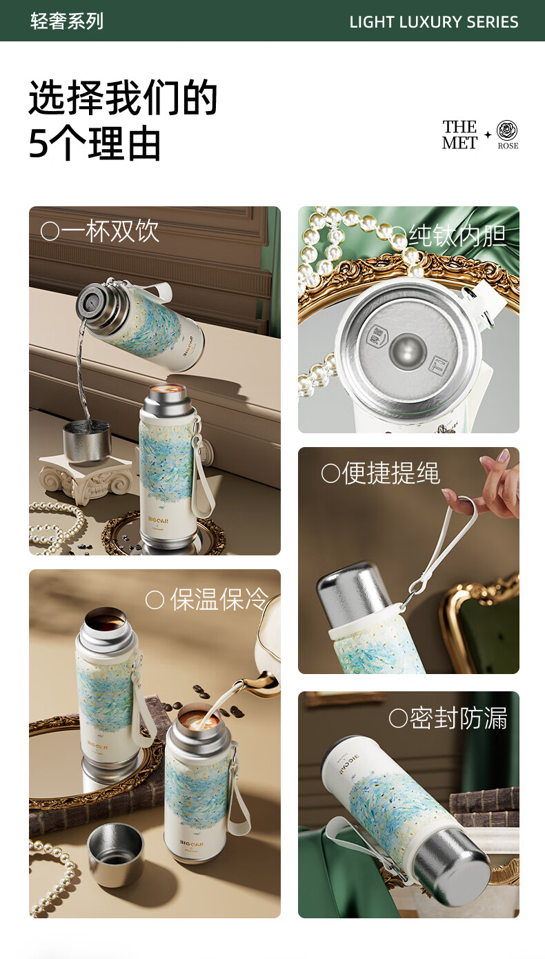 大卡纯钛保温杯大容量茶水分离钛杯女高颜值便携水杯子男女生生日礼物 【内外纯钛】睡莲650ml 机械显温+纯钛茶仓