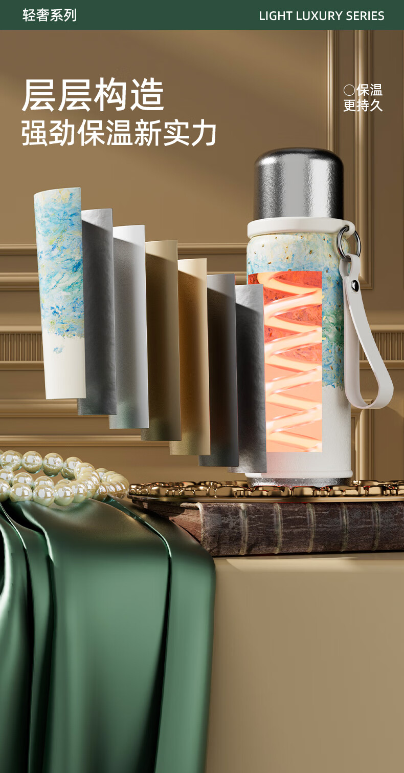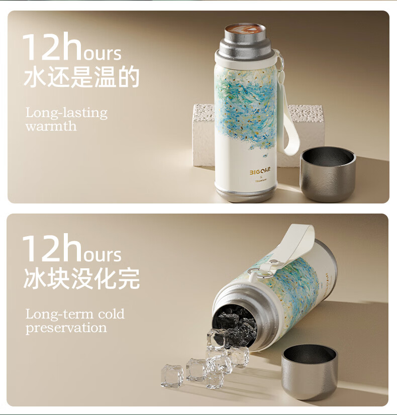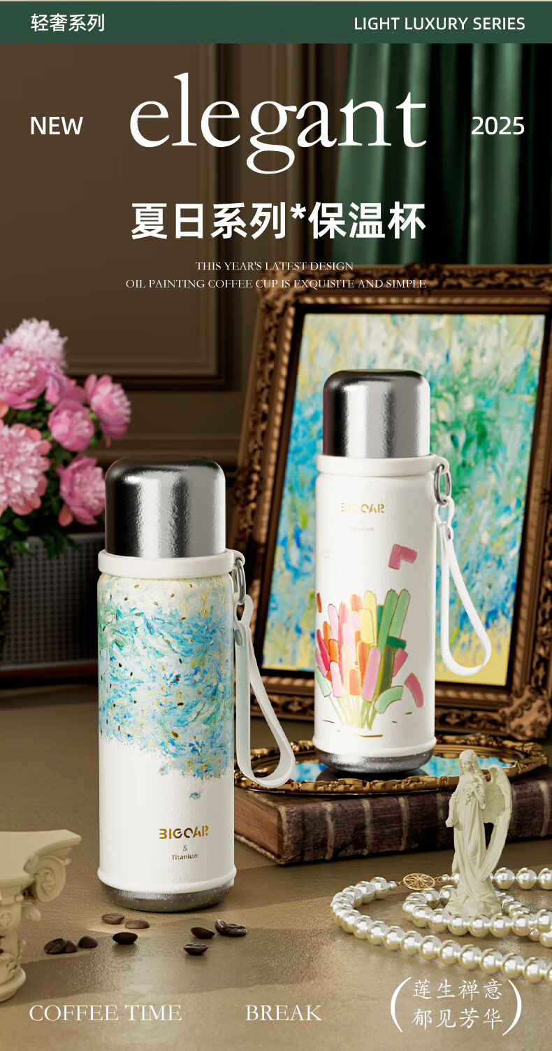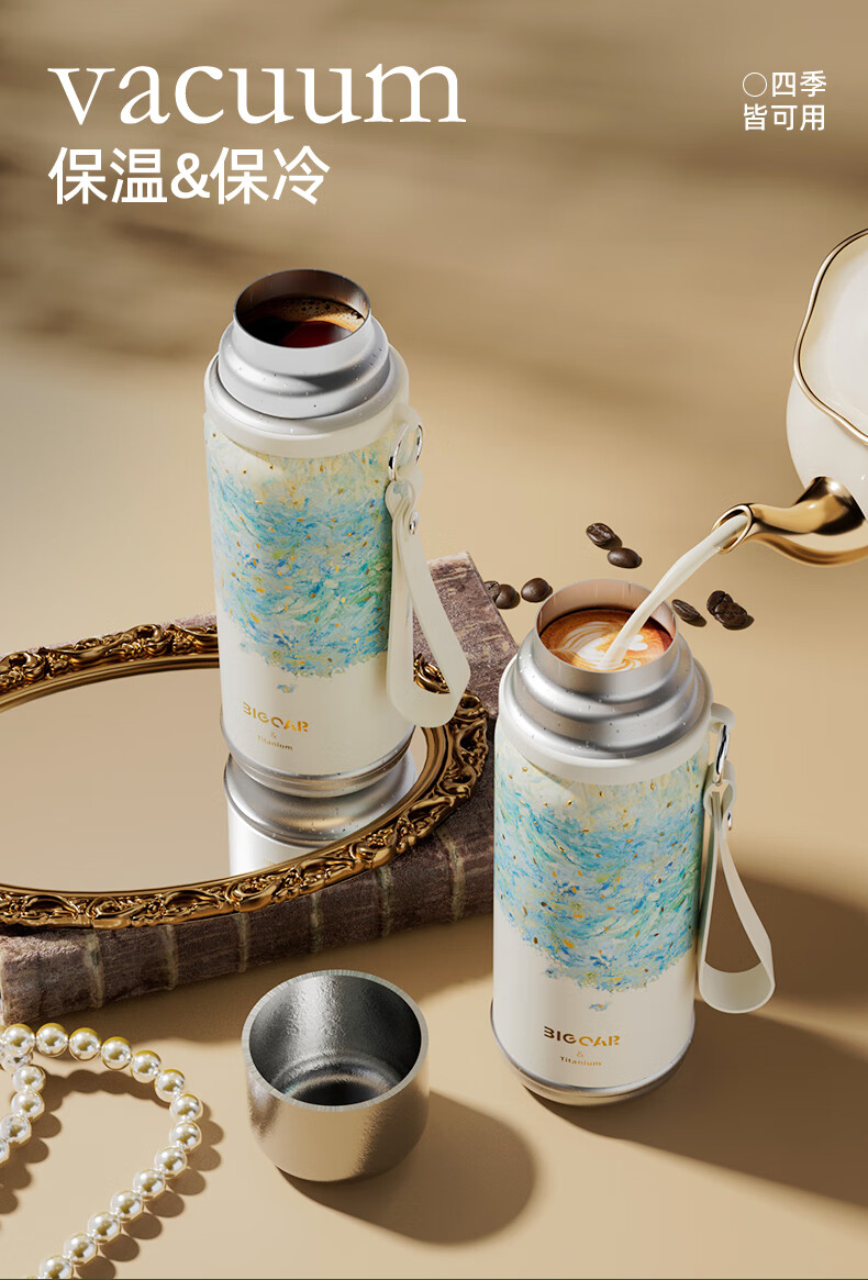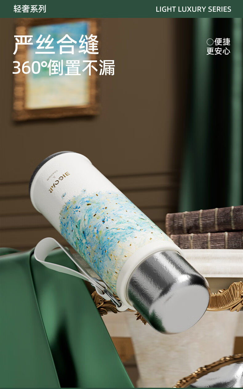 大卡纯钛保温杯大容量茶水分离钛杯女高颜值便携水杯子男女生生日礼物 【内外纯钛】睡莲650ml 机械显温+纯钛茶仓