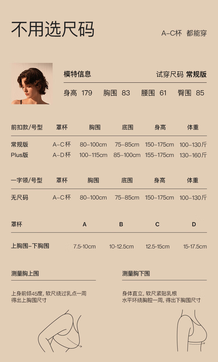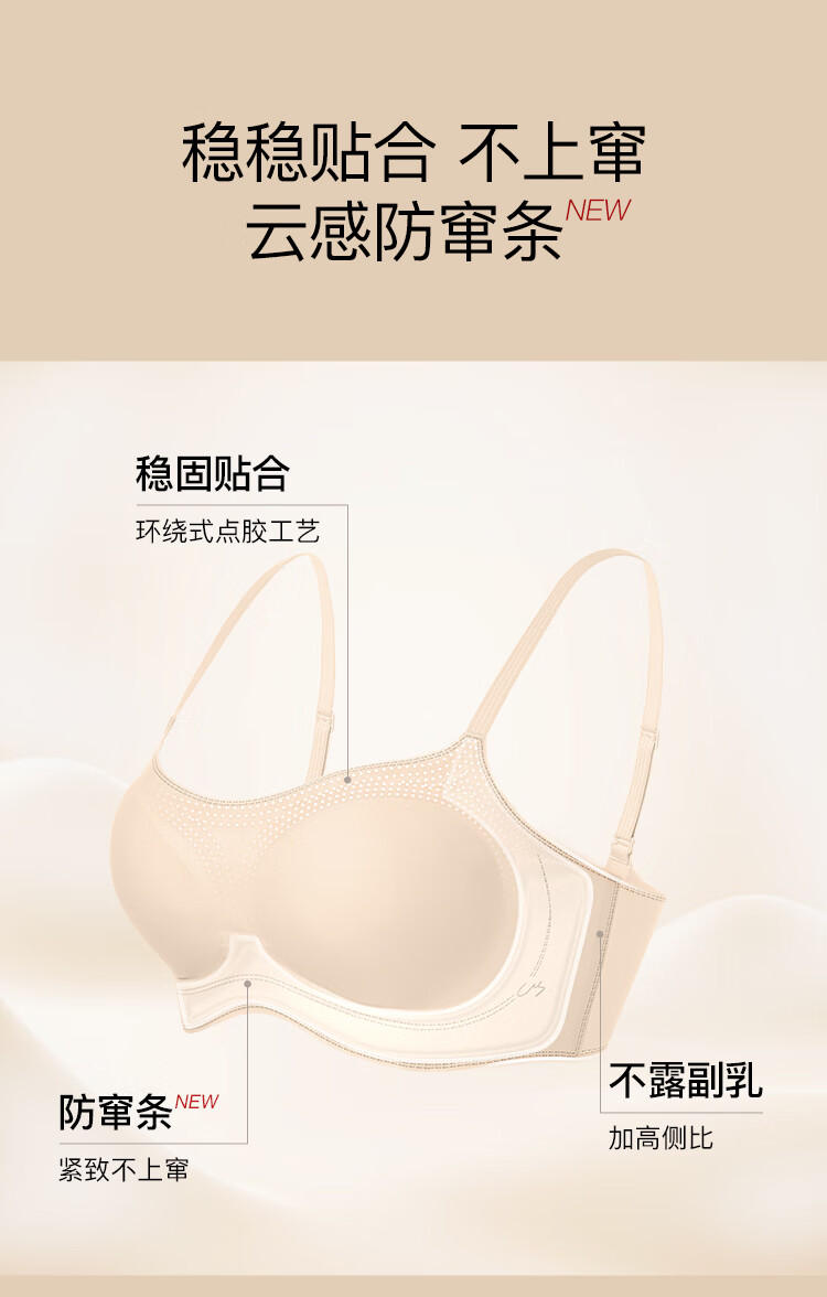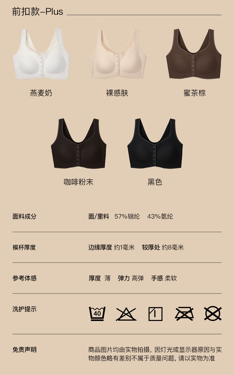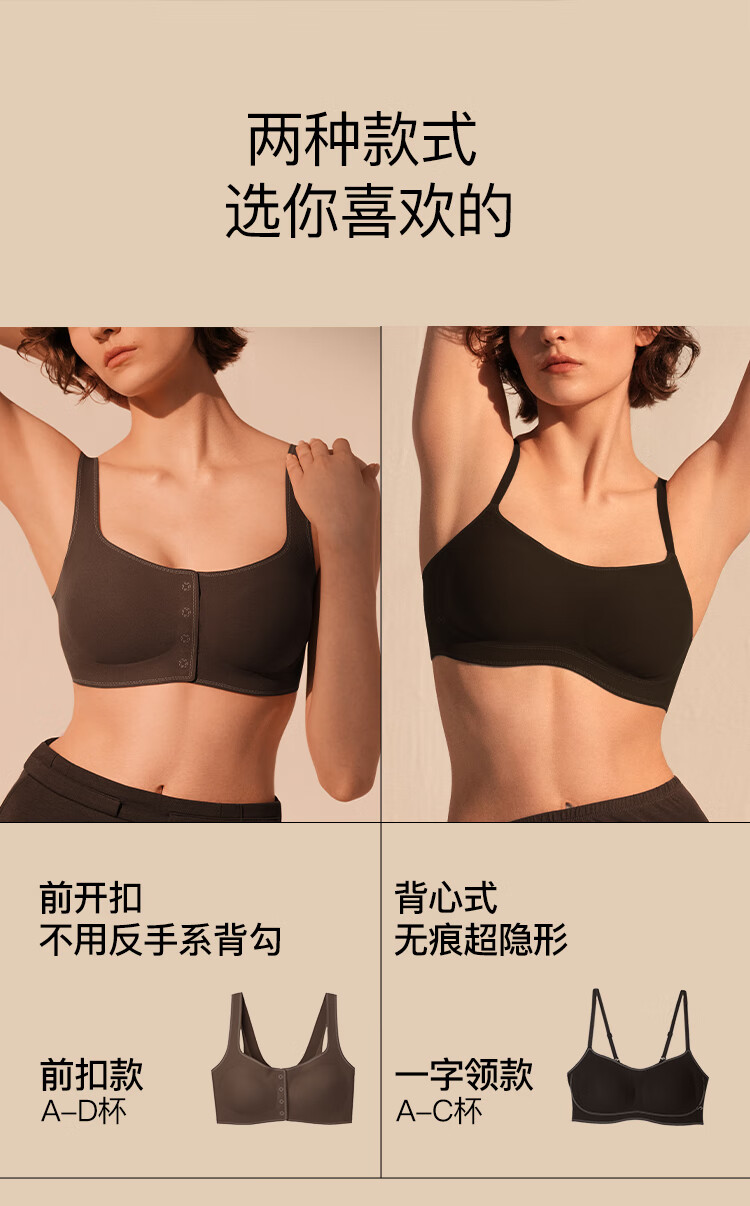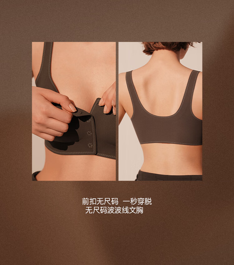 ubras虞书欣同款无尺码波波线前扣聚拢文胸罩 蜜茶棕色 常规版