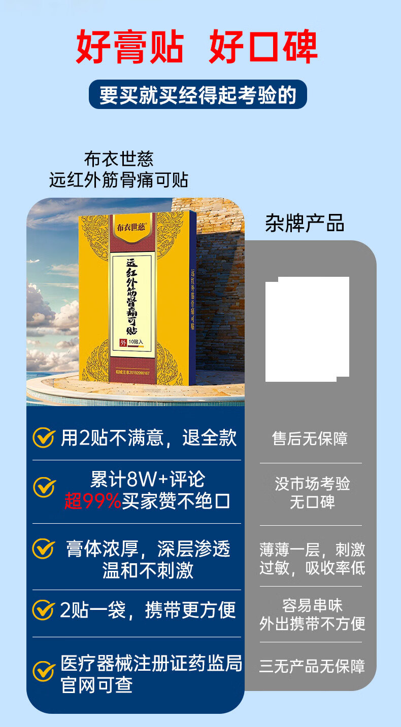布衣世慈颈肩腰腿风湿膏贴颈椎病肩周炎腰椎间盘突出贴膏远红外筋骨痛可贴 颈肩腰腿风湿关节 5盒50贴