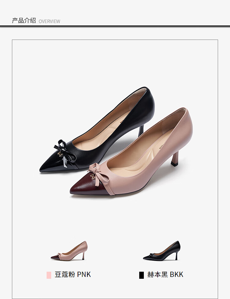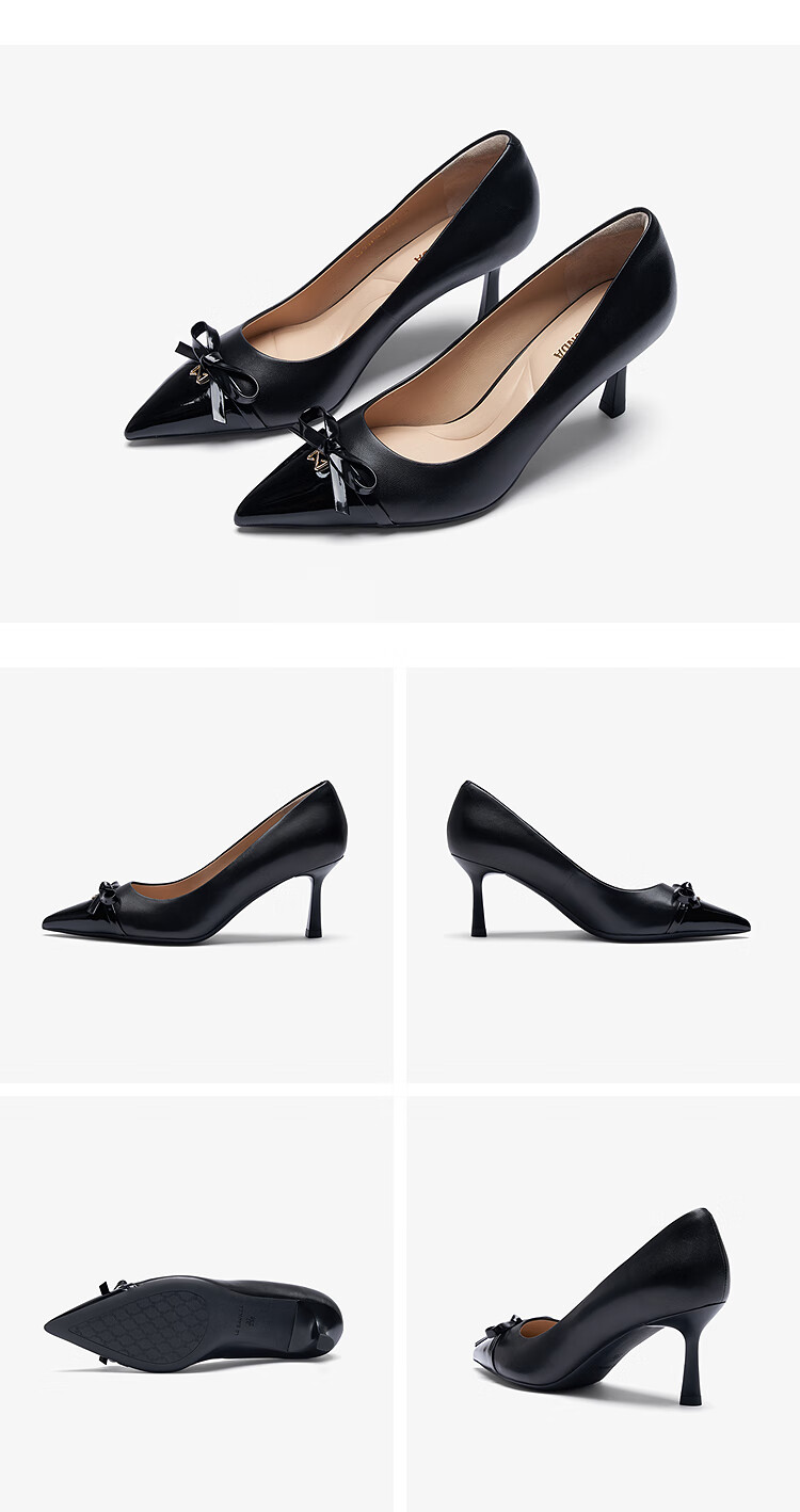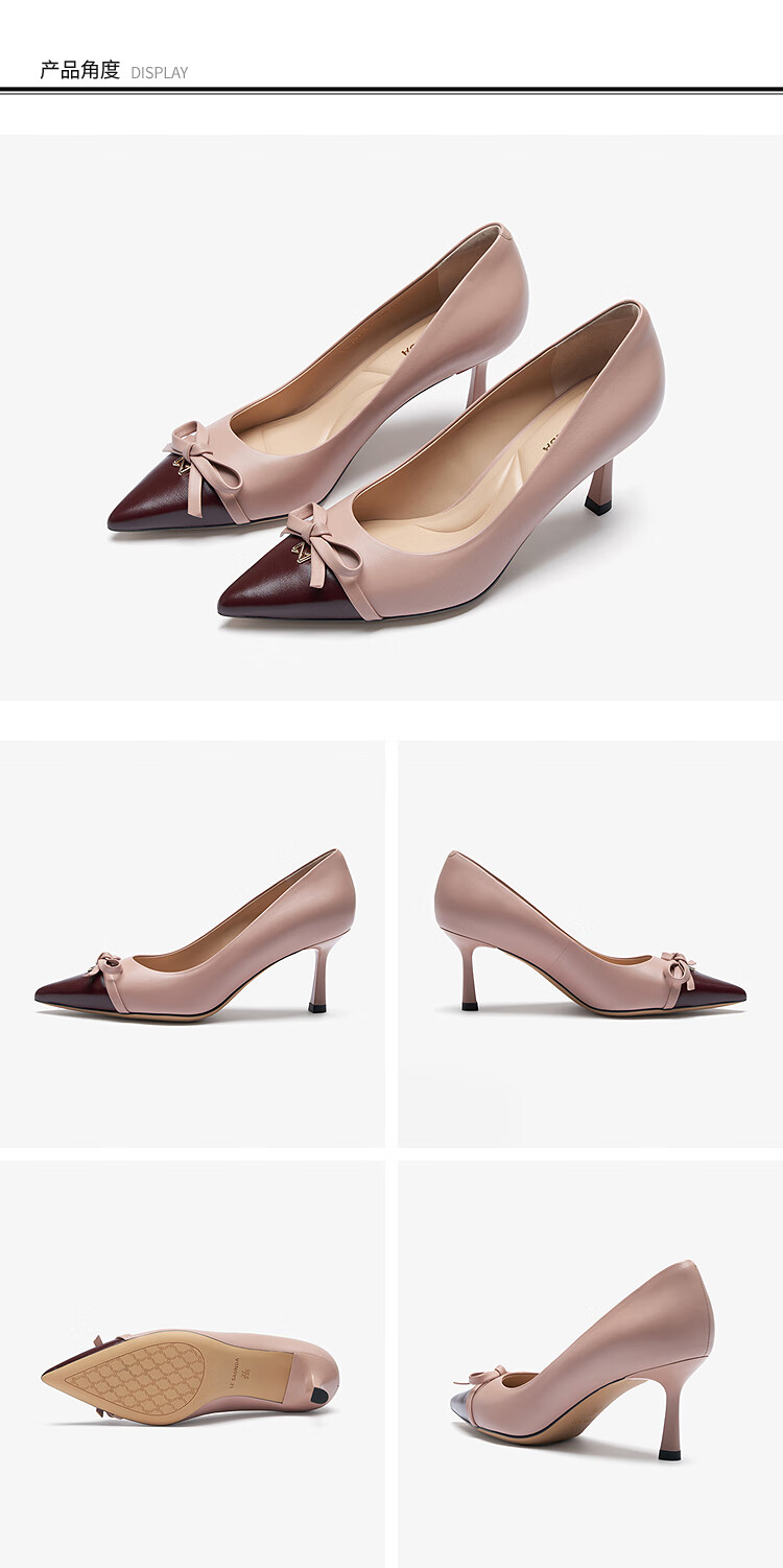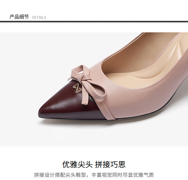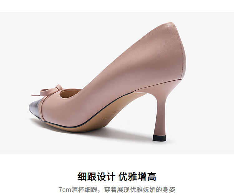 莱尔斯丹通勤细高跟鞋2025秋季新款尖头蝴蝶结单鞋婚鞋女6T70910 豆蔻粉 PNK 35