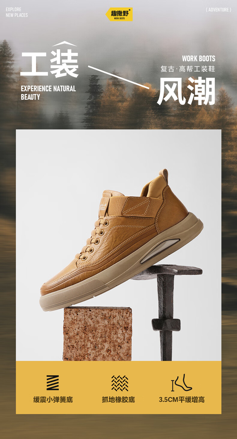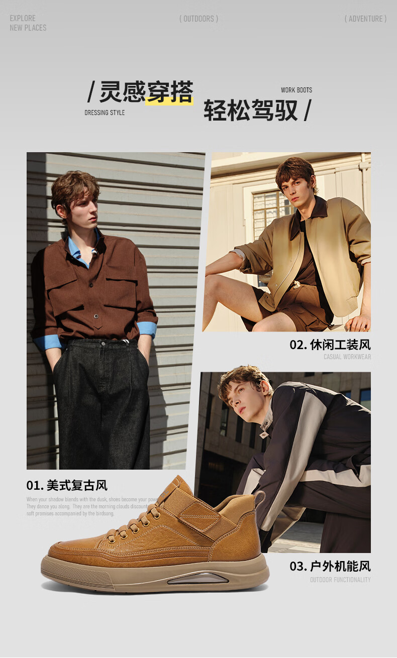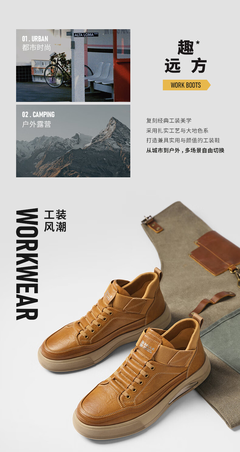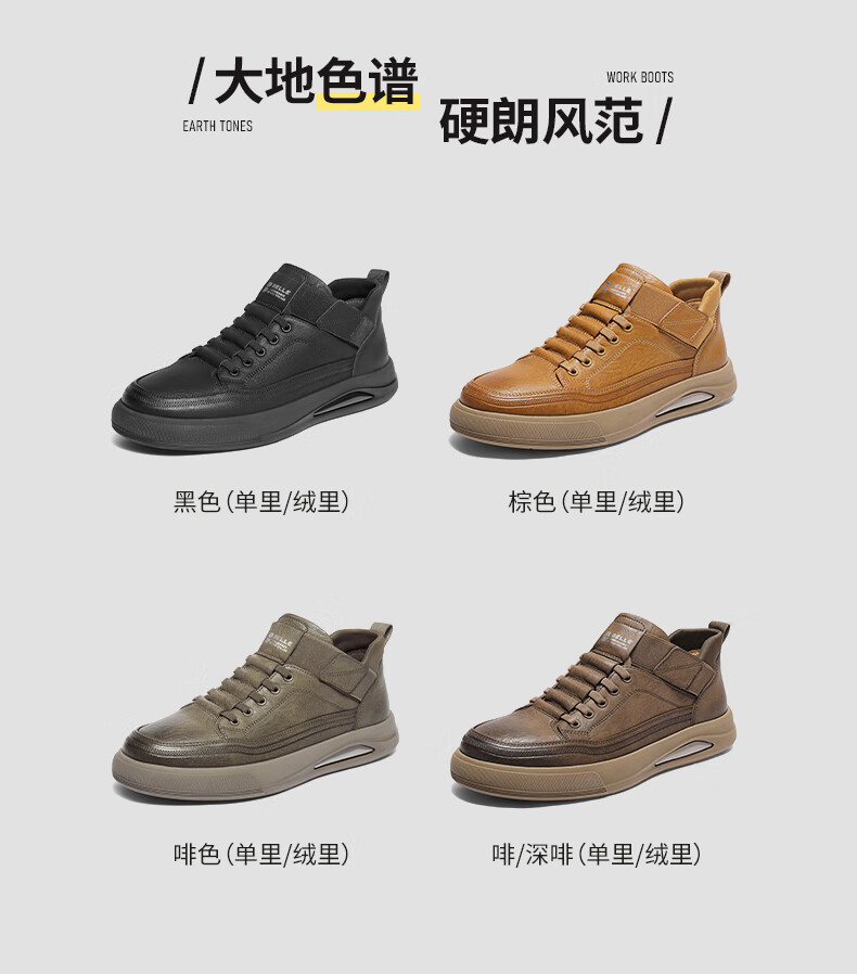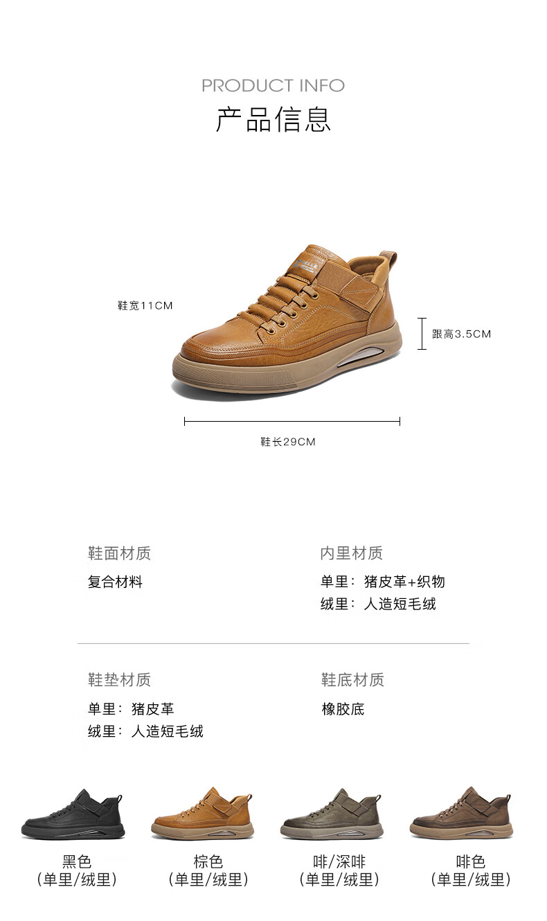 百丽高帮休闲工装鞋男25冬新款厚底套脚复古潮搭板鞋加绒D3MA8DM5 啡/深啡(单里) 41