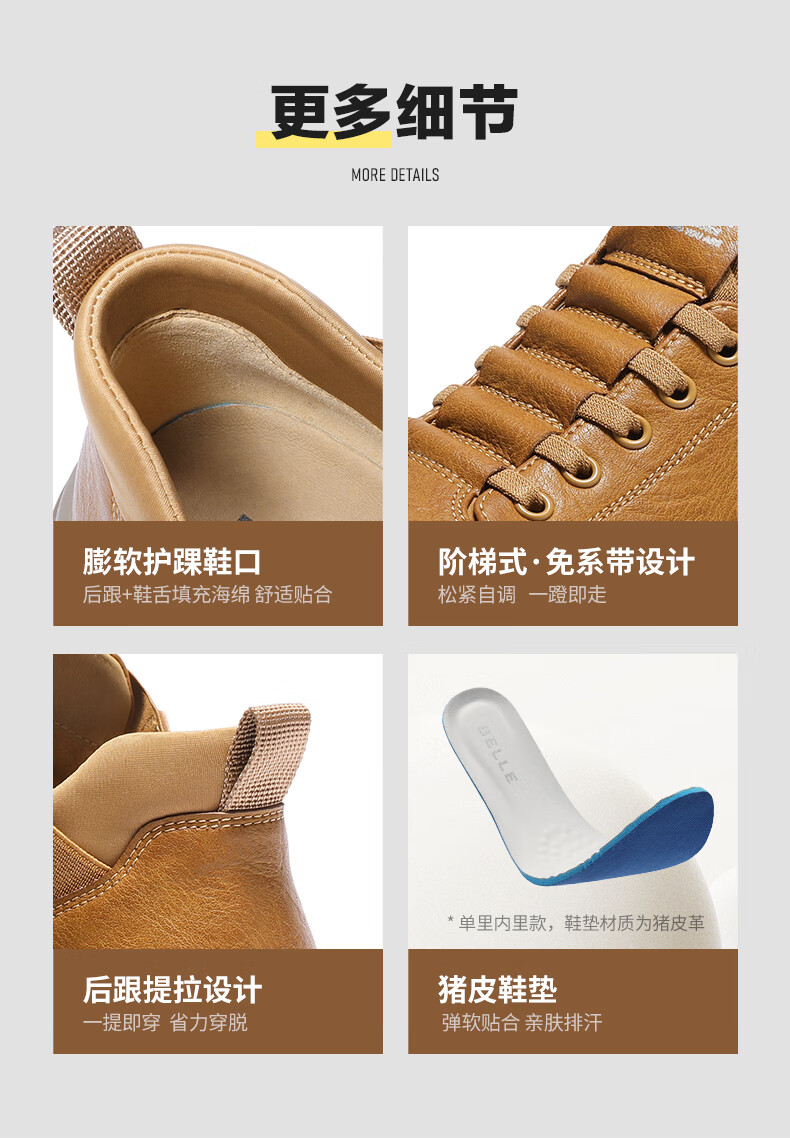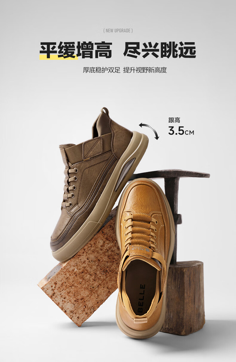百丽厚底增高休闲板鞋男2025新款冬商场同款一脚蹬工装鞋8WP01DM5 黄色 40 (250mm)