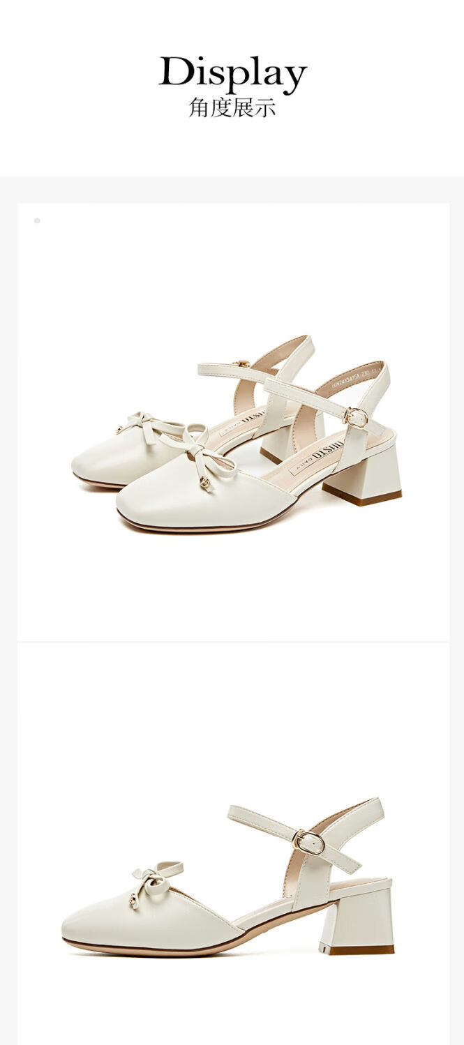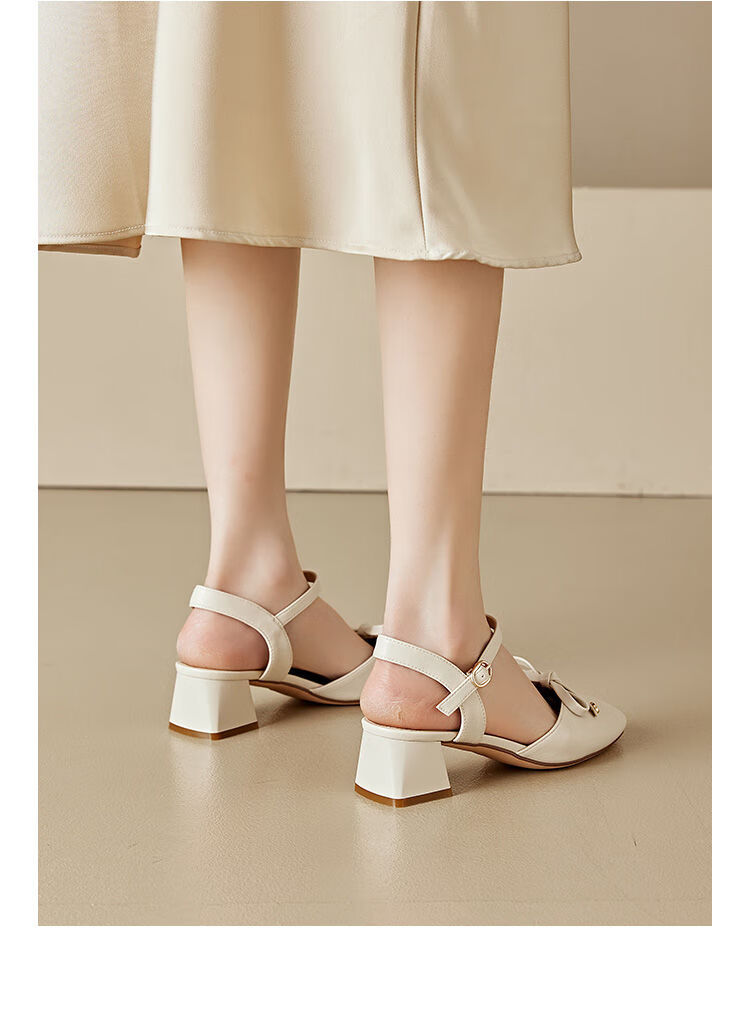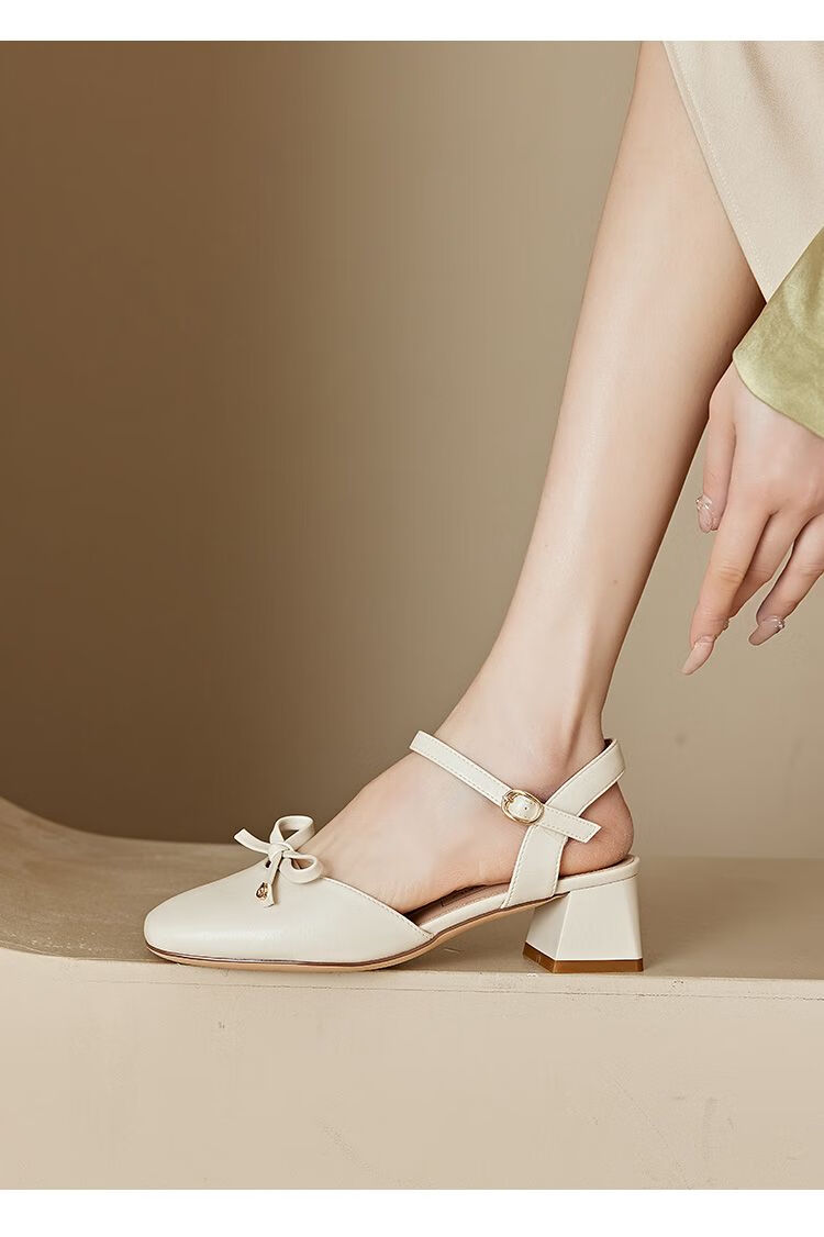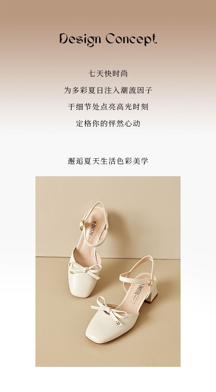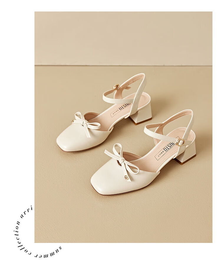 大东(dusto)法式凉鞋女款外穿夏季新款甜美风中跟粗跟方头蝴蝶结单鞋3415 米色 34