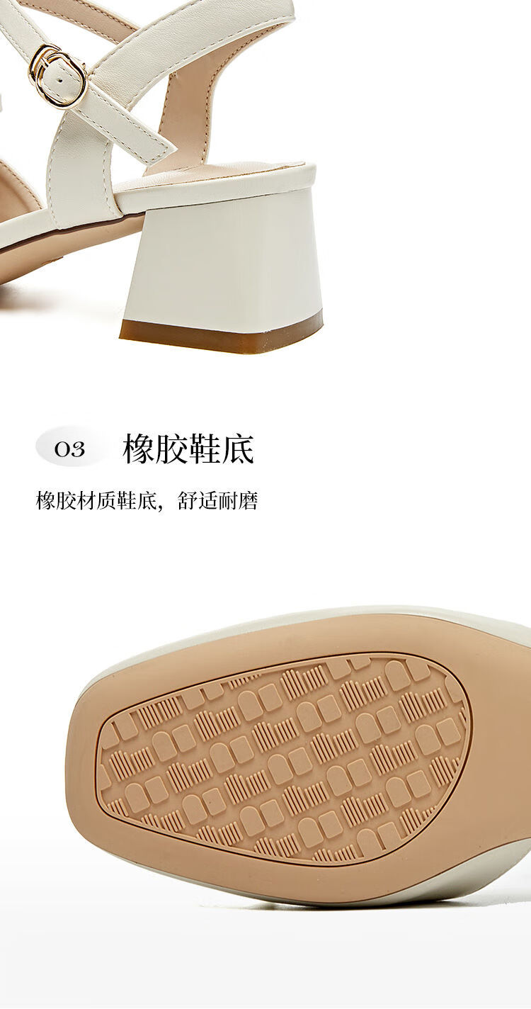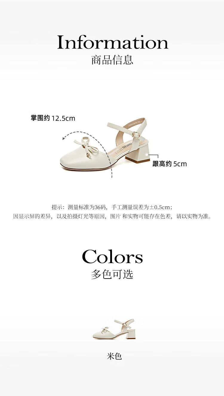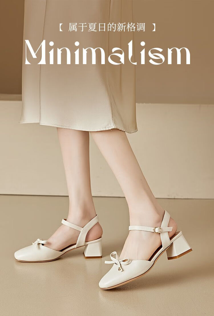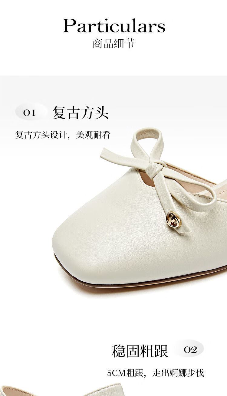 大东(dusto)法式凉鞋女款外穿夏季新款甜美风中跟粗跟方头蝴蝶结单鞋3415 米色 34