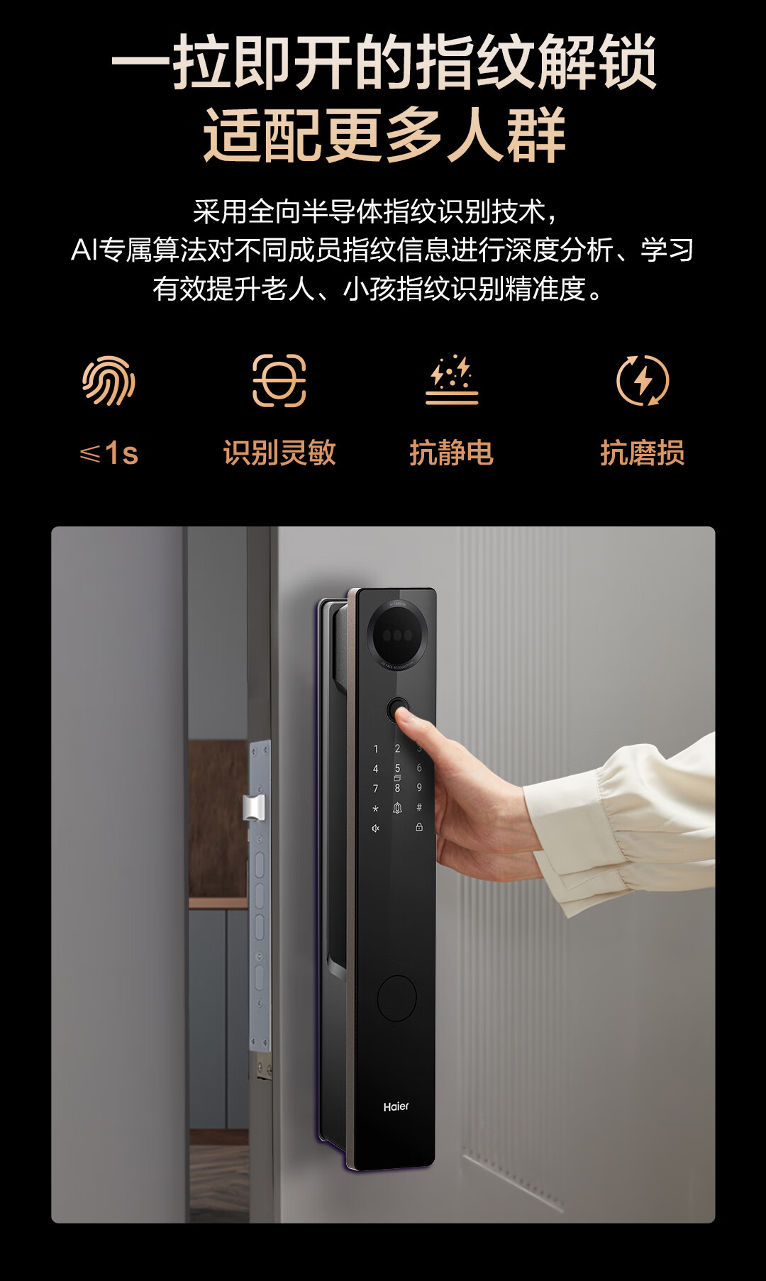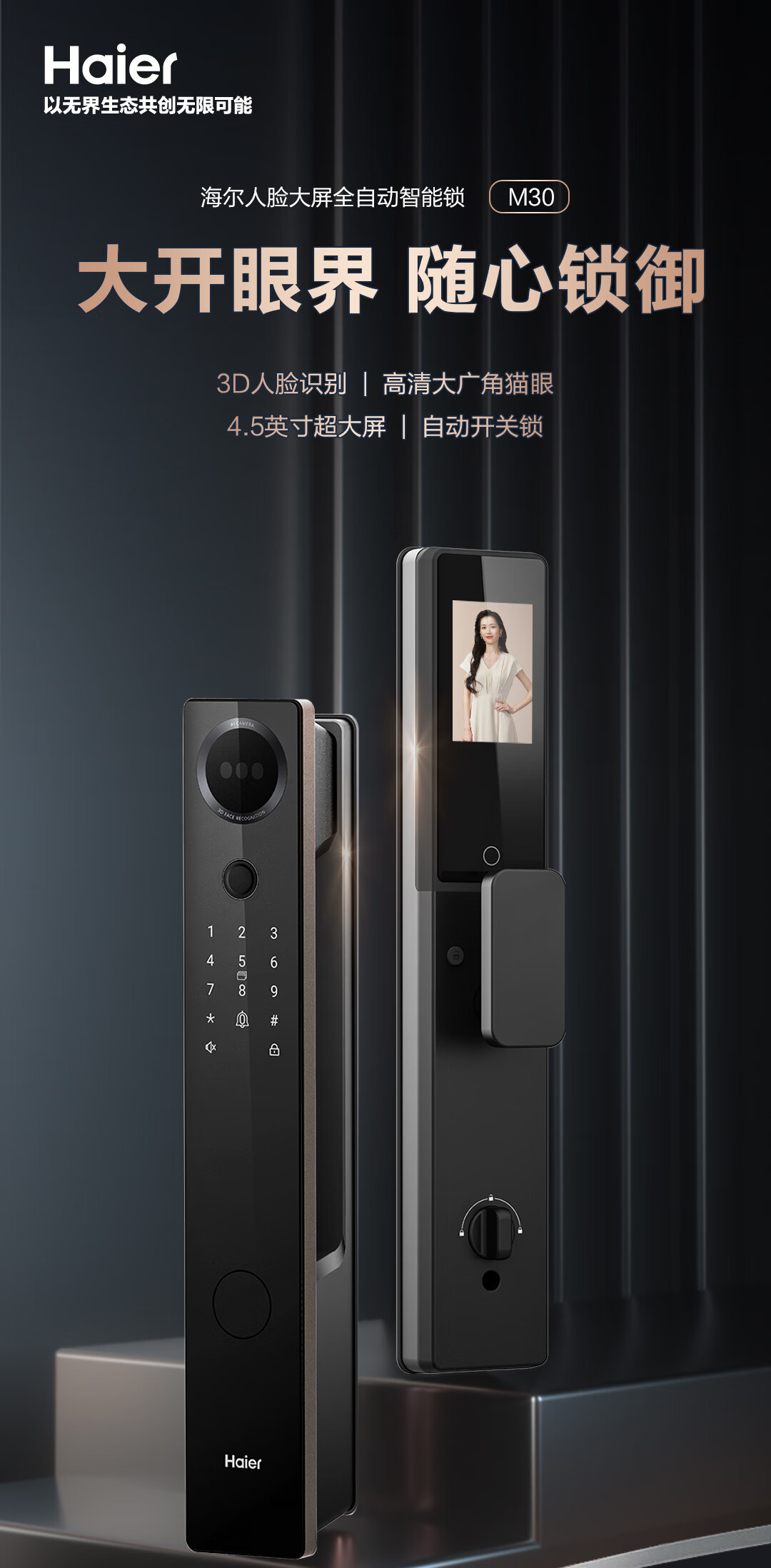 海尔智能门锁指纹锁密码锁智能锁入户门防盗门电子门锁M30