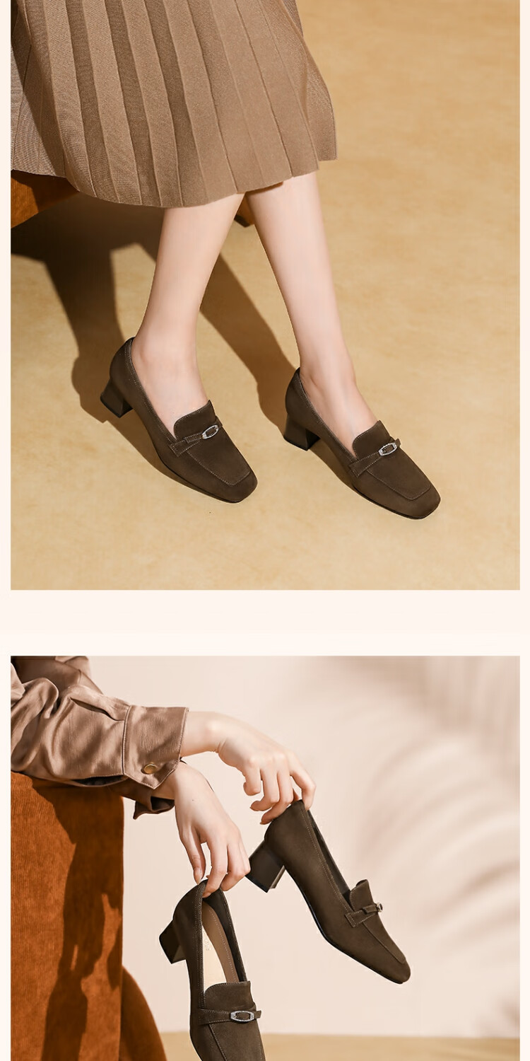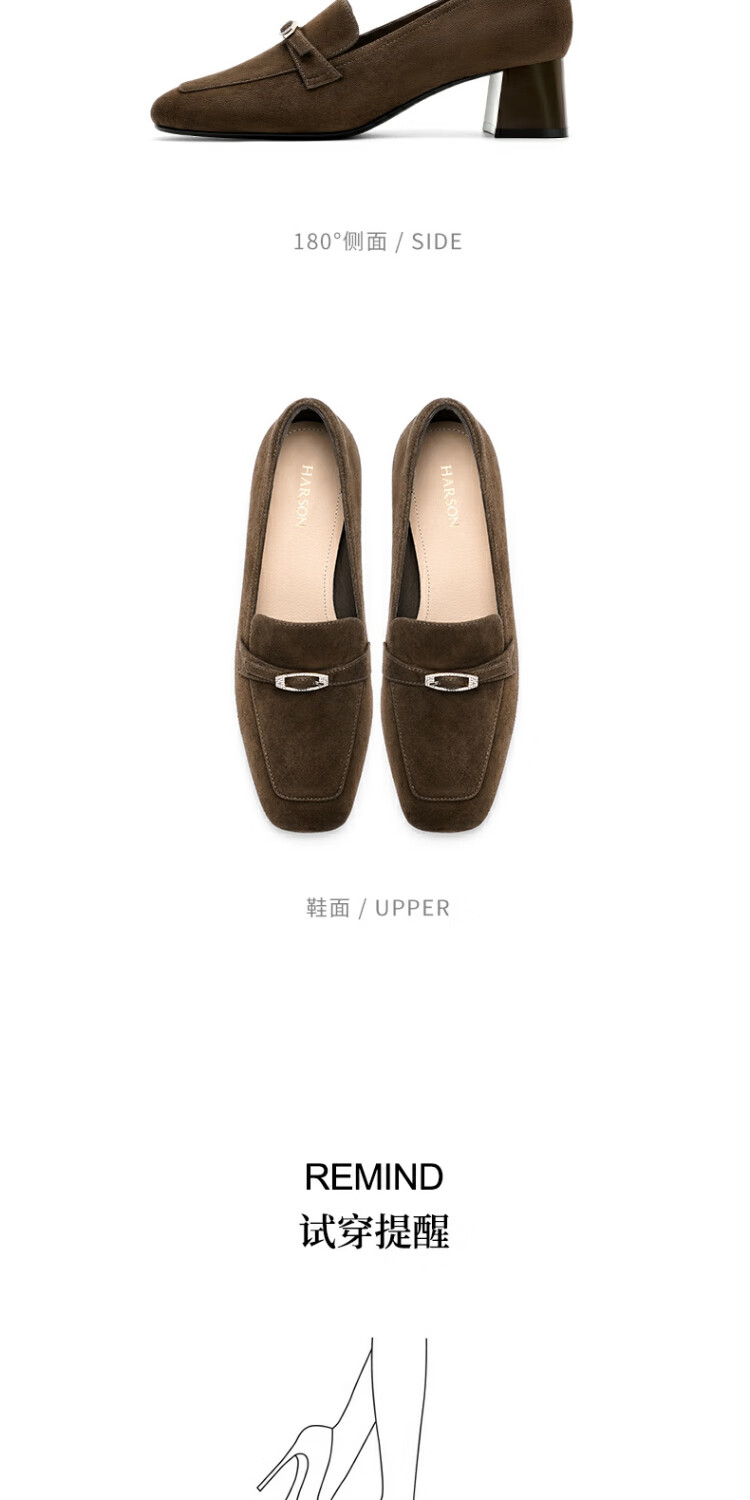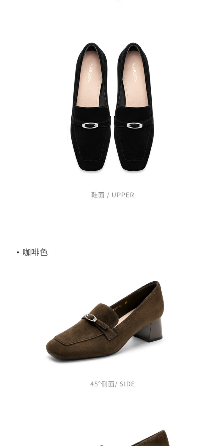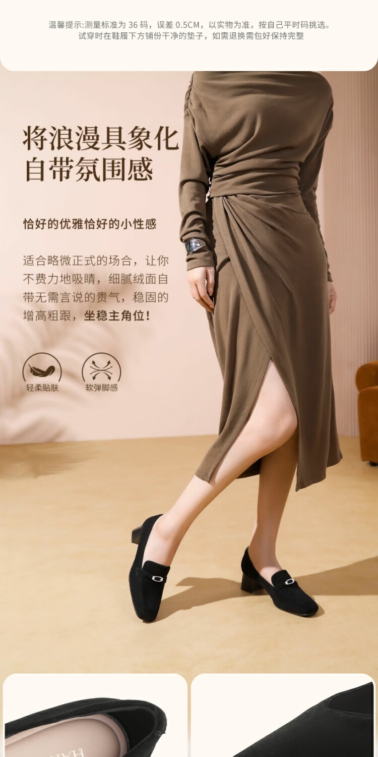 哈森时尚百搭女单鞋2025秋季新款绒面粗跟增高通勤鞋HL257125 咖啡色 羊反绒面革 36
