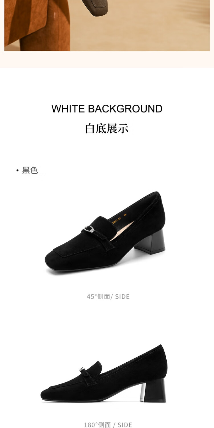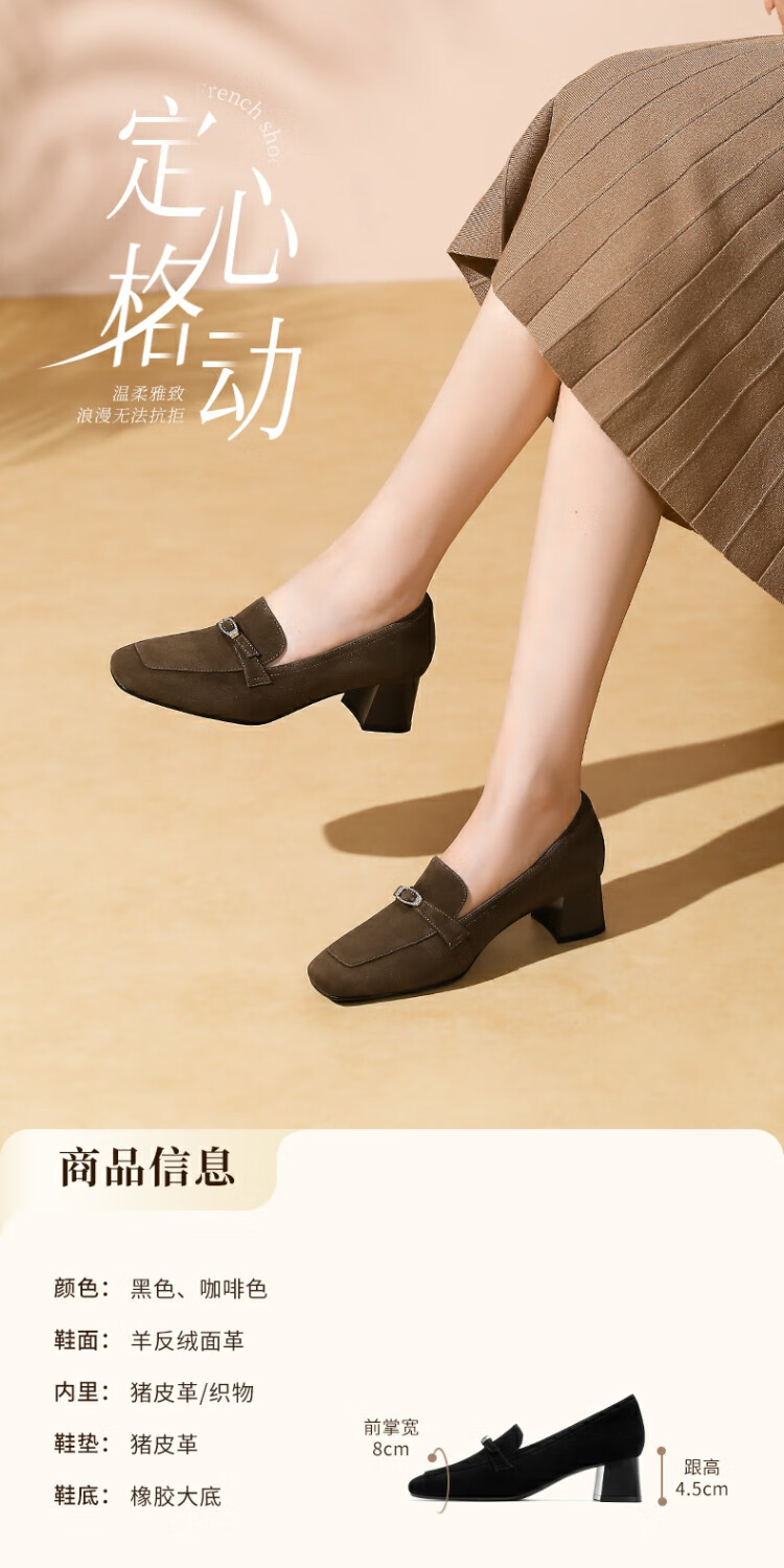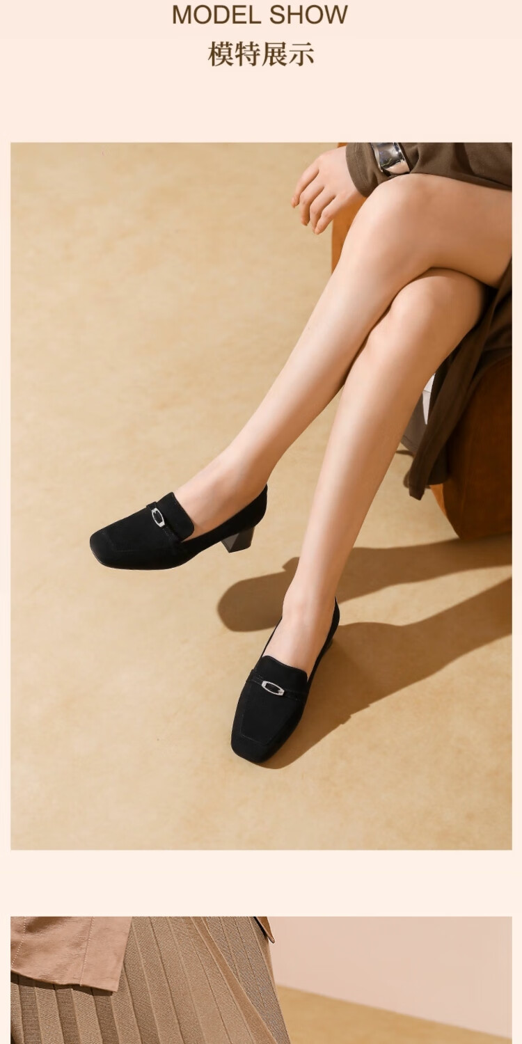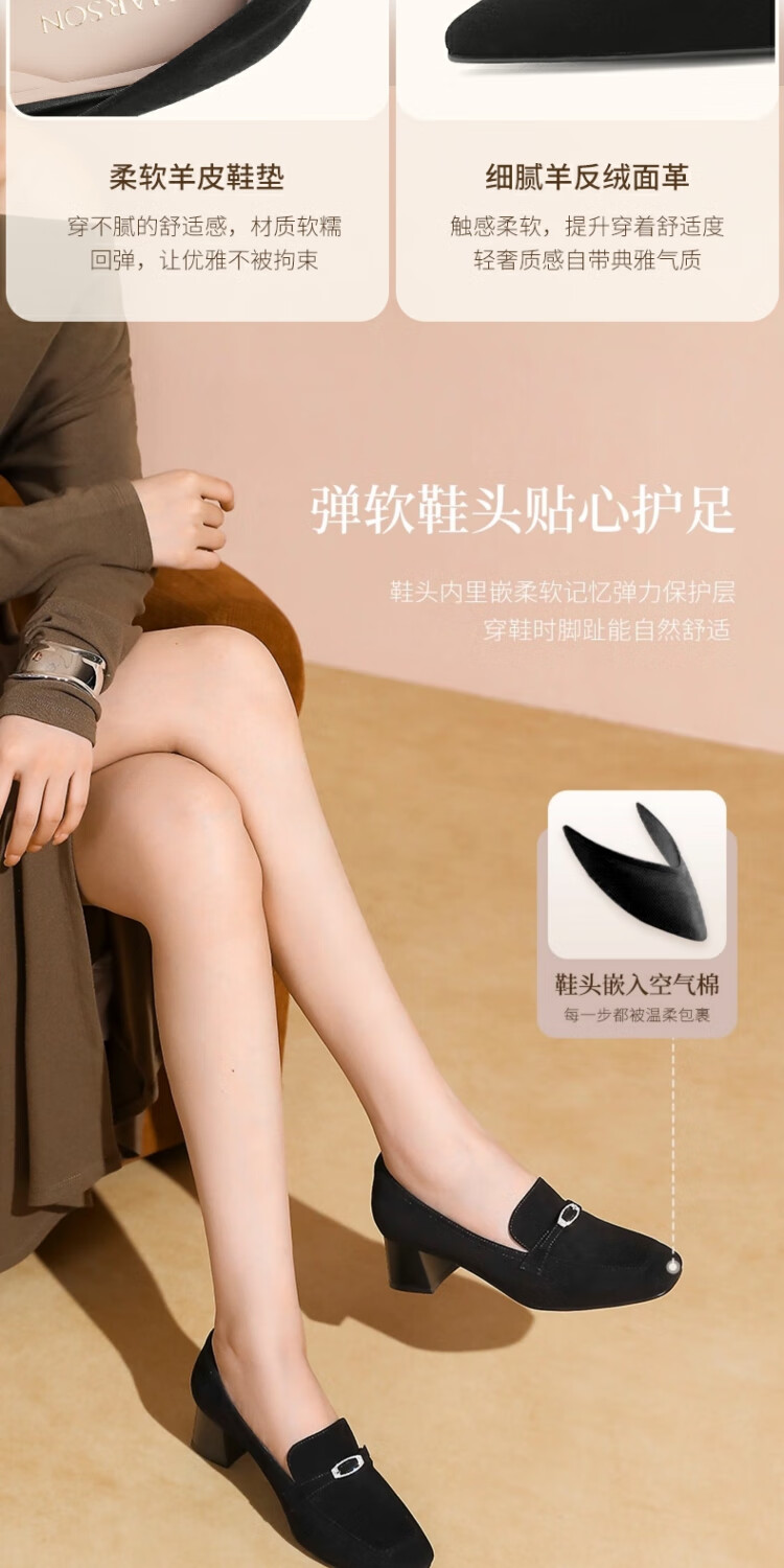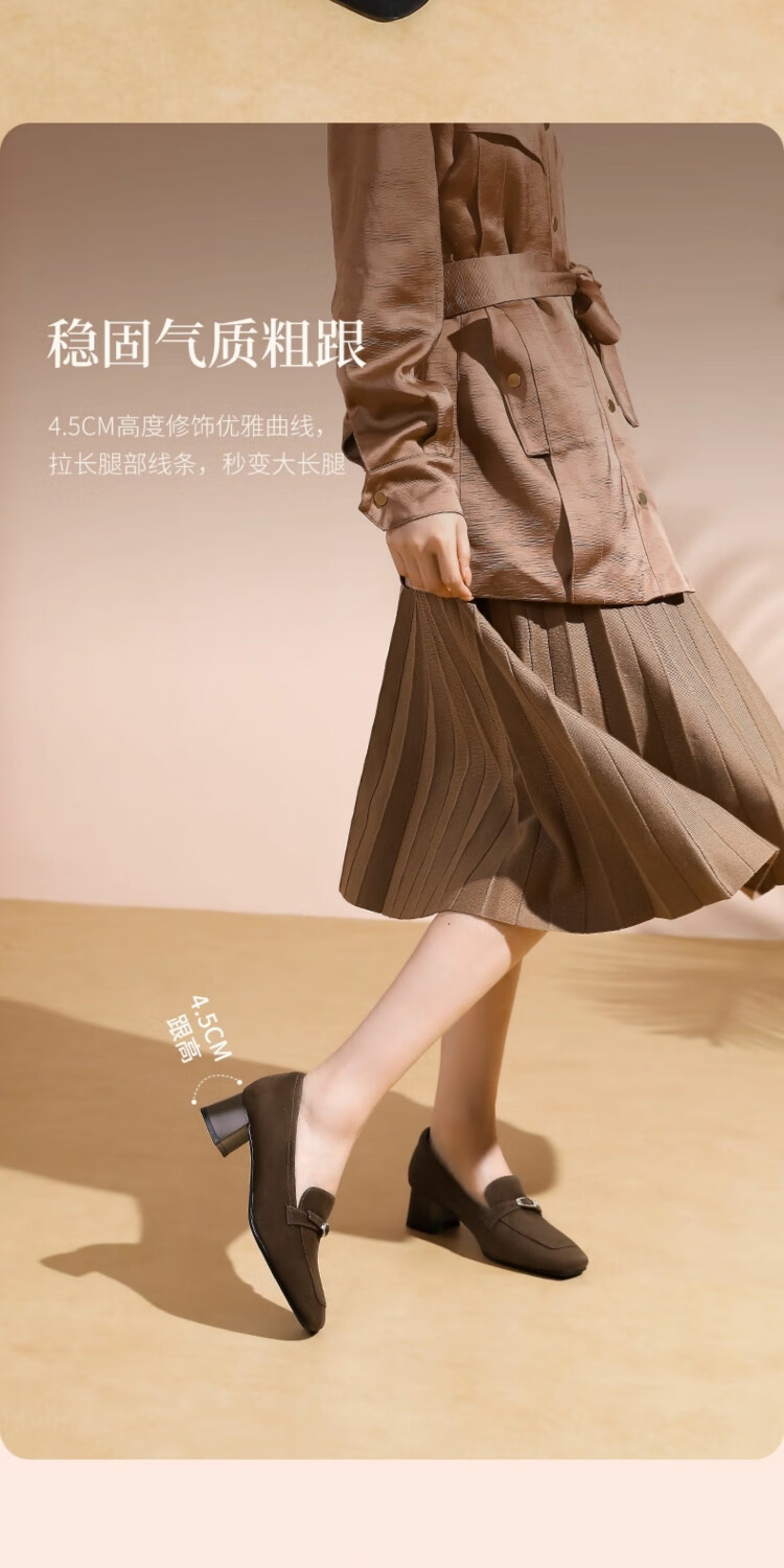 哈森时尚百搭女单鞋2025秋季新款绒面粗跟增高通勤鞋HL257125 咖啡色 羊反绒面革 36