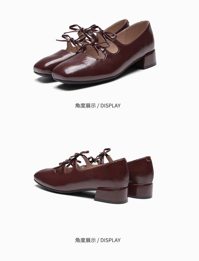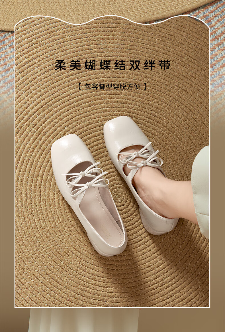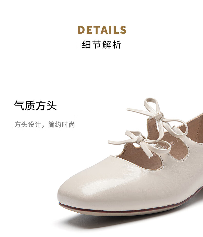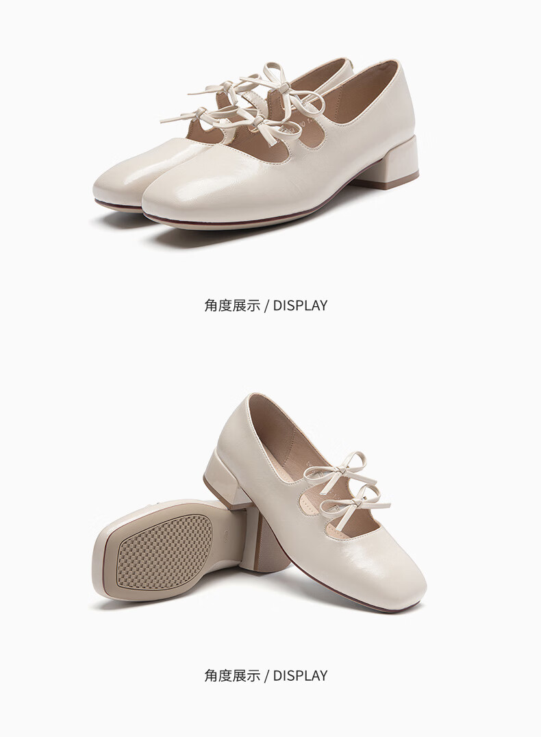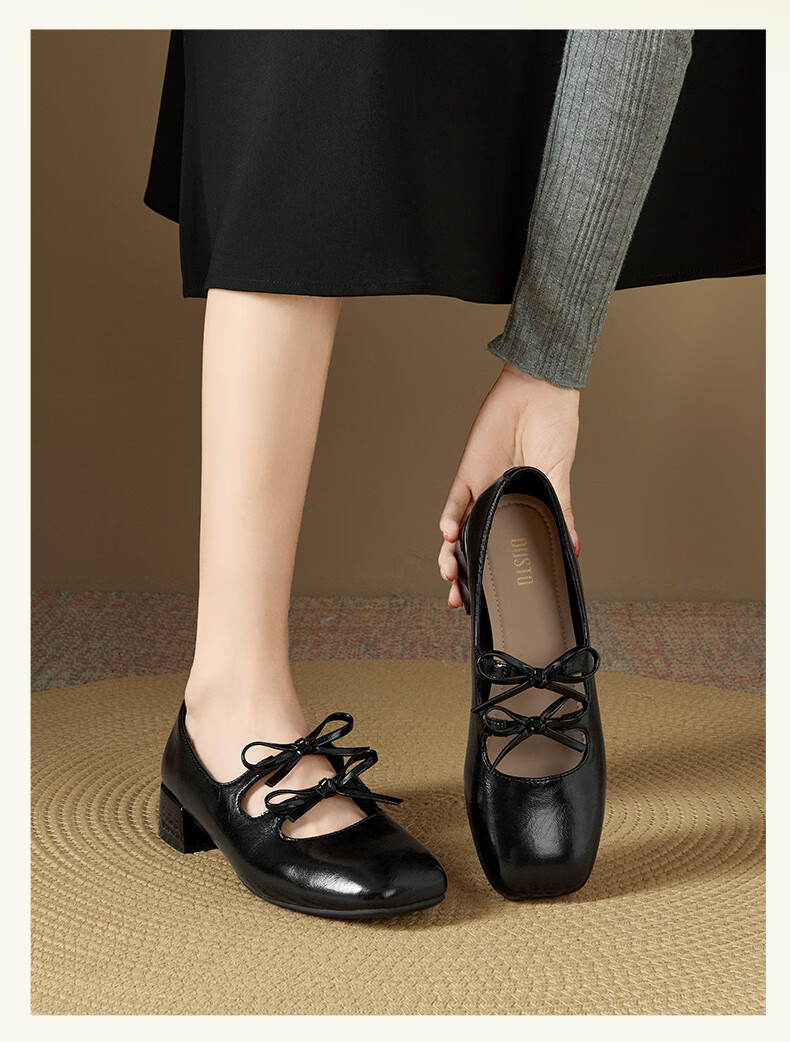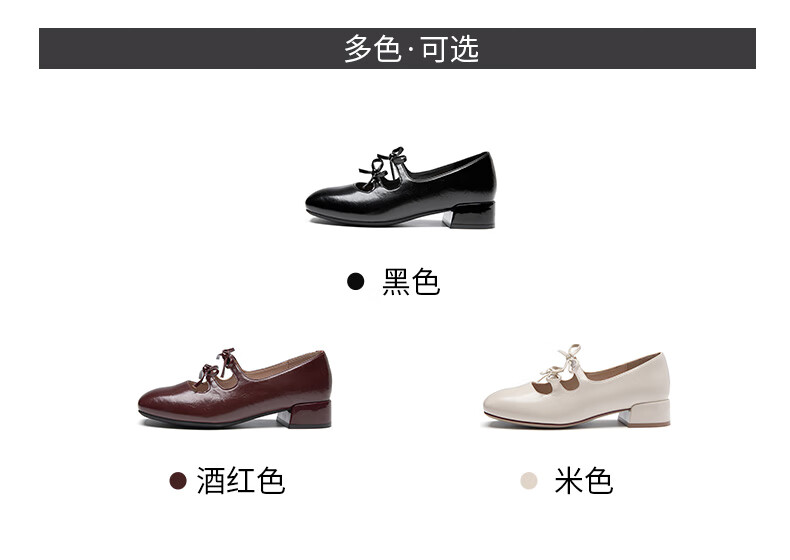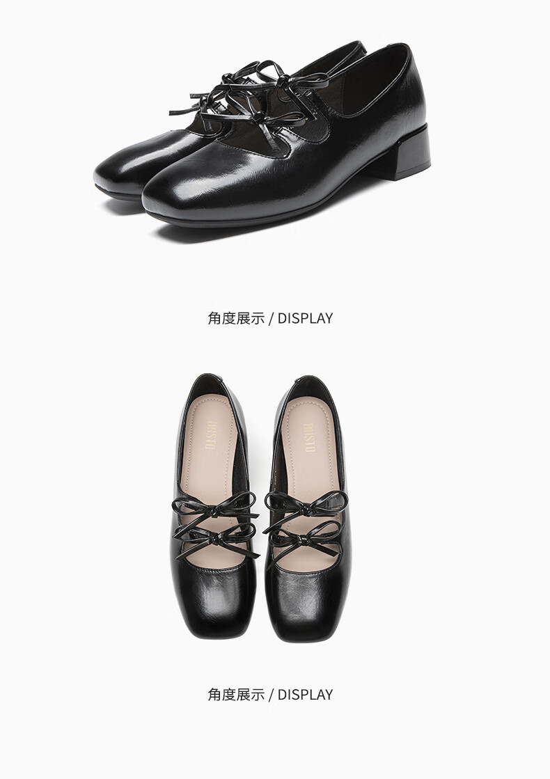 大东玛丽珍女鞋2026年春季新款时尚气质方头蝴蝶结单鞋0015 黑色 34