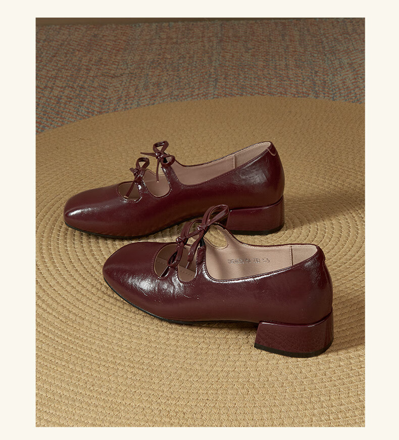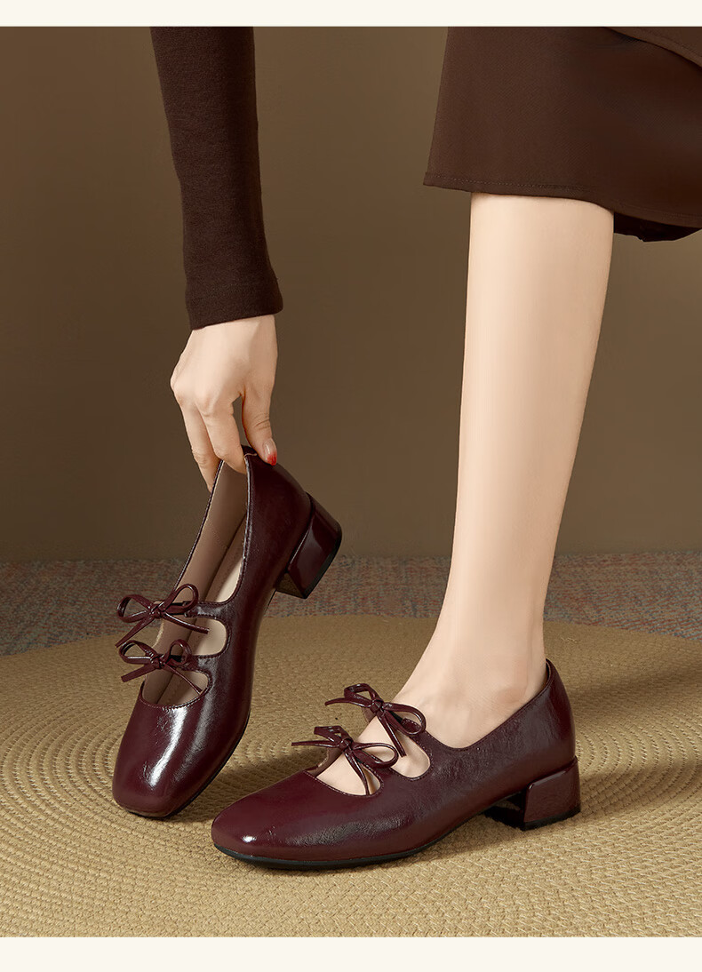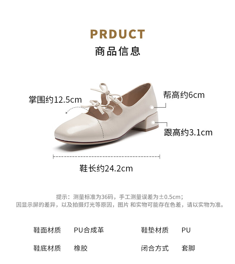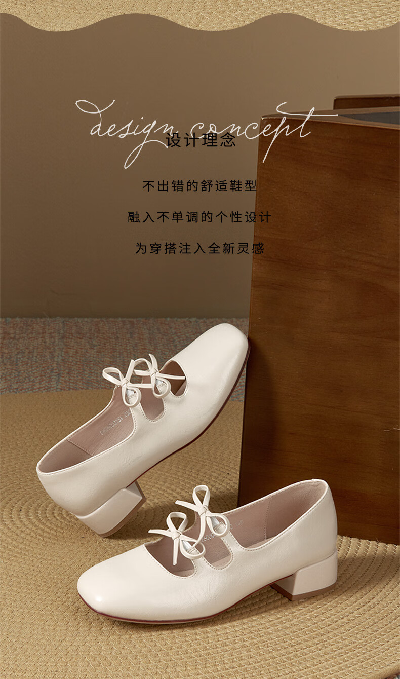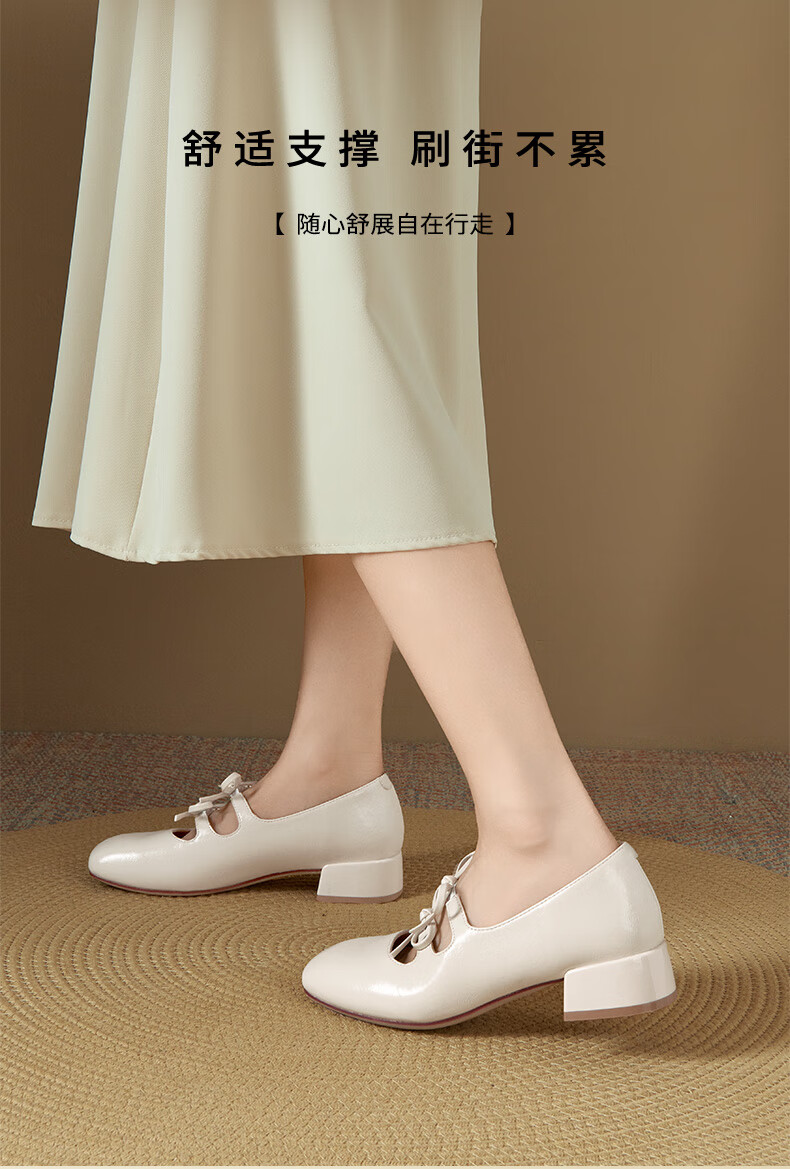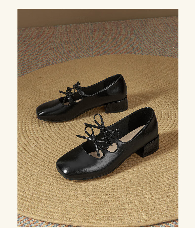 大东玛丽珍女鞋2026年春季新款时尚气质方头蝴蝶结单鞋0015 黑色 34