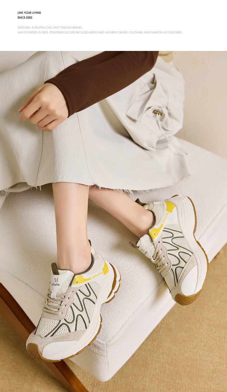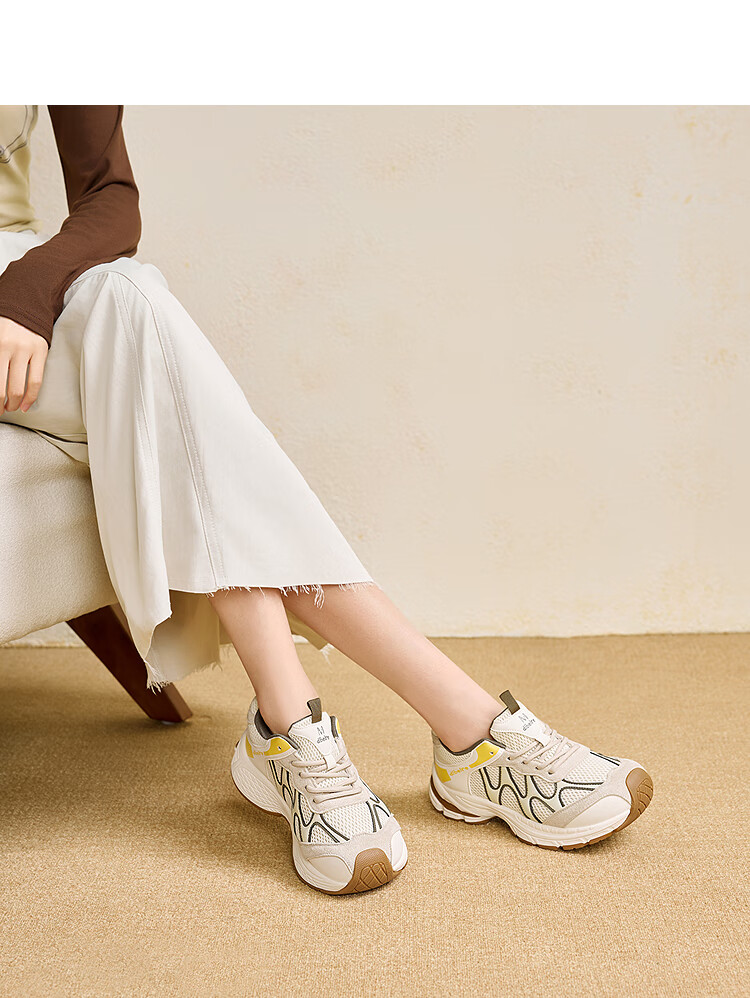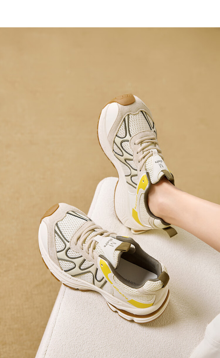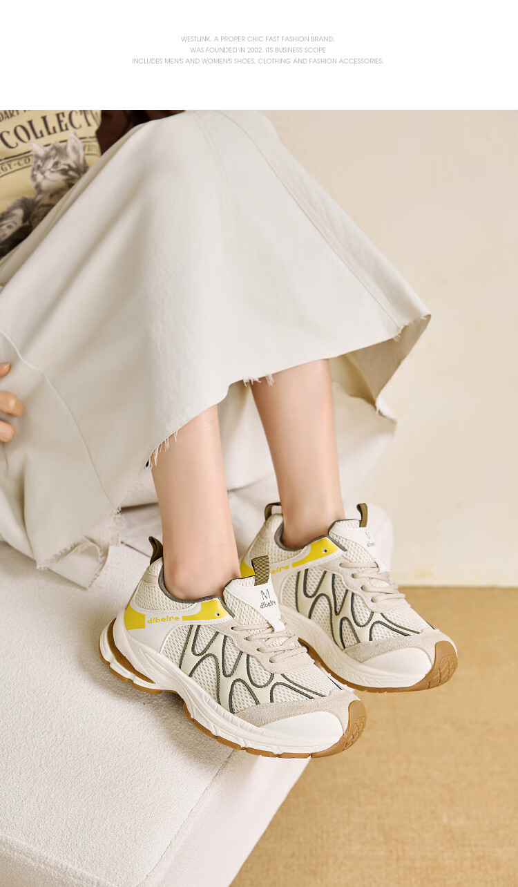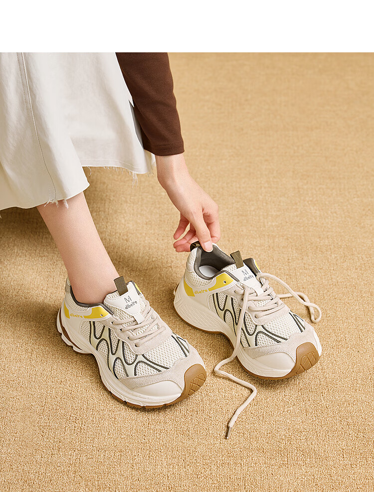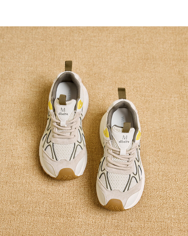 西遇厚底老爹鞋女2025新款秋季复古丑萌增高跑步休闲鞋户外运动鞋 米色 36 (230)