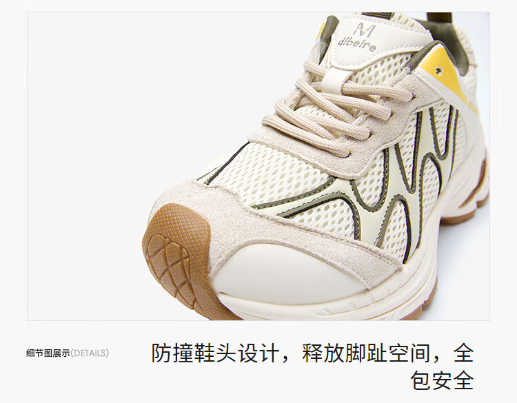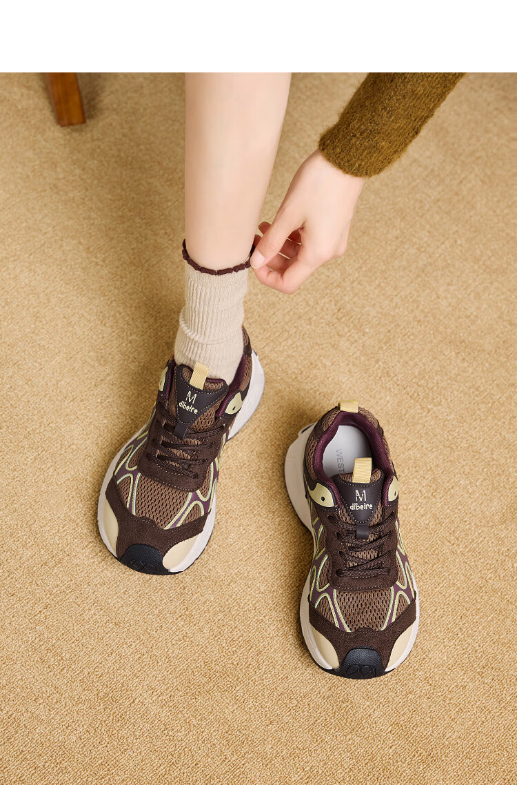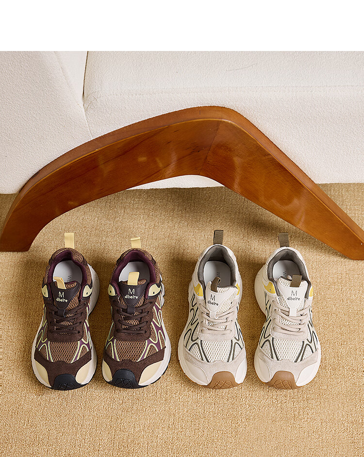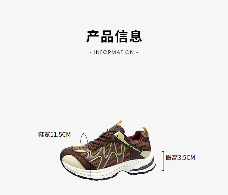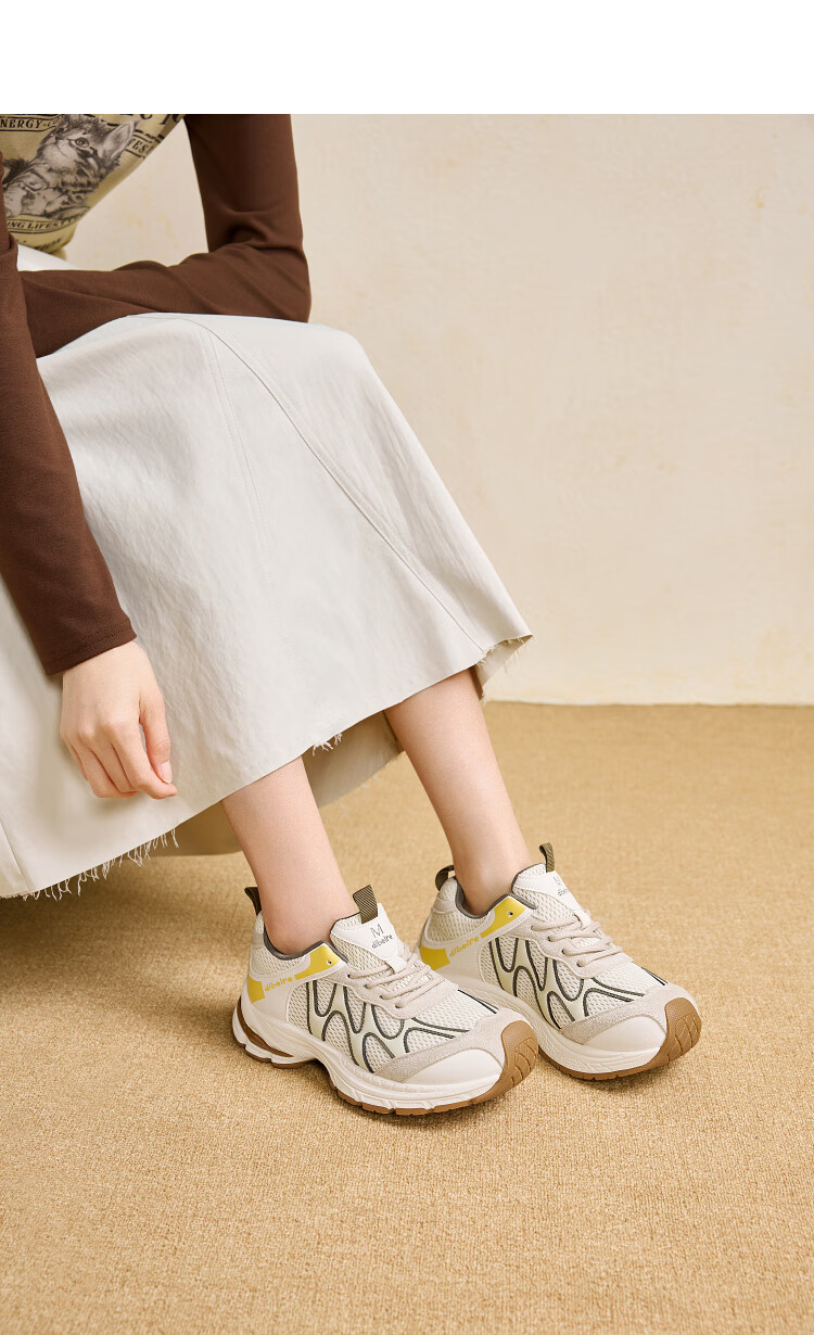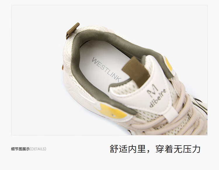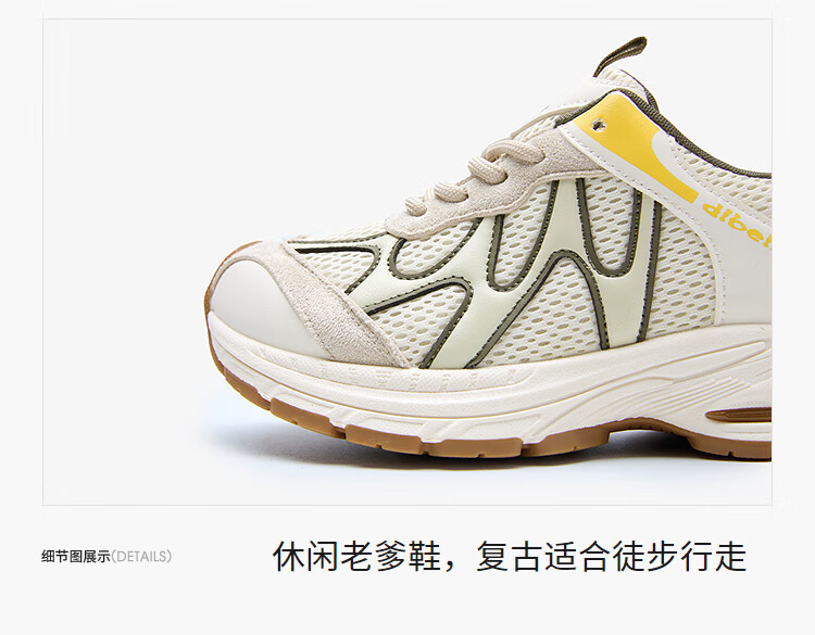 西遇厚底老爹鞋女2025新款秋季复古丑萌增高跑步休闲鞋户外运动鞋 米色 36 (230)
