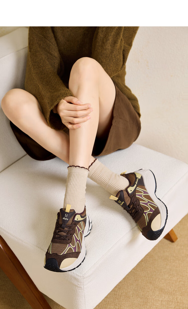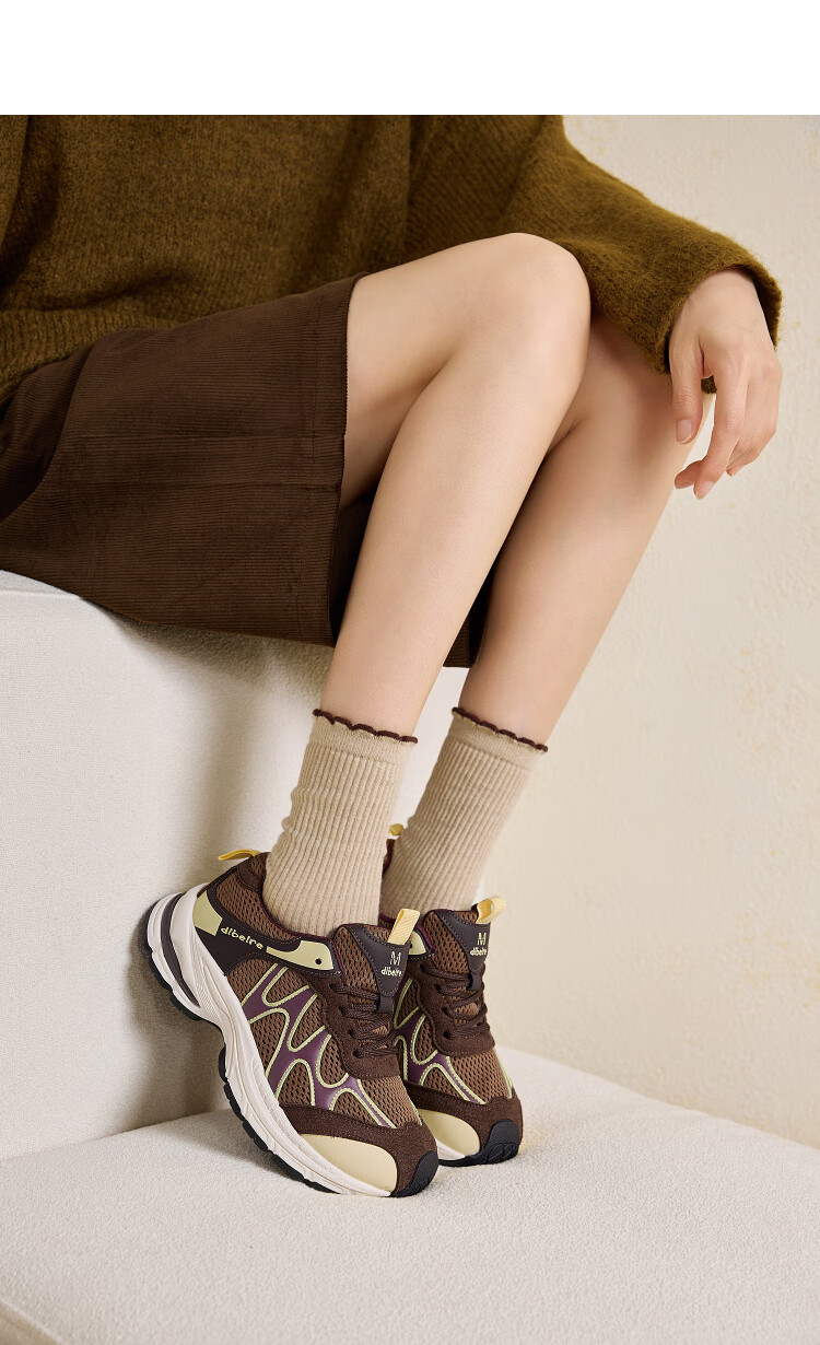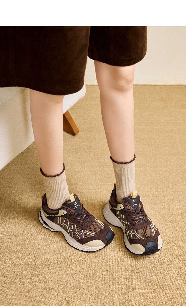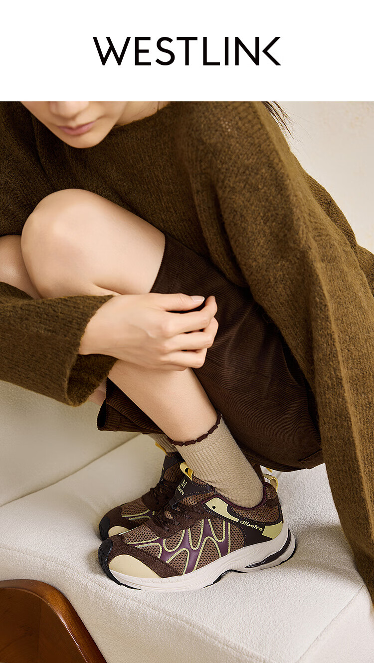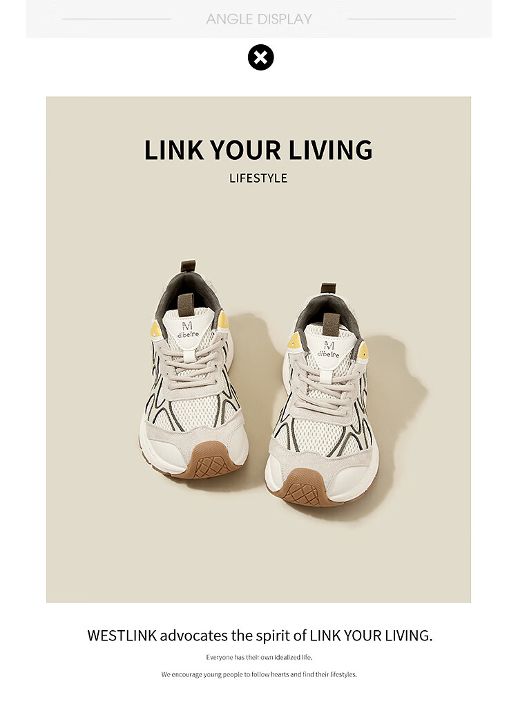 西遇厚底老爹鞋女2025新款秋季复古丑萌增高跑步休闲鞋户外运动鞋 米色 36 (230)