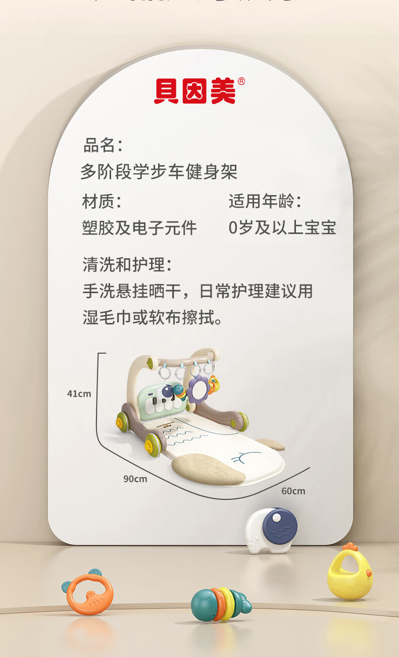贝因美婴儿玩具新生儿见面礼盒0-1岁学步车宝宝健身架男女孩满月礼盒