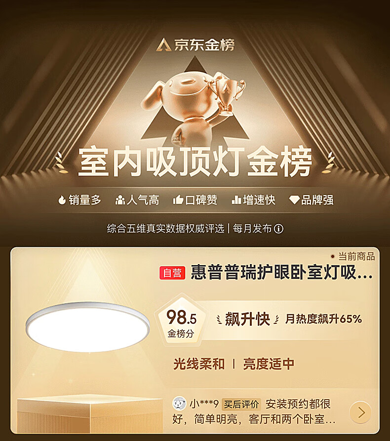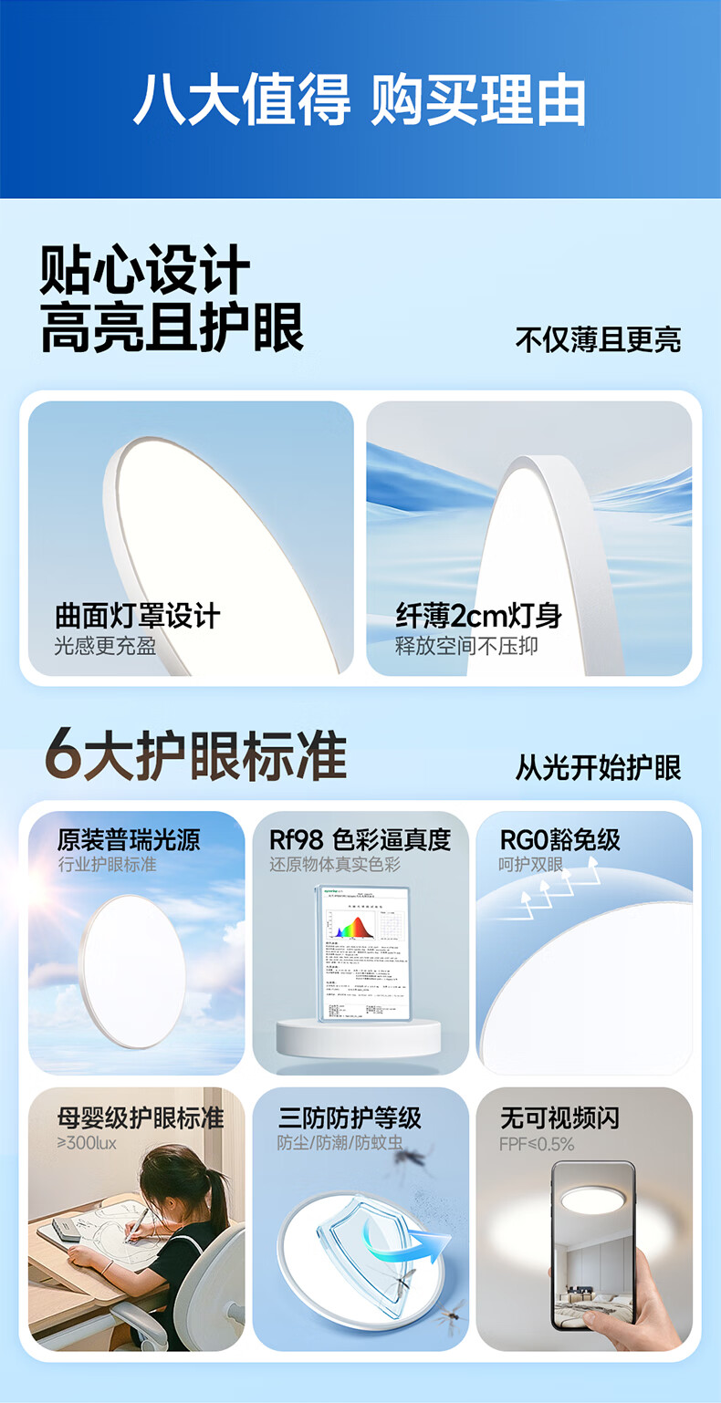 惠普普瑞护眼卧室吸顶灯现代简约led超薄中山灯具房间主灯包安装