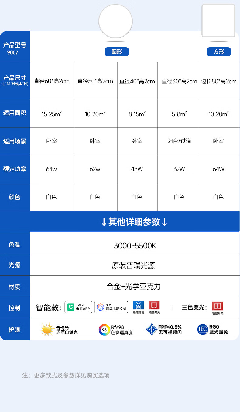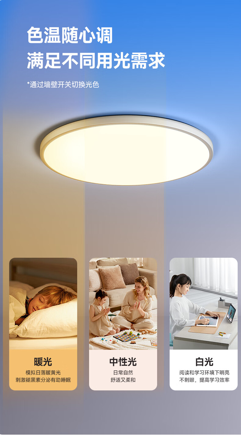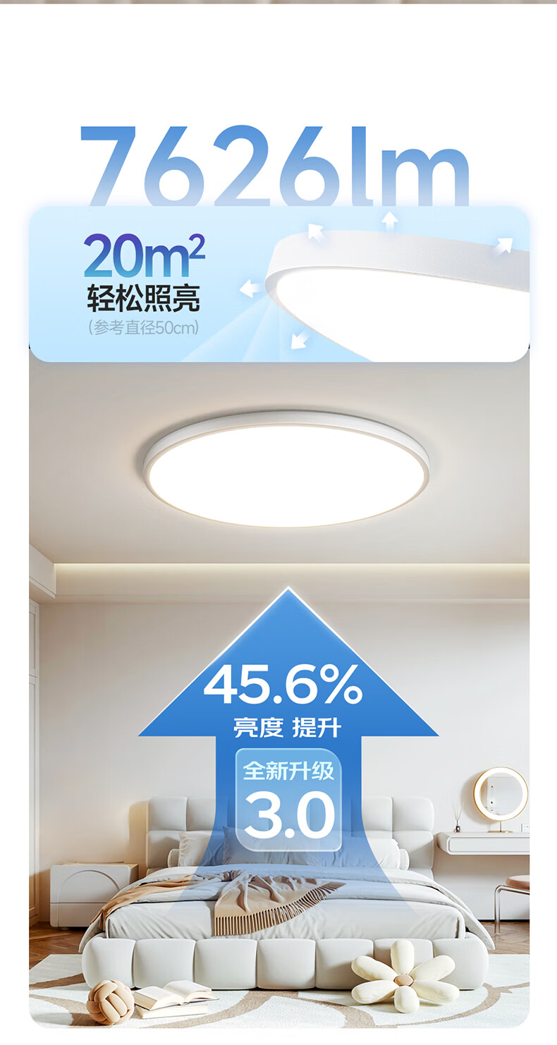 三雄极光led吸顶灯全光谱护眼客厅灯餐厅灯防蓝光书房灯具 128W 30㎡内适用 6800lm P3智控·接入米家app