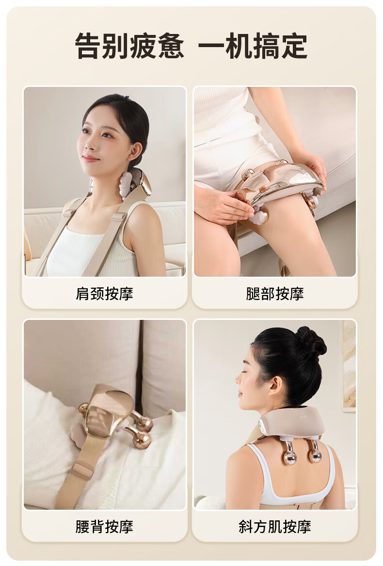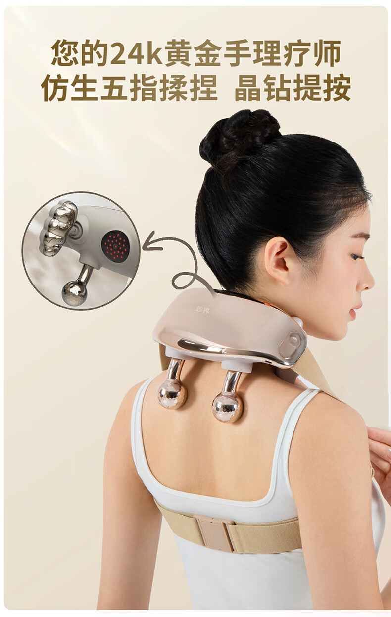 妙界【政府补贴】R7电镀黄金手肩颈按摩仪颈椎按摩器斜方肌腰背颈部仿人手揉捏热敷生日礼物男女 粉