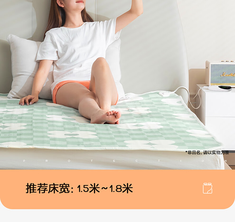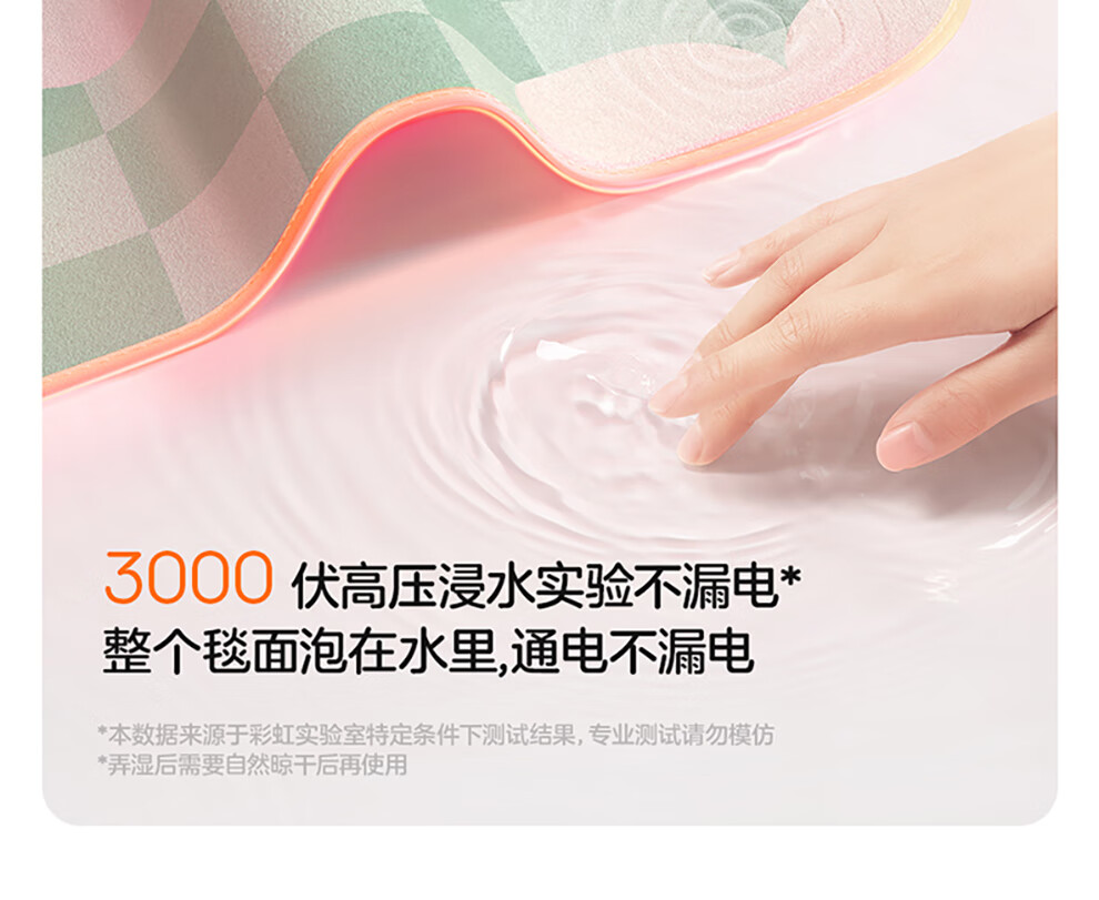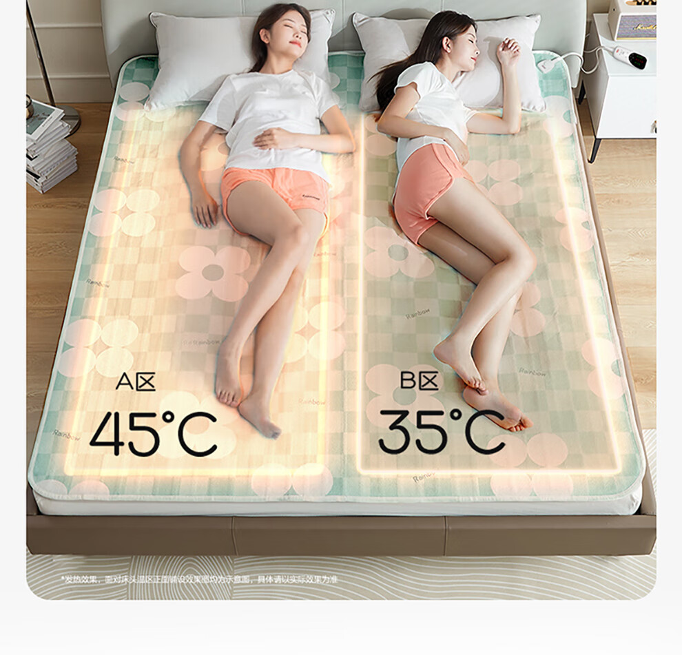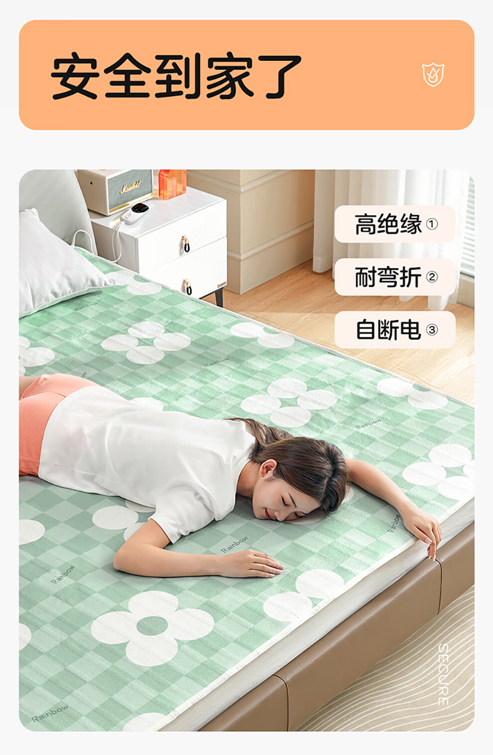 彩虹电热毯电褥子宽1.5/1.8米排潮烘被电毯子高温自动断电加厚电暖毯 定时除螨 长1.8米宽1.5米 无纺布