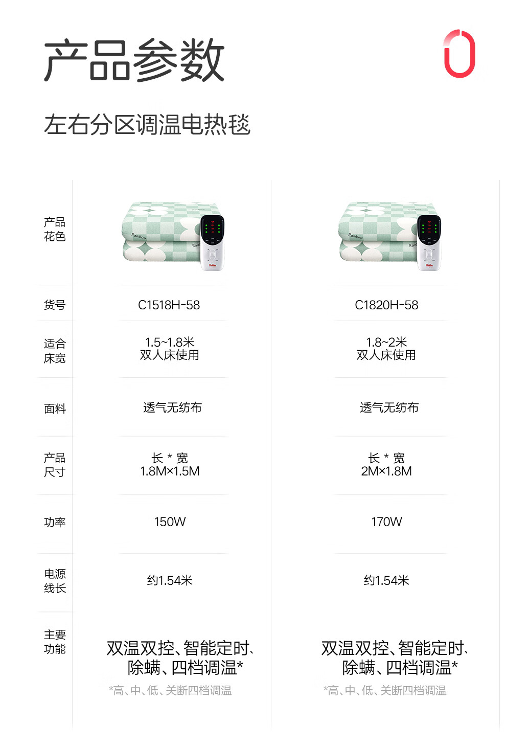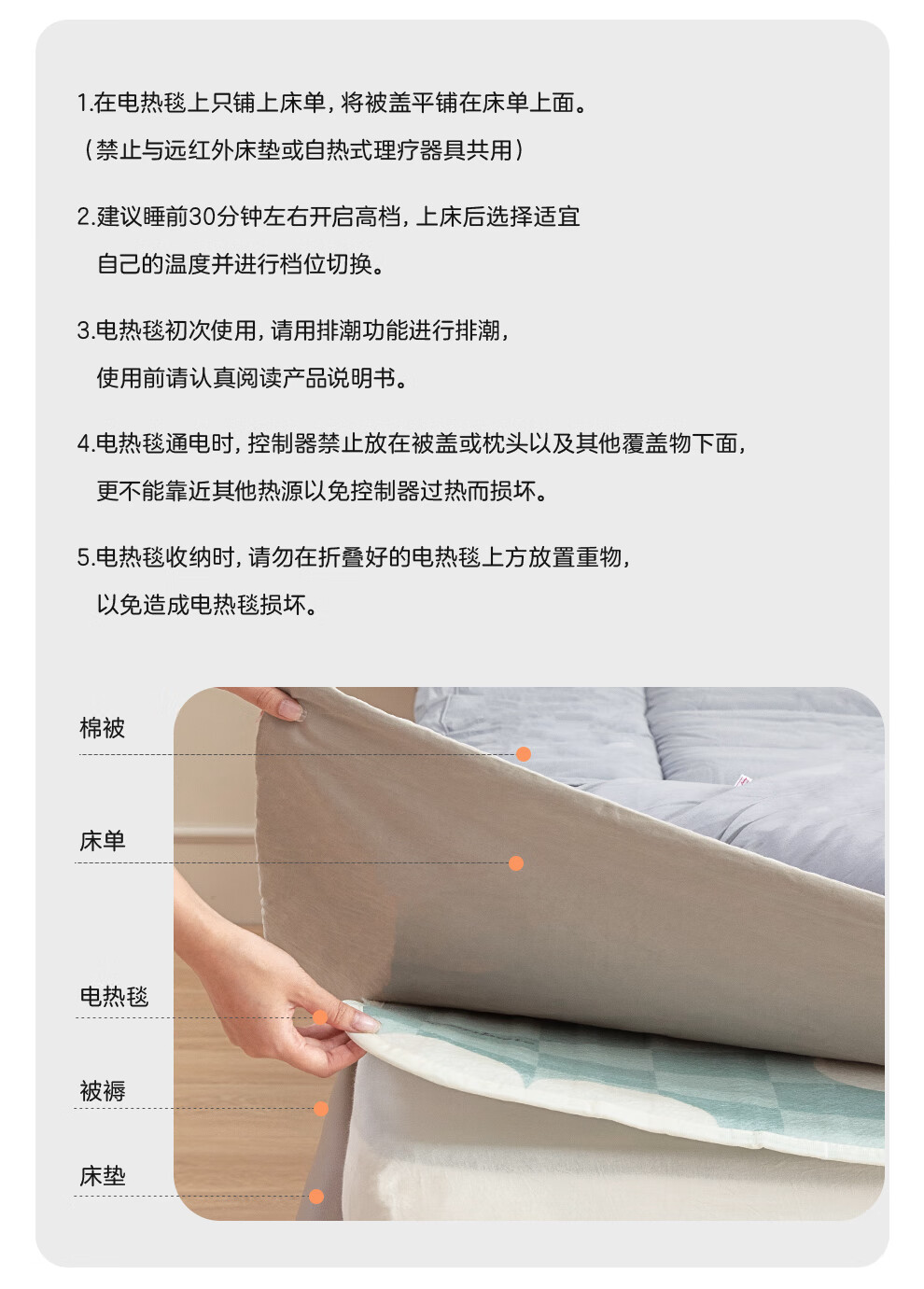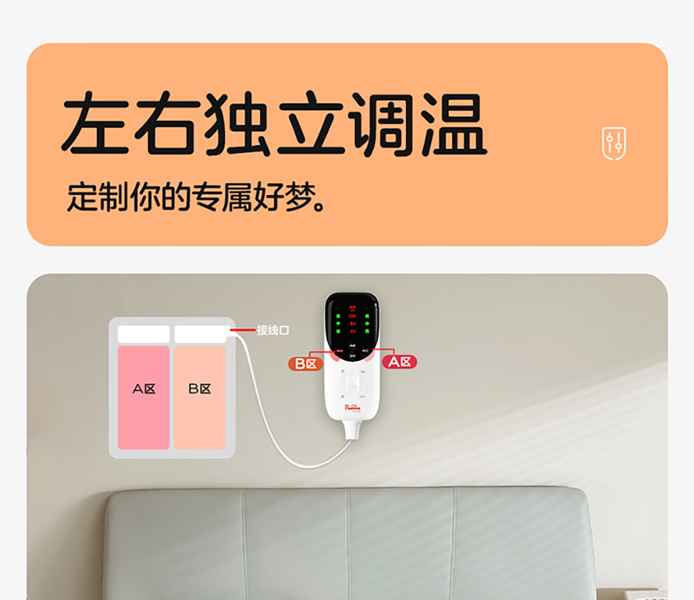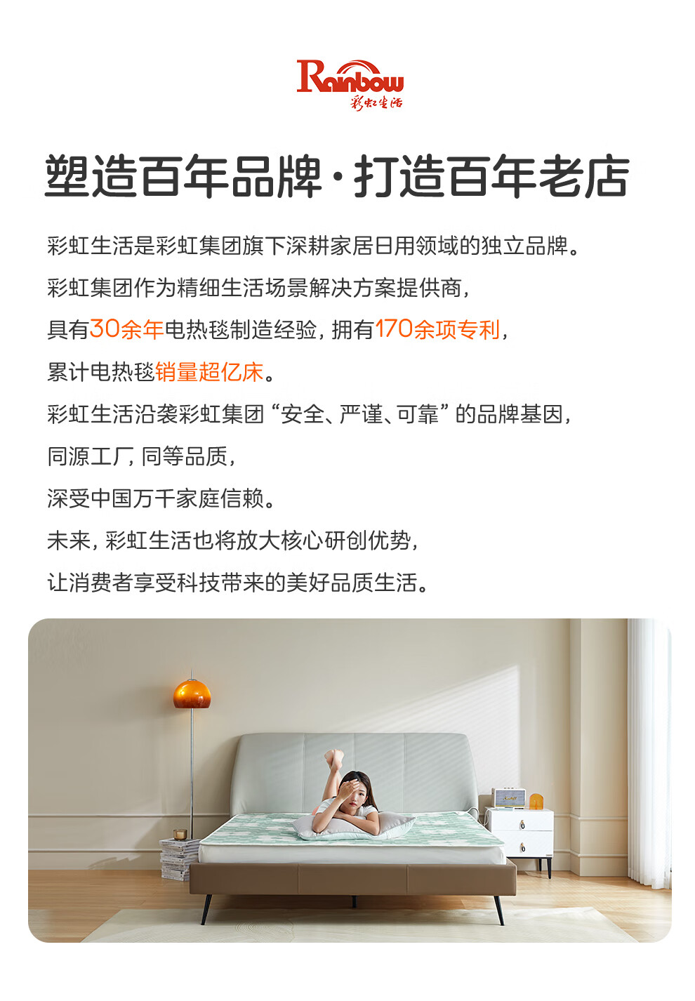 彩虹电热毯电褥子宽1.5/1.8米排潮烘被电毯子高温自动断电加厚电暖毯 定时除螨 长1.8米宽1.5米 无纺布