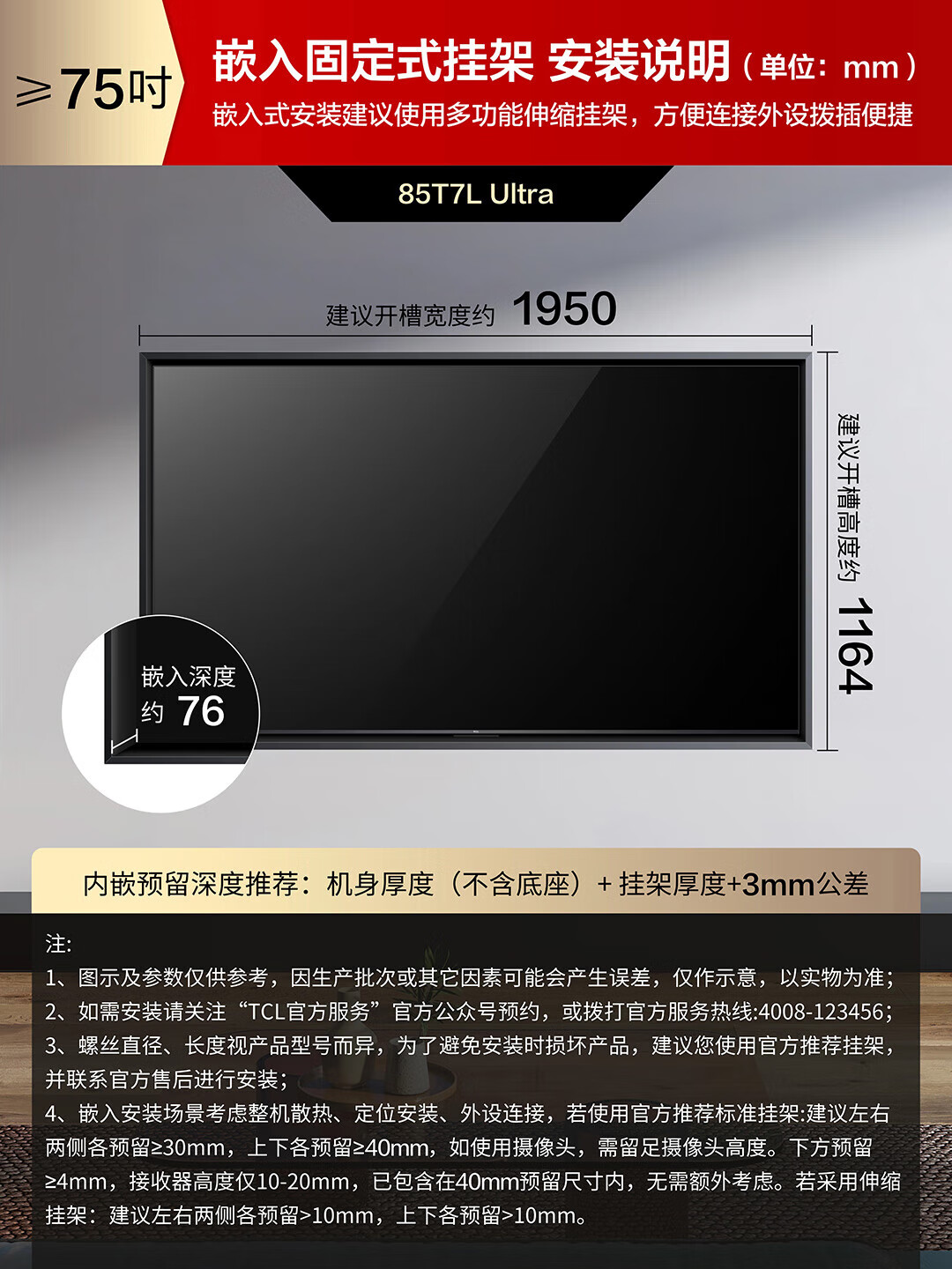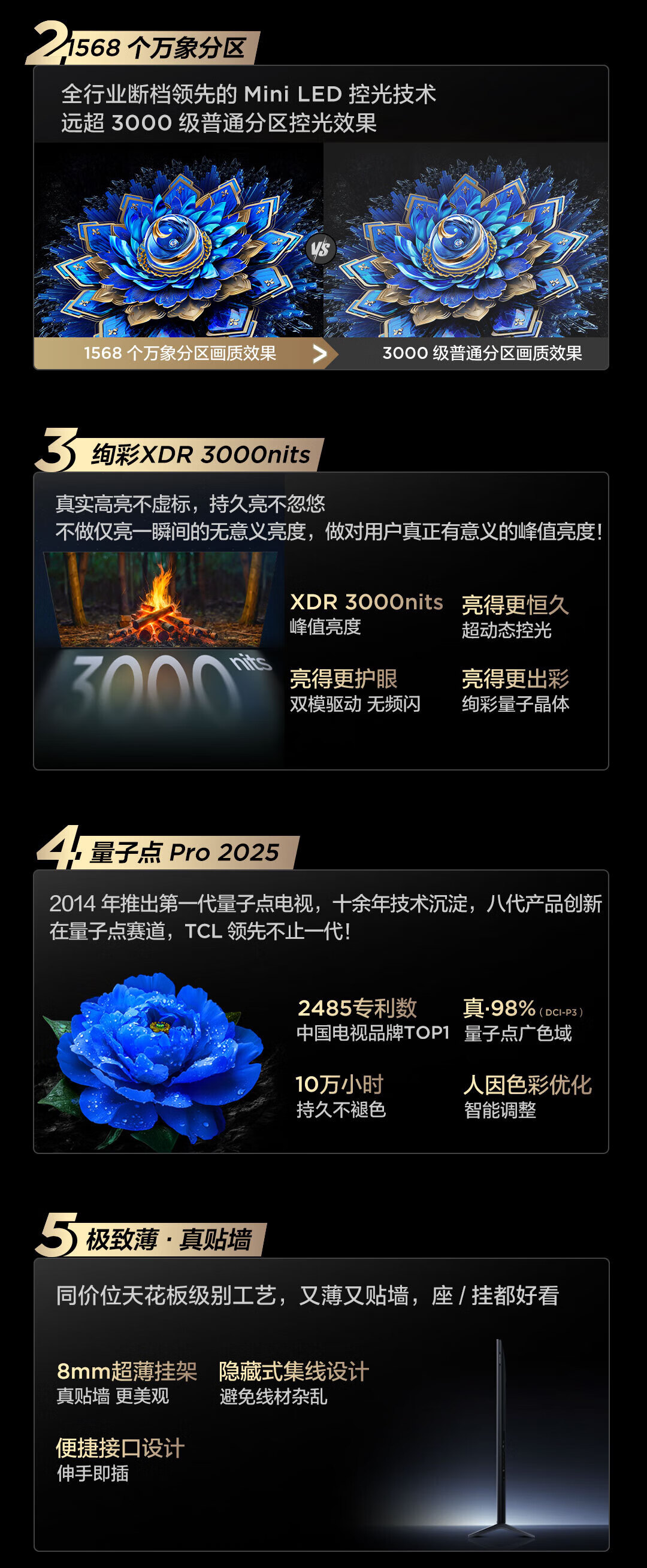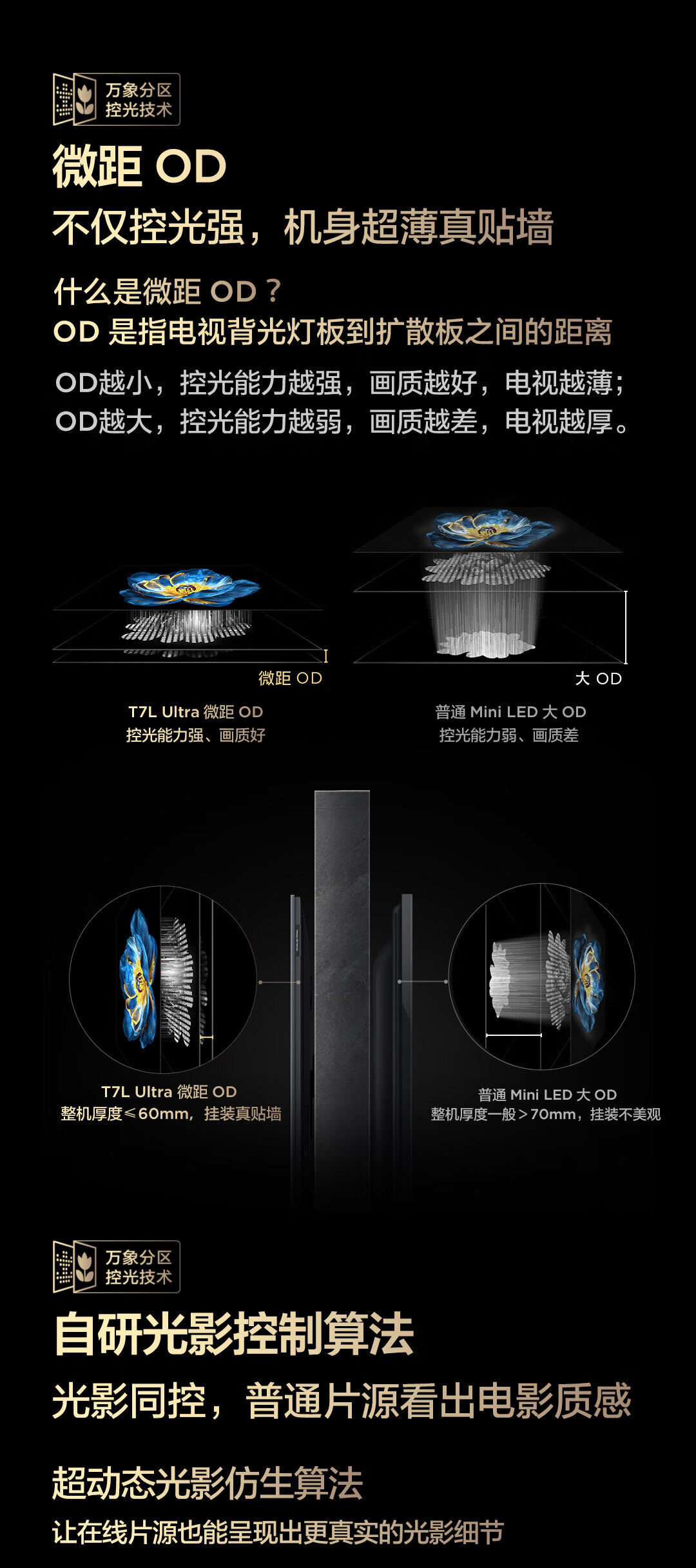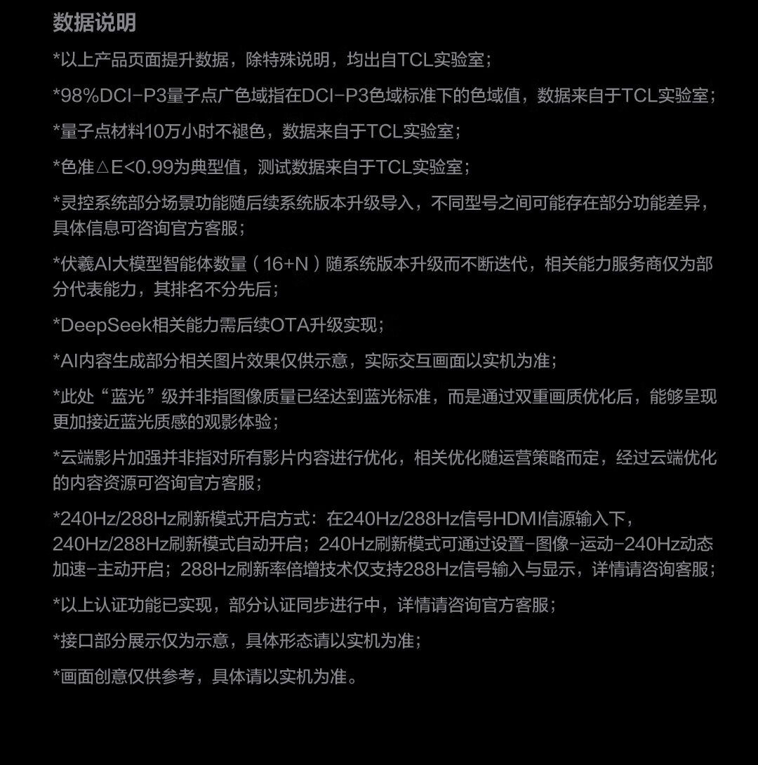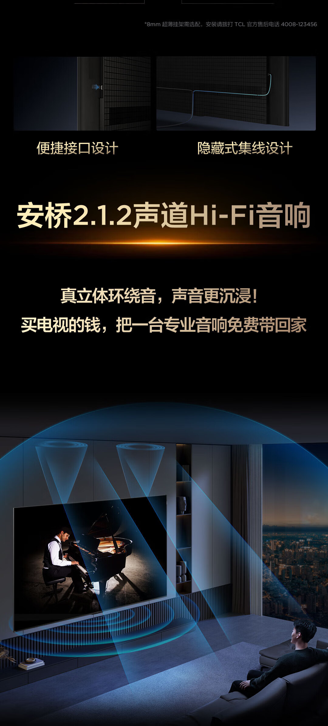 TCL电视 85T7L Ultra 85英寸 QD-Mini LED 蝶翼星曜屏 万象分区 绚彩XDR 3000nits 超薄 国家补贴 85英寸
