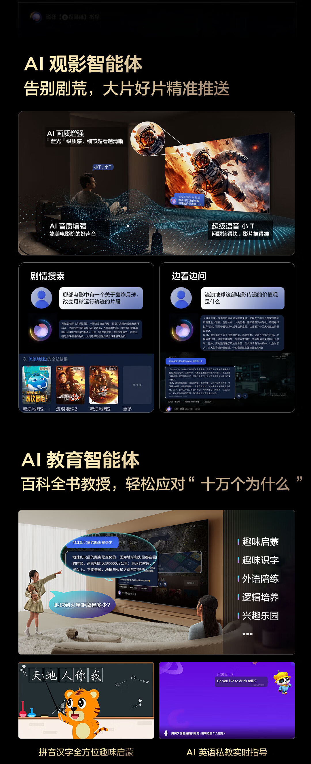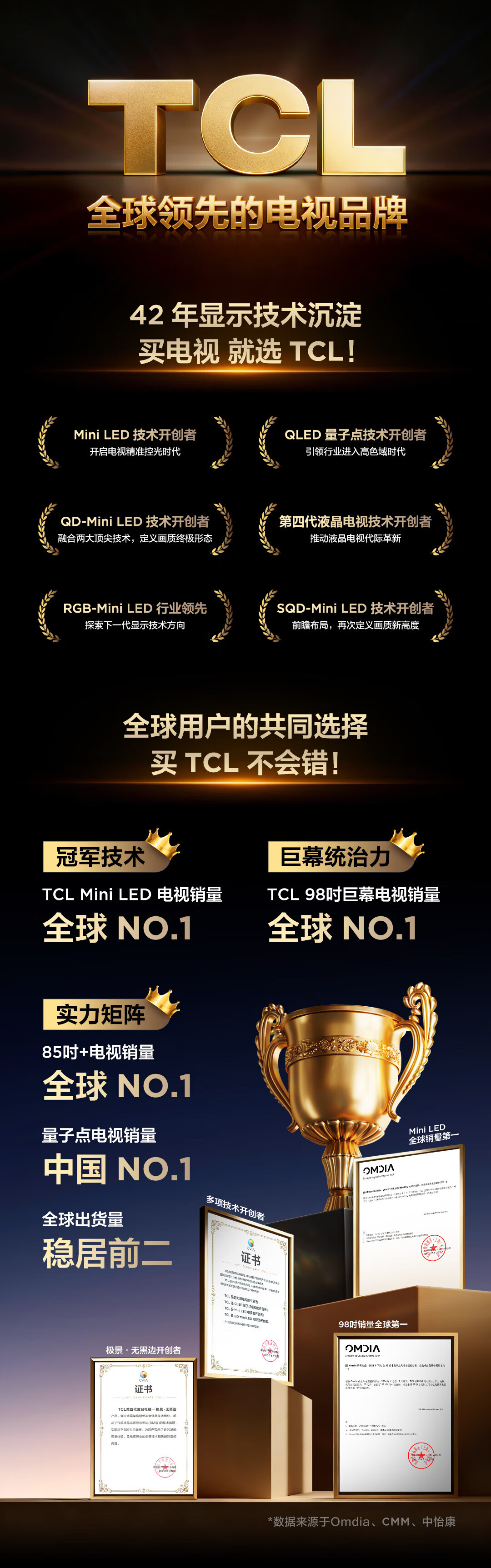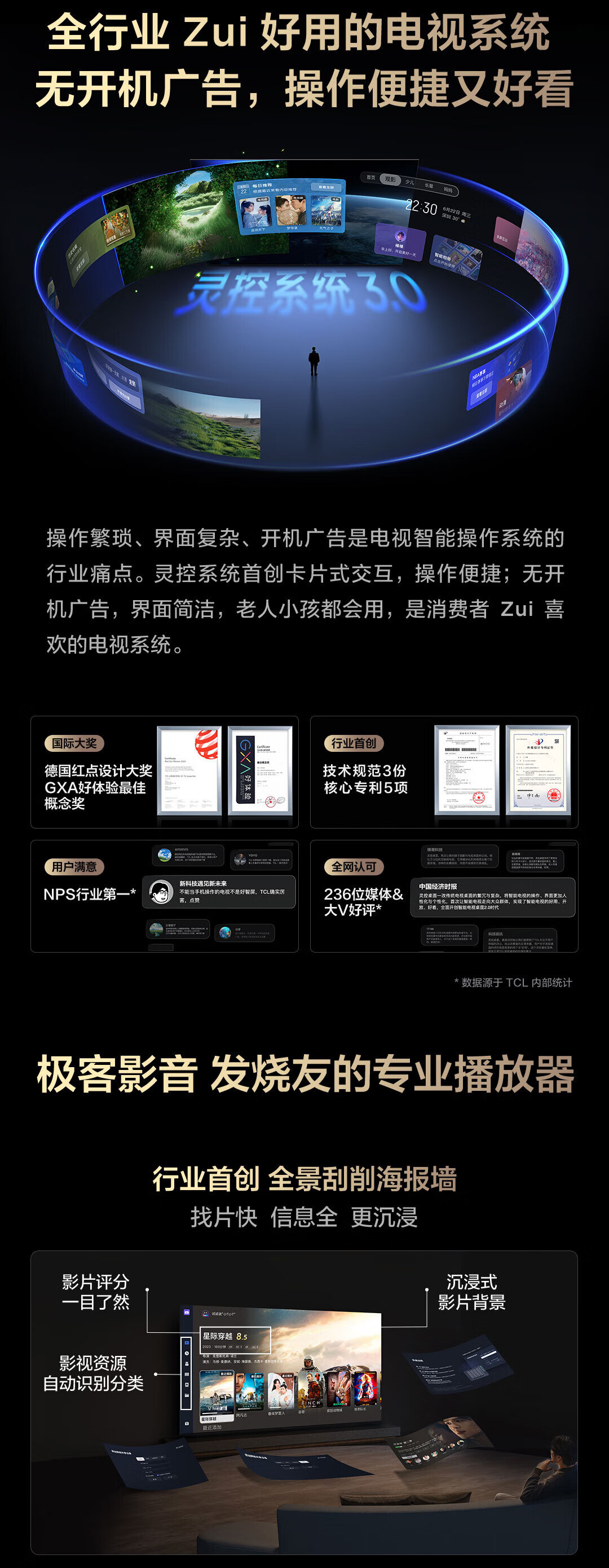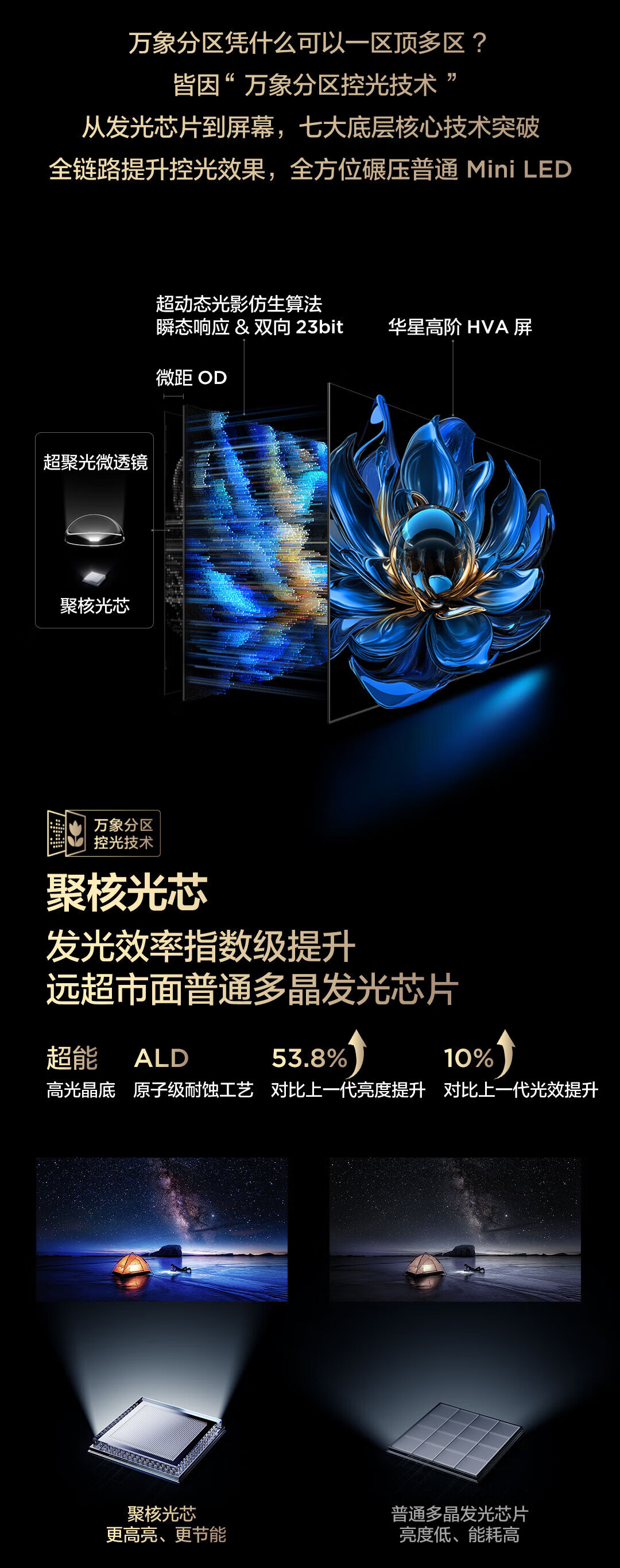 TCL电视 85T7L Ultra 85英寸 QD-Mini LED 蝶翼星曜屏 万象分区 绚彩XDR 3000nits 超薄 国家补贴 85英寸