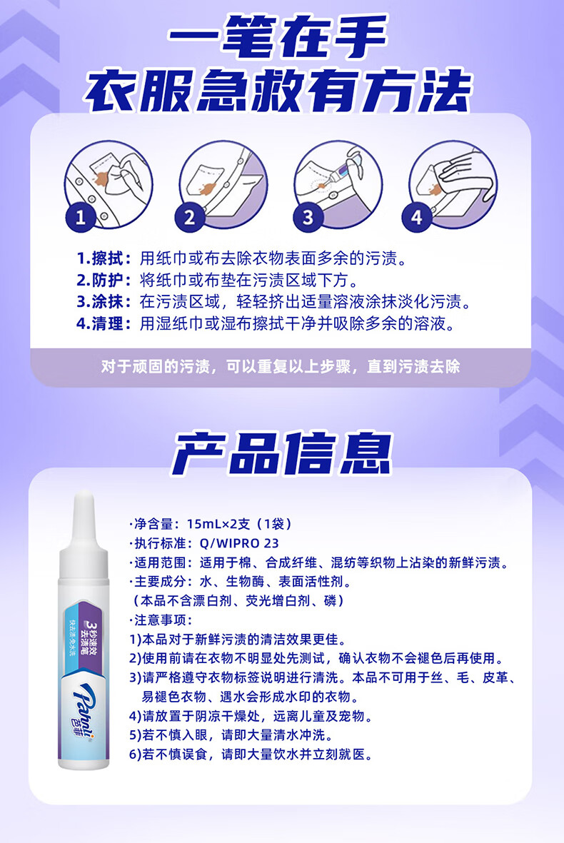 芭菲去渍笔15mL×2支 去污笔去油渍衣服便携免水洗出行清洁剂