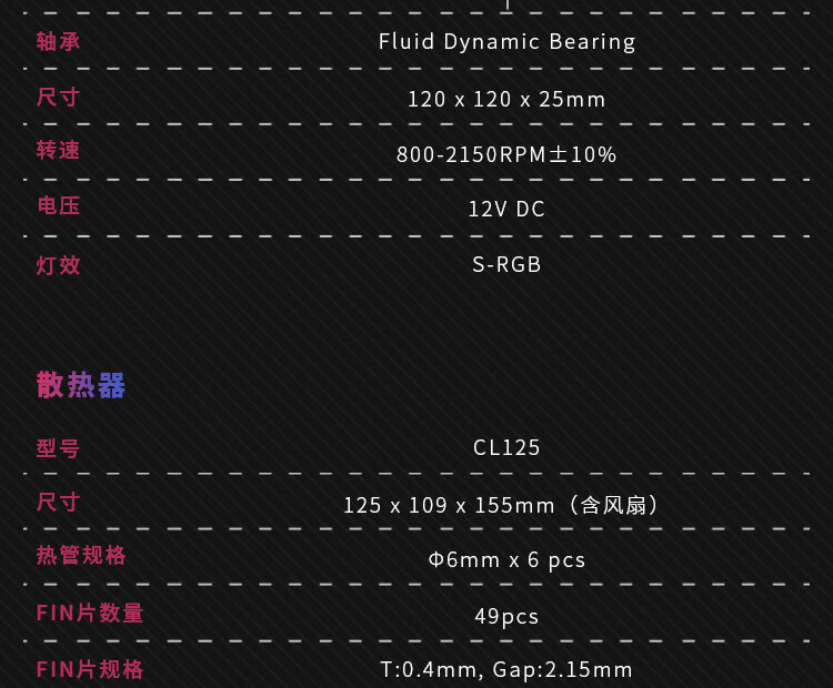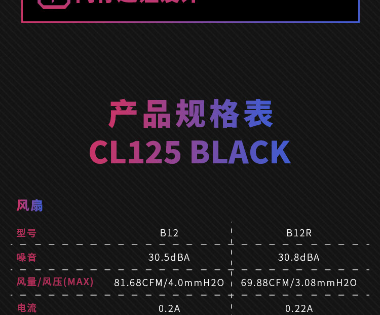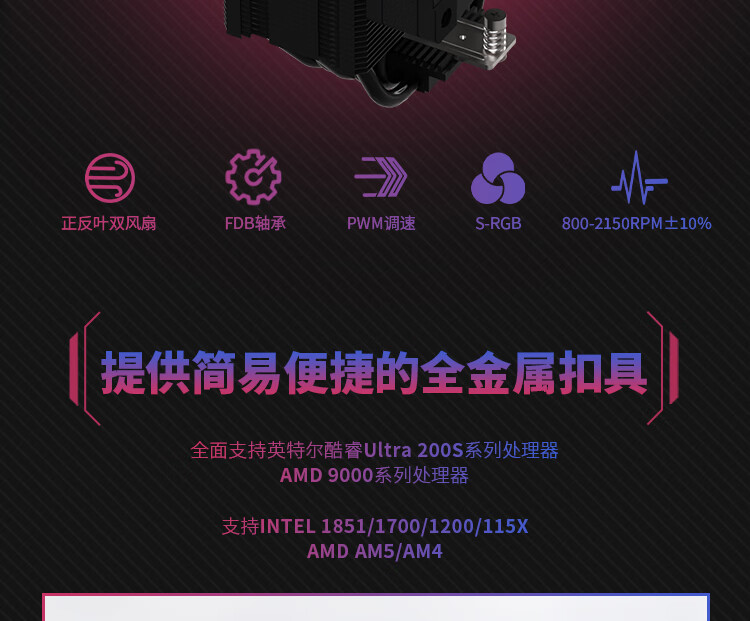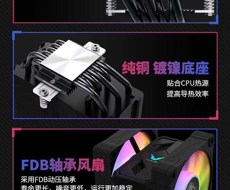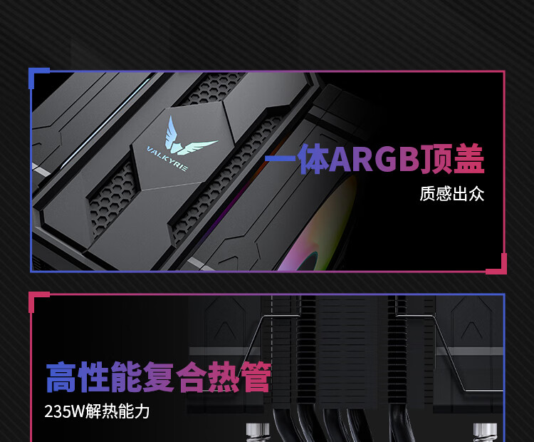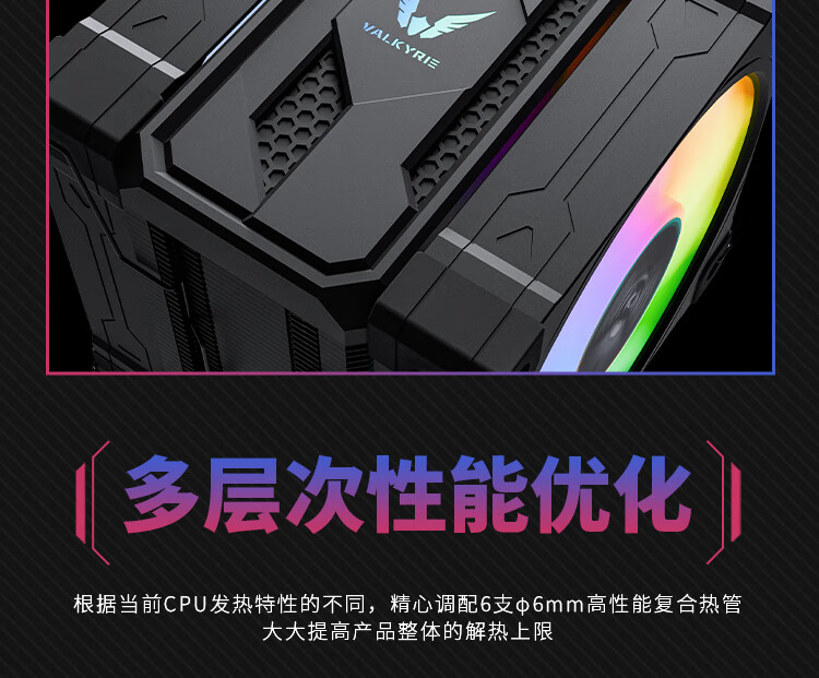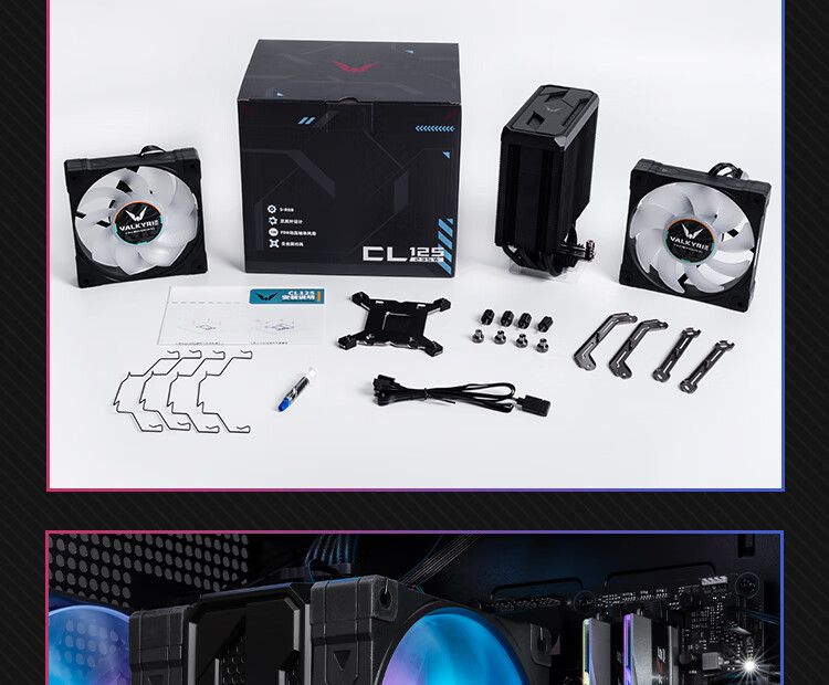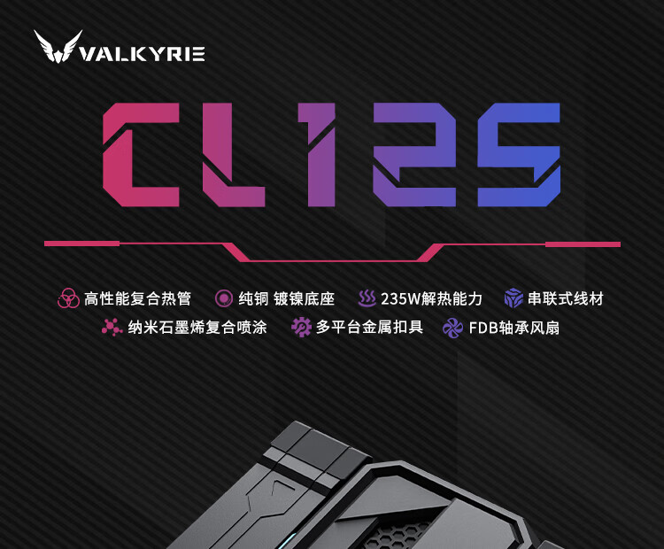 瓦尔基里(VALKYRIE)CL125 BLACK VK CPU风冷散热器 逆重力6热管纯铜底 支持LGA1700 AM5 ARGB光效