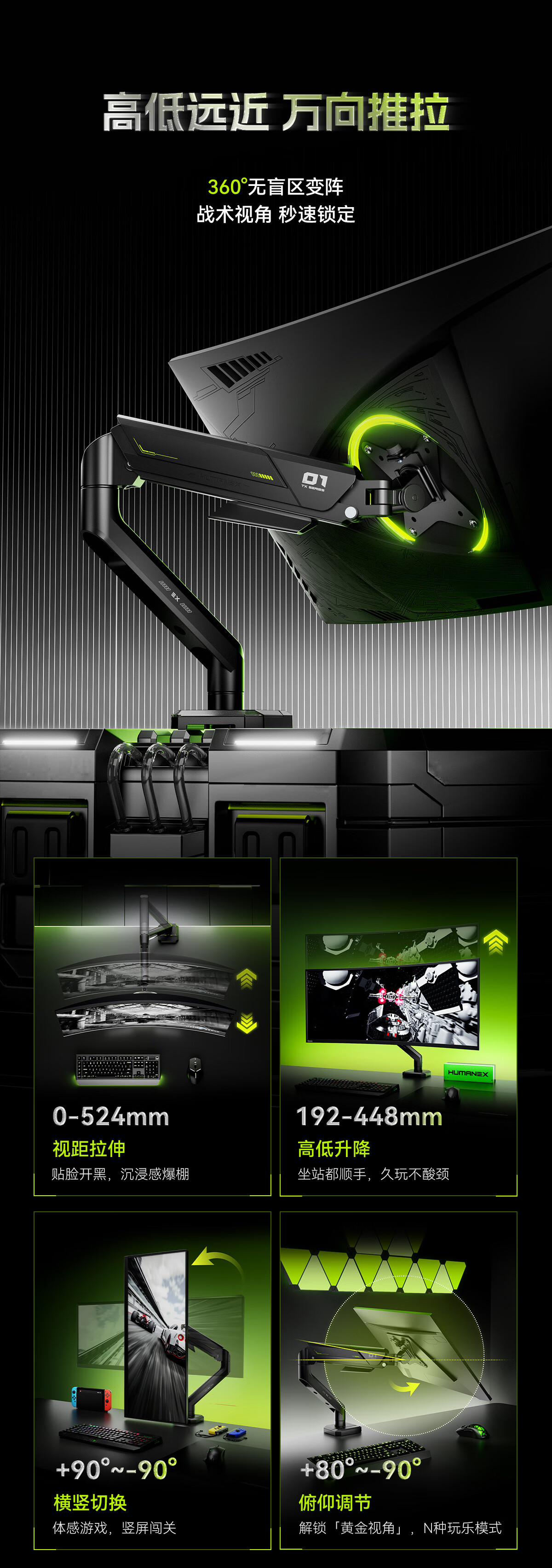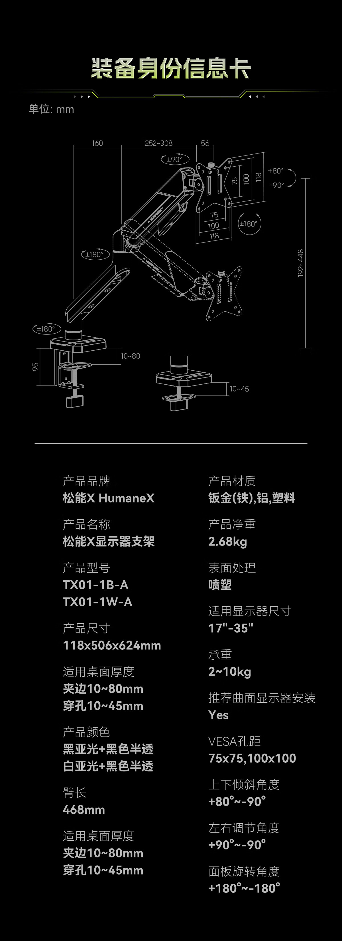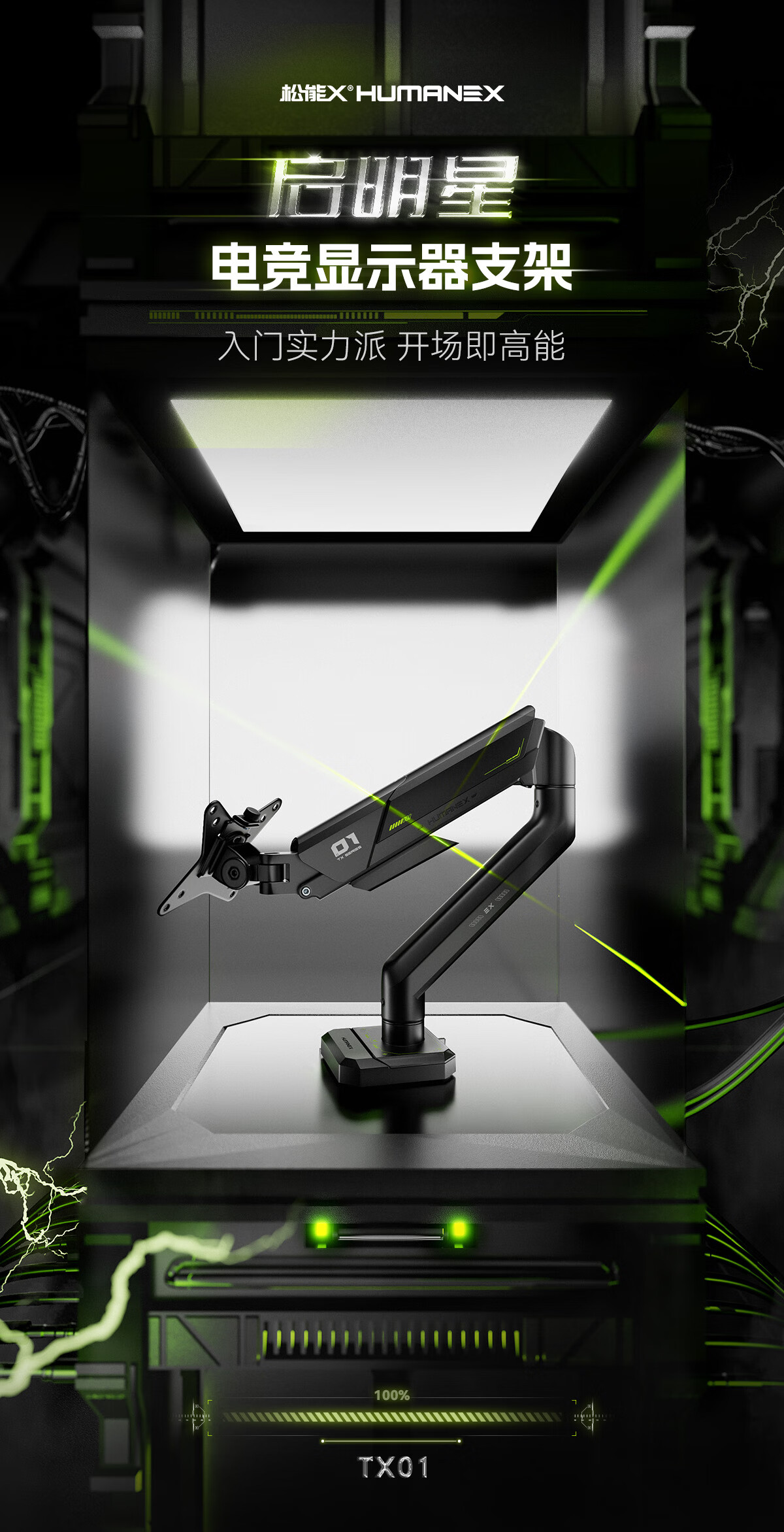 松能X显示器支架 机械臂显示屏支架臂显示器增高架电竞电脑屏幕支架17-35英寸10KG适配 TX01-1B-A黑亚光