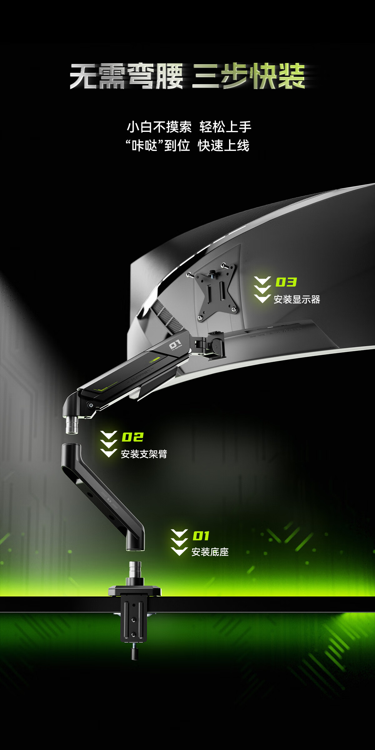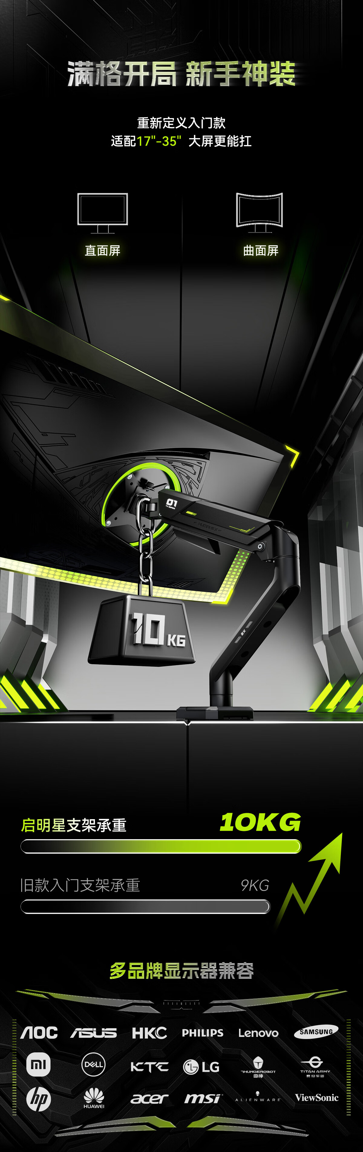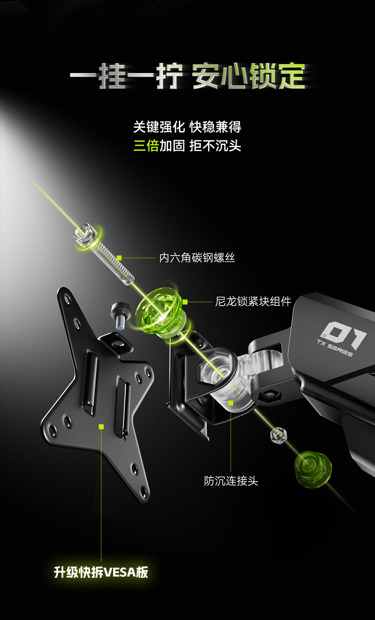 松能X显示器支架 机械臂显示屏支架臂显示器增高架电竞电脑屏幕支架17-35英寸10KG适配 TX01-1B-A黑亚光