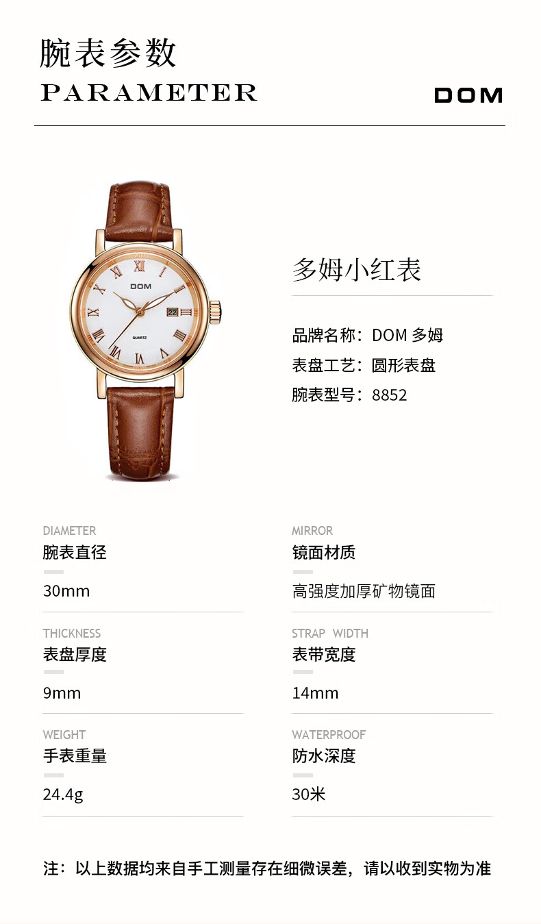 DOM2025新款手表女士小表盘机械风石英品牌十大名初高中学生送女生