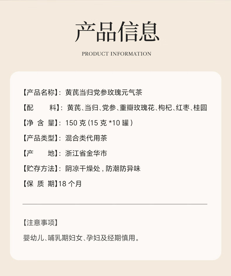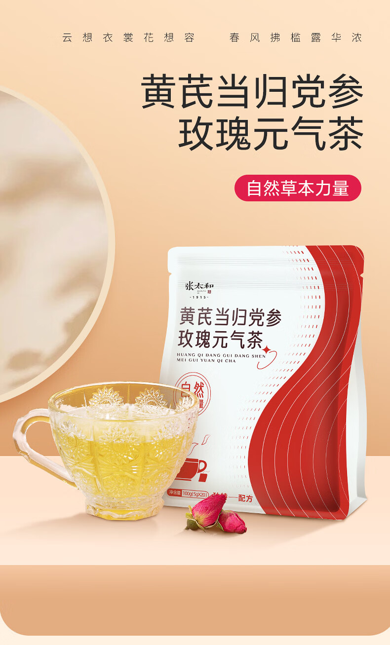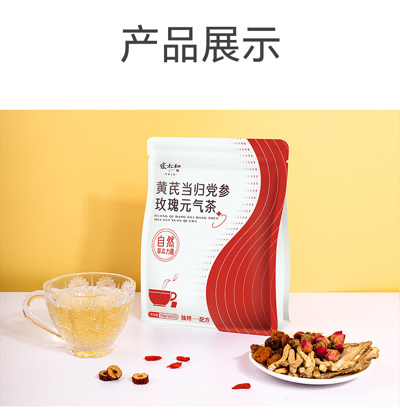 张太和黄芪当归党参玫瑰元气茶 煮水泡水玫瑰花茶 桂圆红枣枸杞茶 黄芪当归党参玫瑰元气茶 100g(5g*20)/袋
