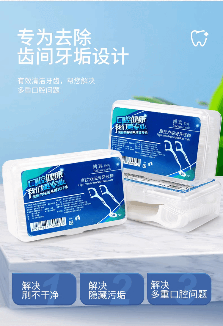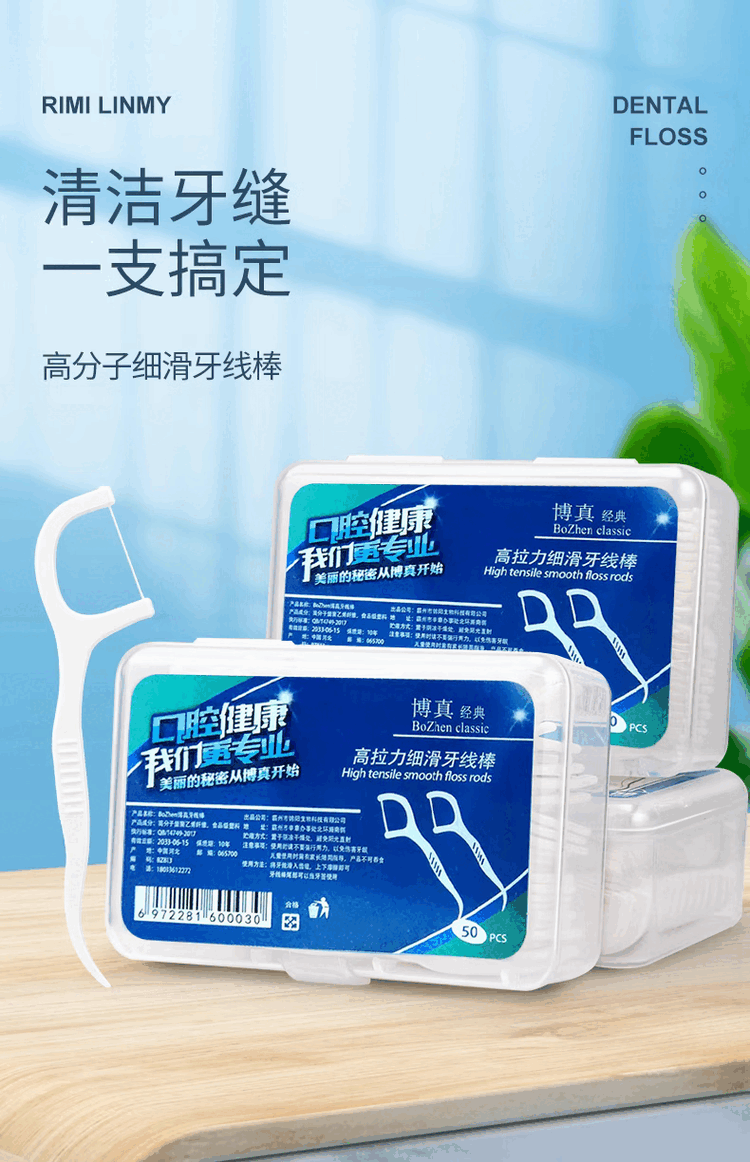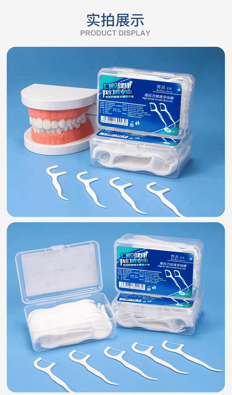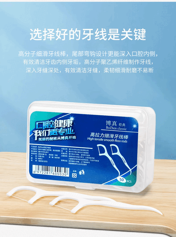 博真(BOZhen)牙线棒洁齿牙线超细一次性牙签不卡牙清洁齿缝剔牙圆线家庭装便携 牙线棒50只*10盒