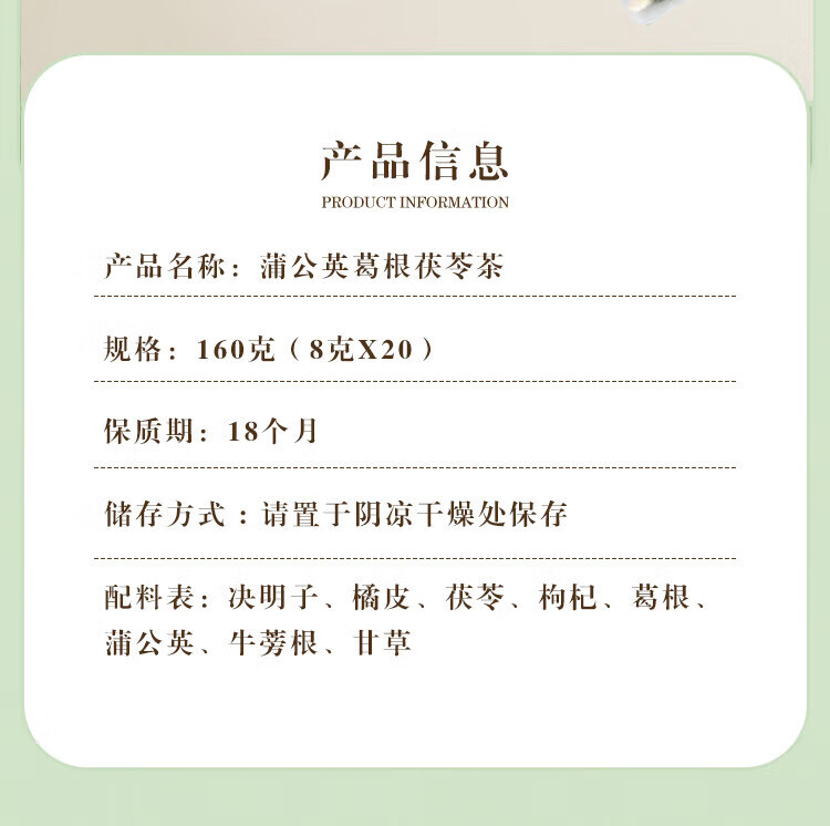 朕皇北京同仁堂蒲公英茶茯苓枸杞决明子牛蒡葛根甘草叶组合养生袋泡茶 【2盒分享装】20袋/盒