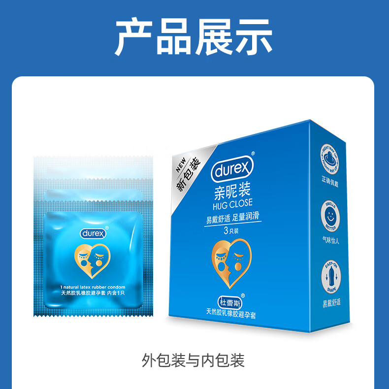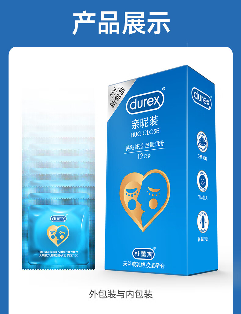 杜蕾斯杜蕾斯亲昵3/12只装易戴舒适足量润滑安全套男用计生用品byt 天蓝色