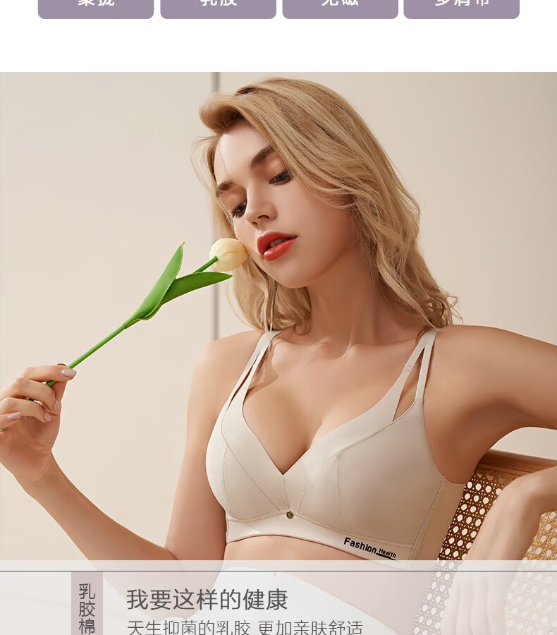 华婷露(Huatinglu) 上薄下厚2cm无钢圈文胸乳胶内衣女无磁铁文胸小胸聚拢中厚显大胸 香草肤 36/80B