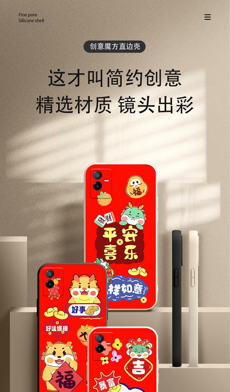 美希意【精选直发】 适用vivoT2x手机壳V2164KA喜庆iQOOZ6x网红Y73t防摔V2188A个性创意全包边镜头 曜石黑-万柿如意-单壳 vivo T2x