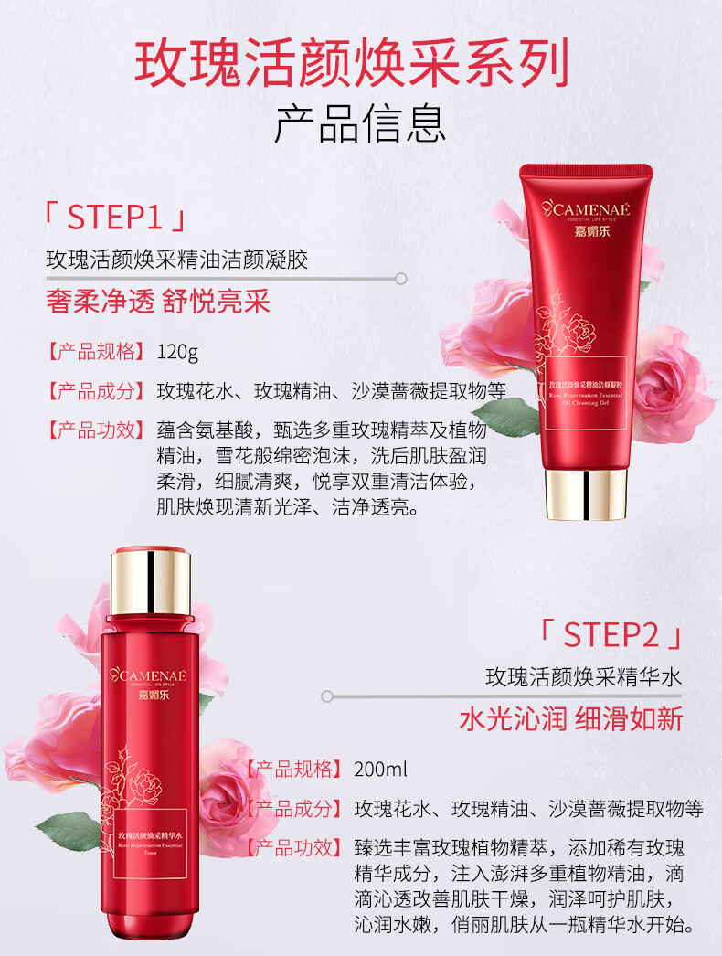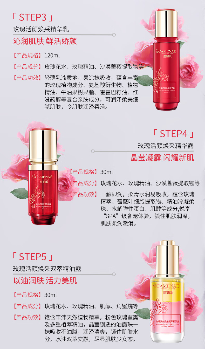 嘉媚乐玫瑰活颜焕采系列洁面水乳霜精华面膜保湿补水滋润 玫瑰活颜焕采精华乳120ml