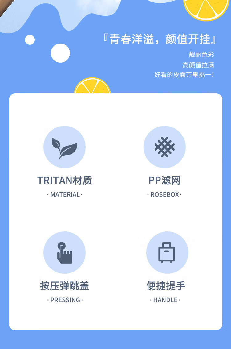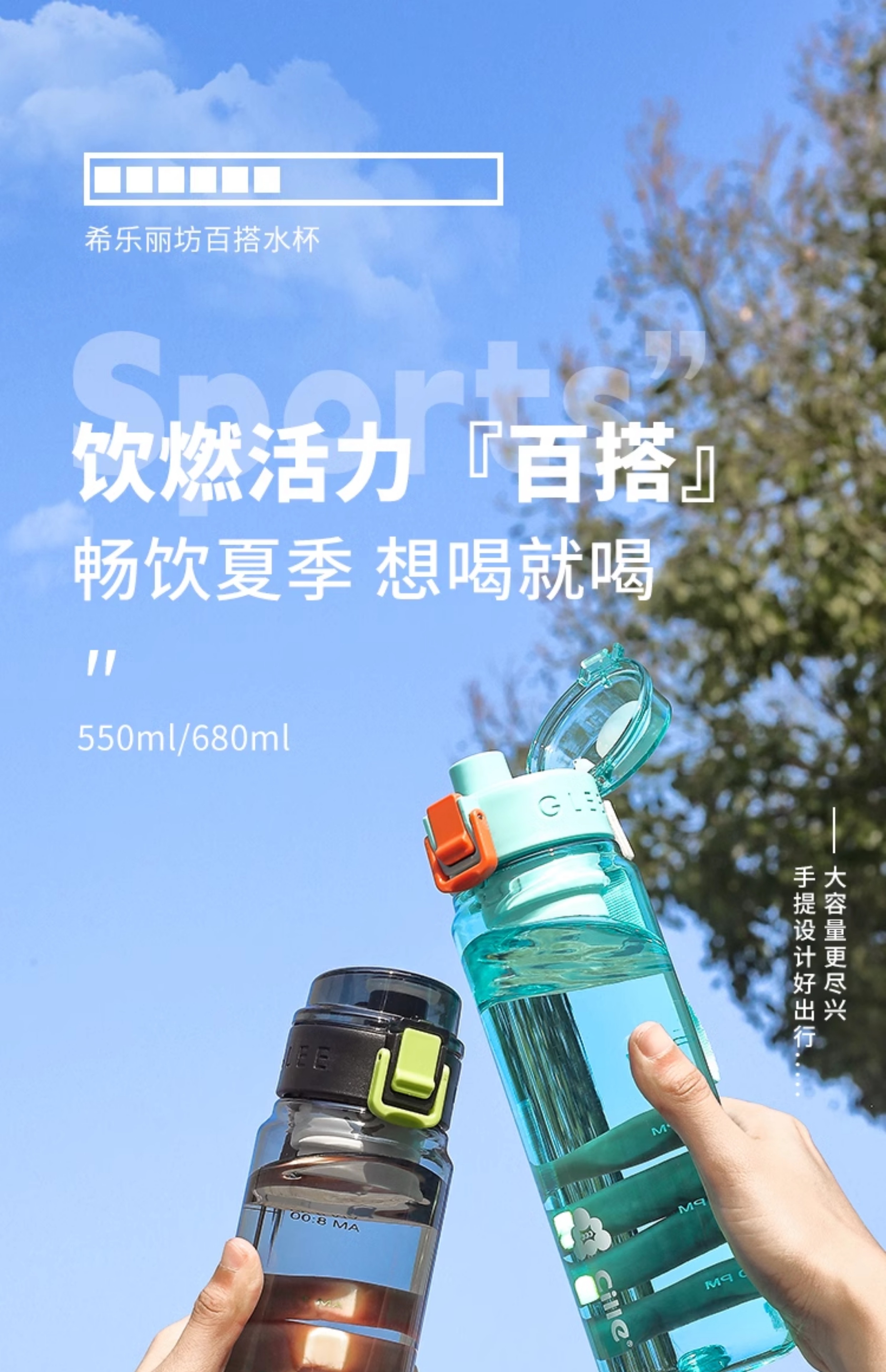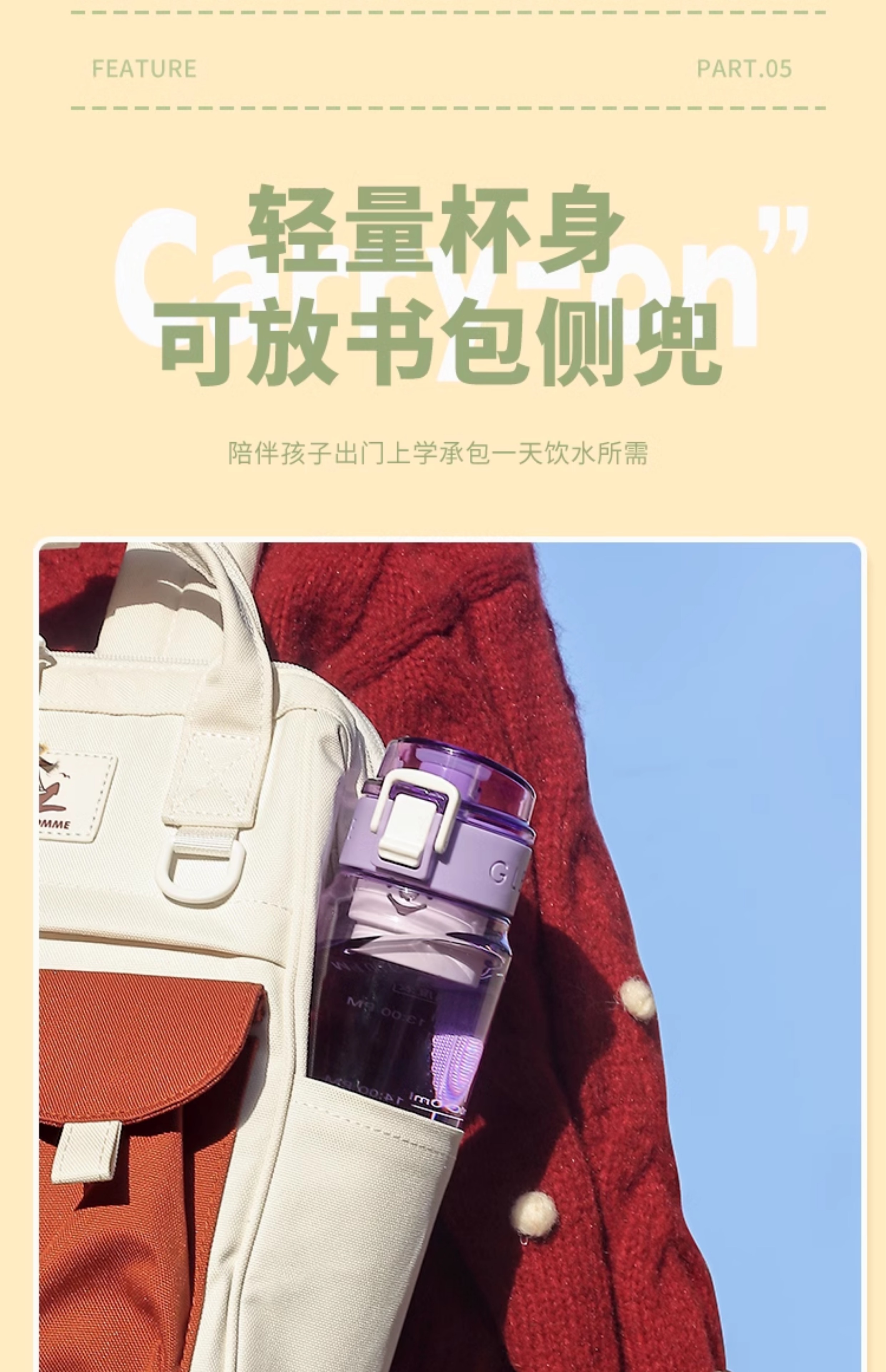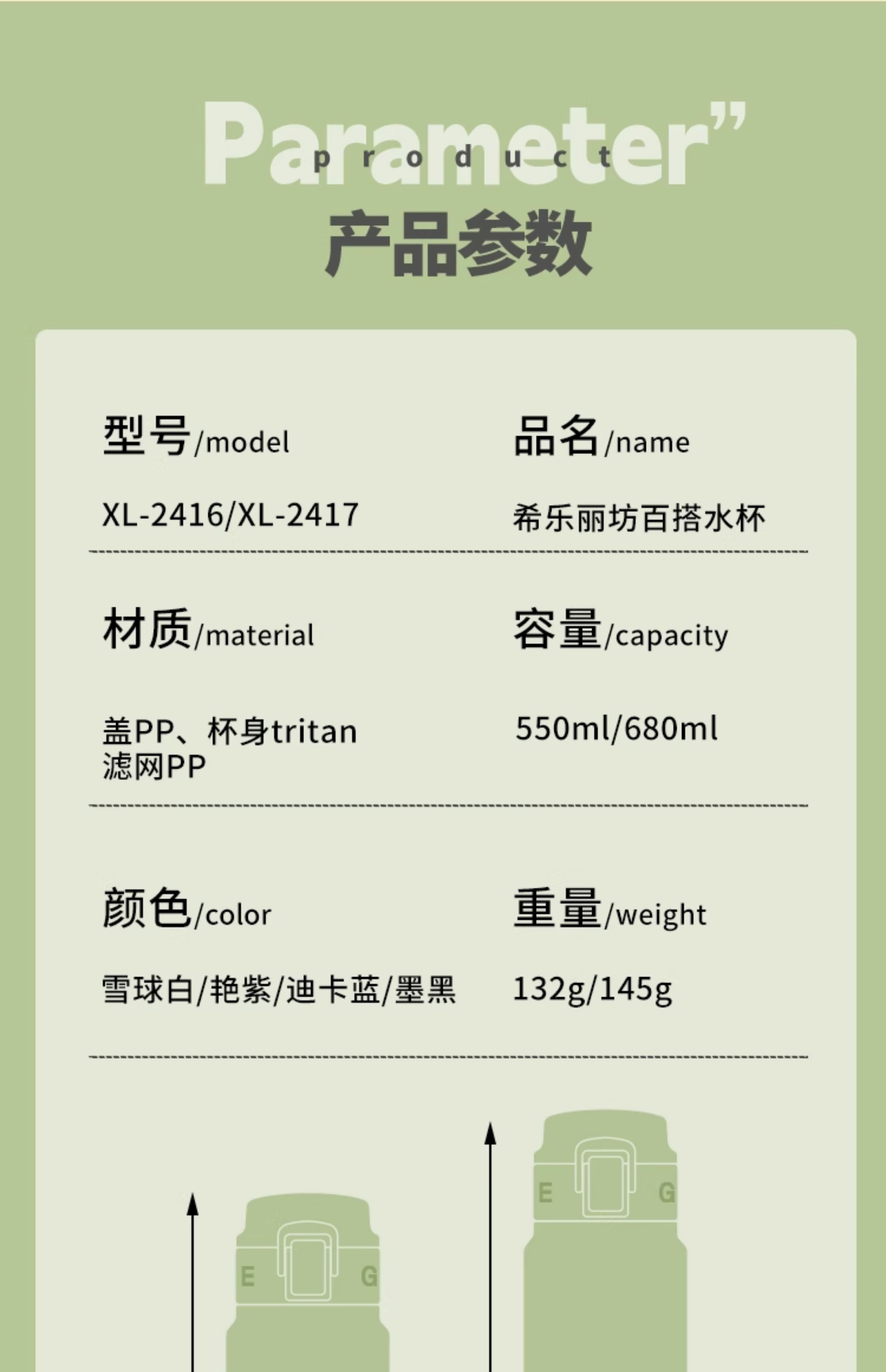 水杯简约男女生2025新款便携tritan杯子高颜值学生夏天塑料杯 雪球白+凯蒂猫+蝴蝶结 680ml