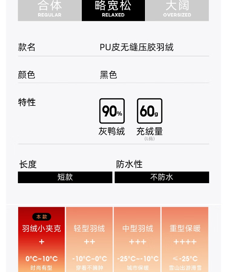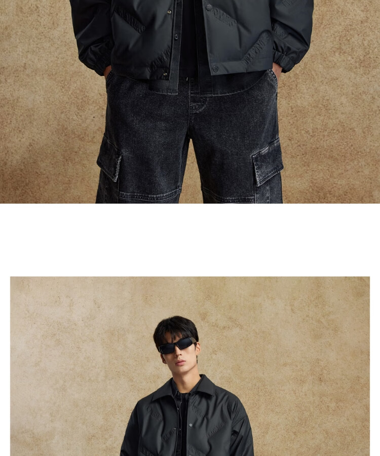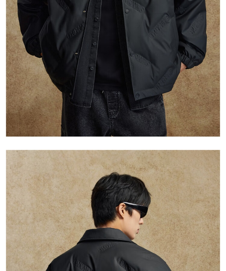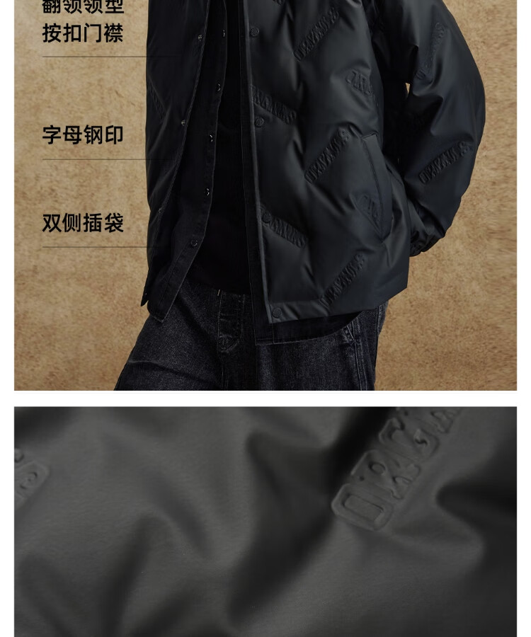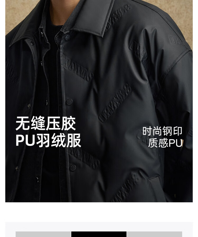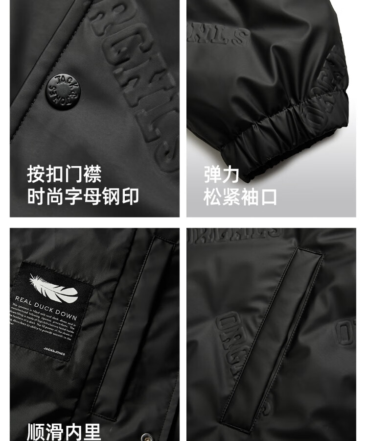 杰克·琼斯(JACK&JONES)男装25年秋冬季轻薄羽绒服男士翻领无帽短款PU压胶鸭绒服夹克 E41黑色 L (180)