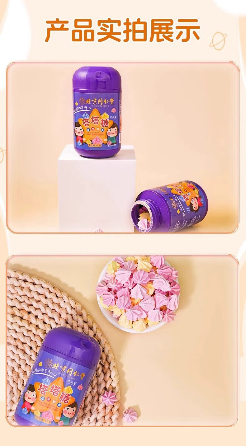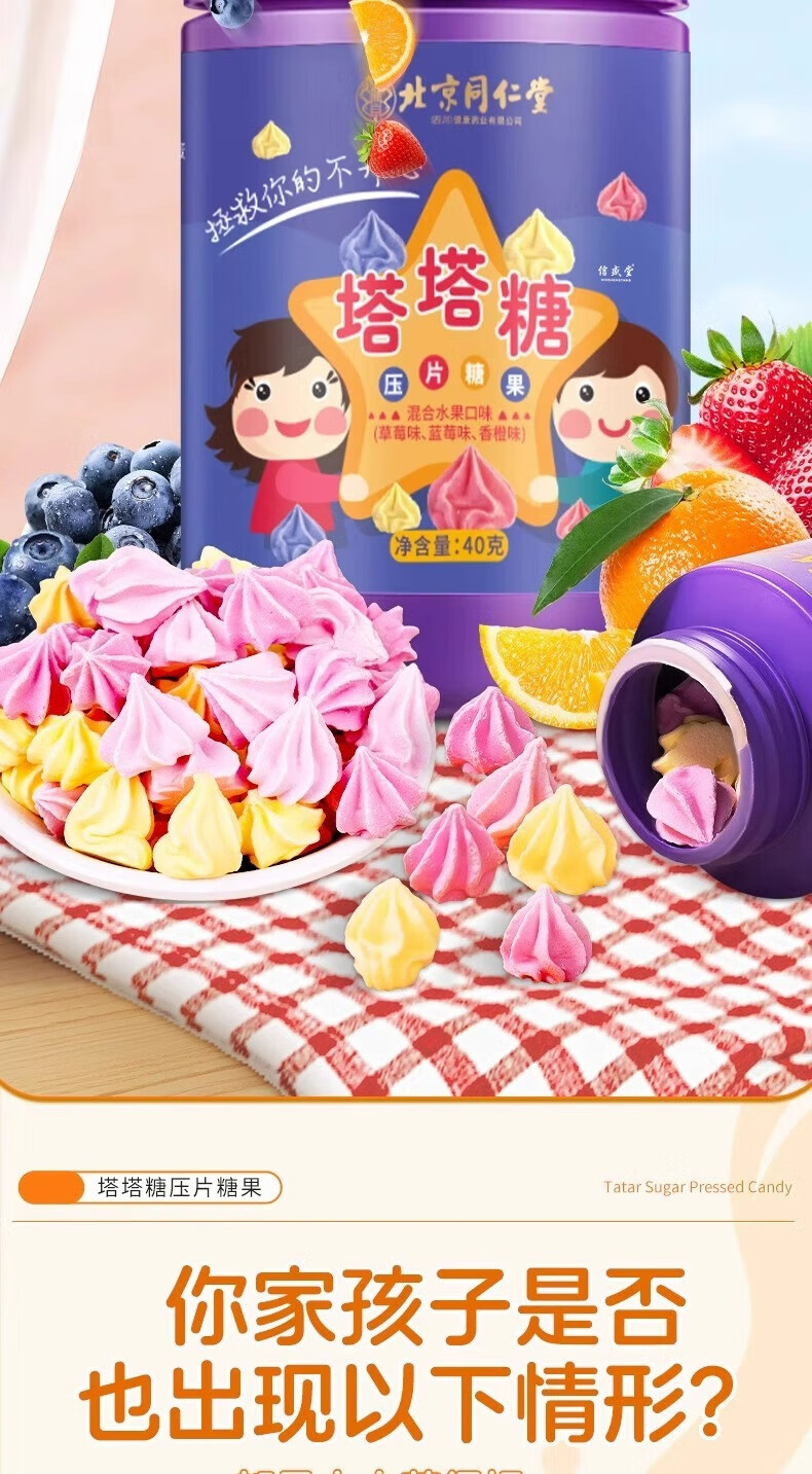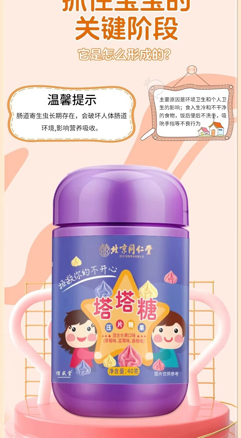 朕皇北京同仁堂宝塔糖塔塔糖鸡内金儿童驱虫蛔虫呵护脾胃开胃40g 常备装【3盒装】