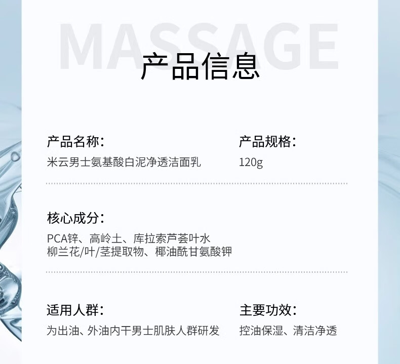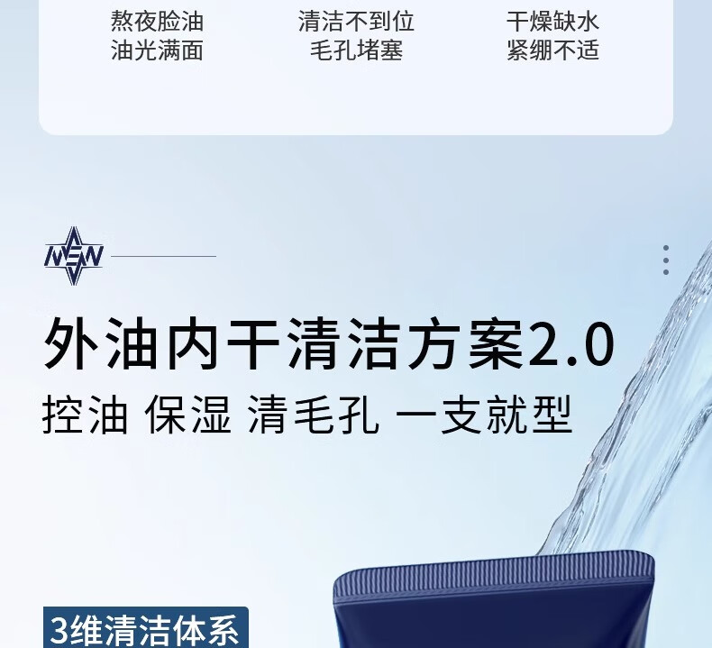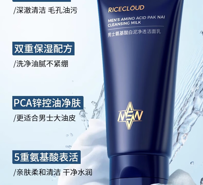 米云男士洗面奶氨基酸洁面控油净痘清洁毛孔洁面乳敏感肌学生男洗面乳 【店铺热销TOP1】控油净痘单瓶装