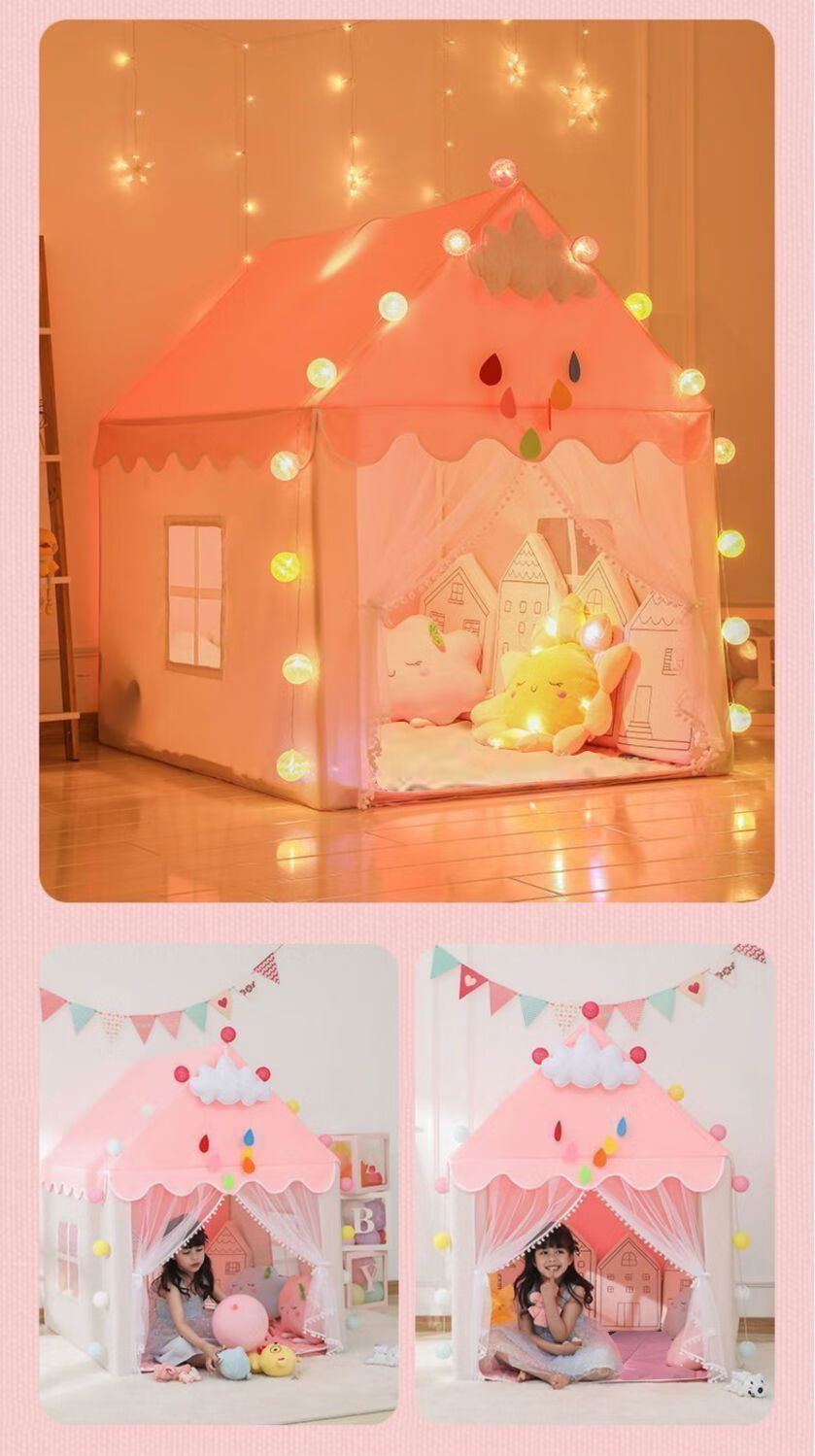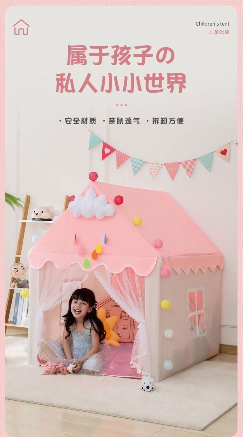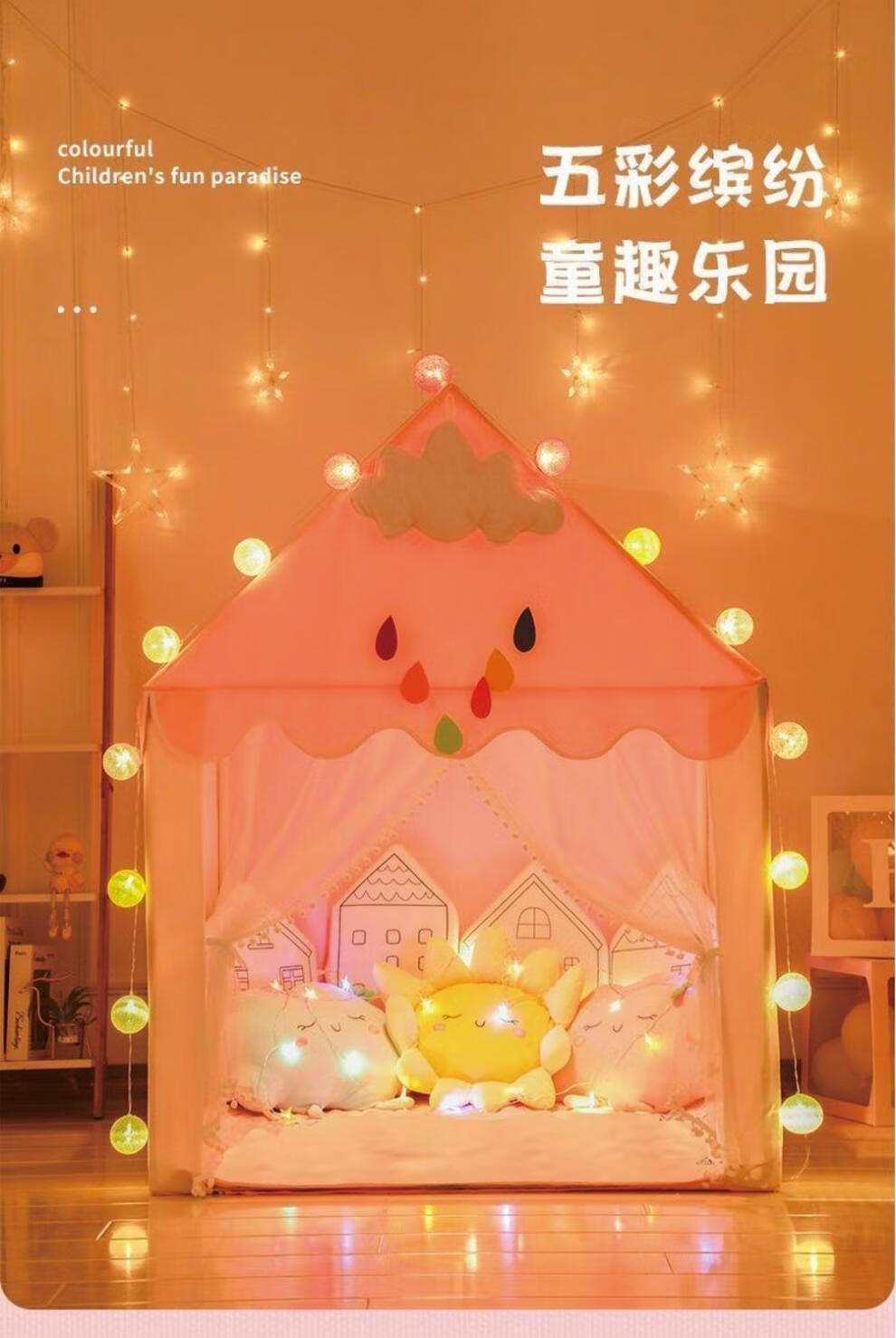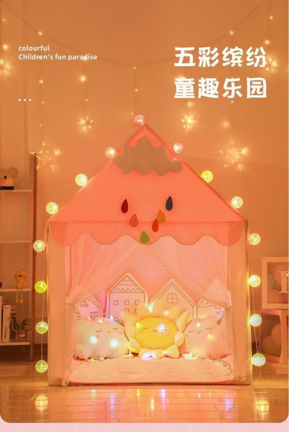 婕茵桐秘密基地小屋帐篷 游戏屋小房子城堡公主屋睡觉过家家玩具蚊帐 粉色帐篷【PVC杆】 帐篷+棉垫+彩灯+云朵+蝴蝶