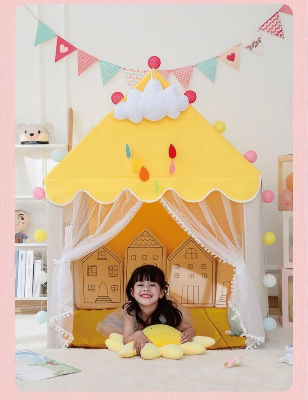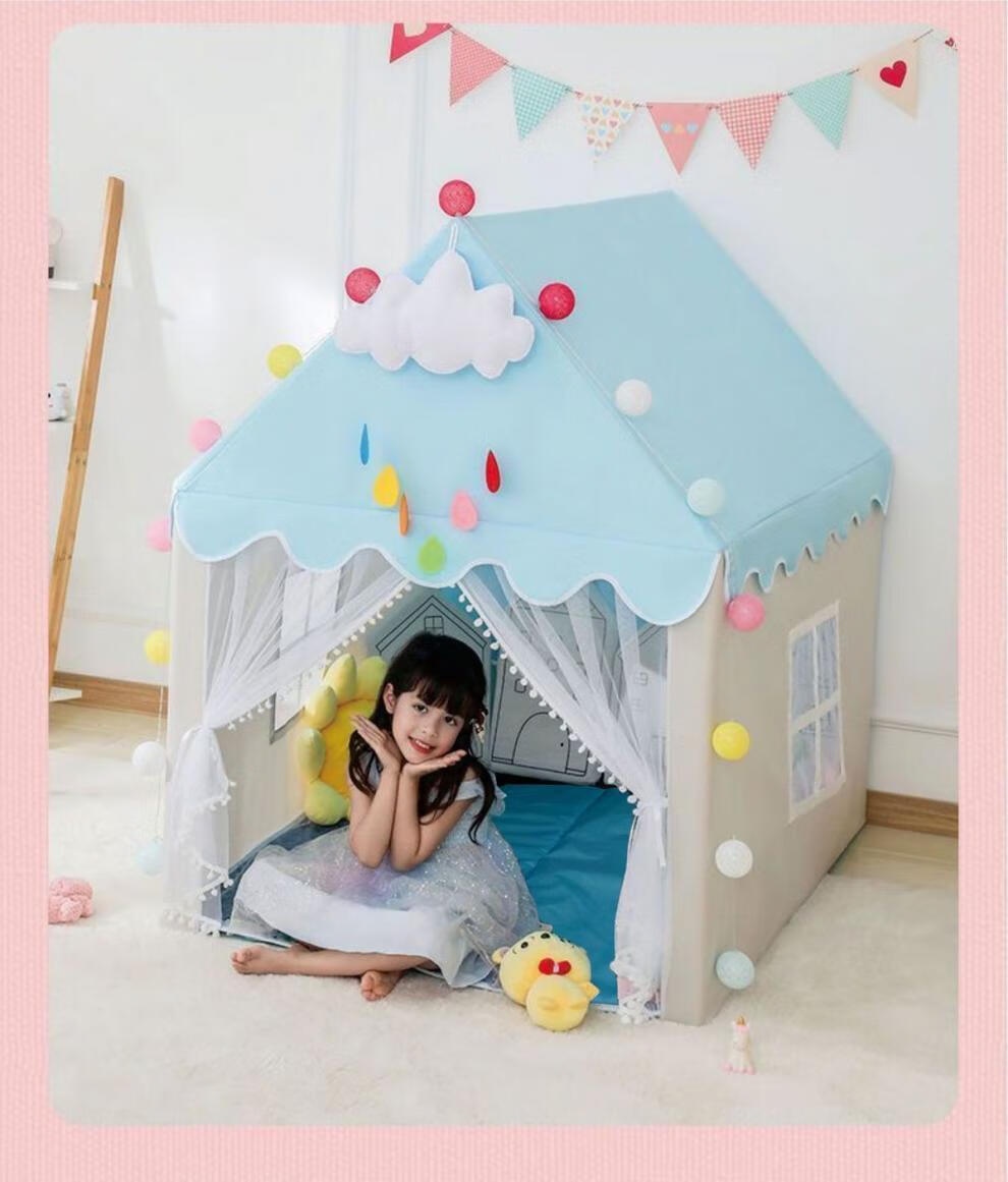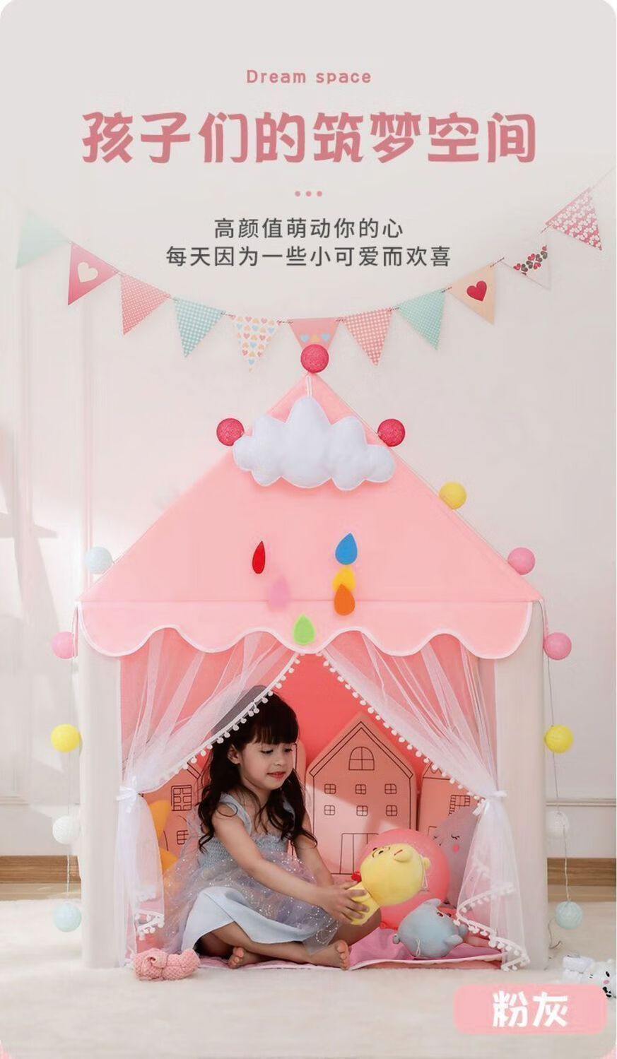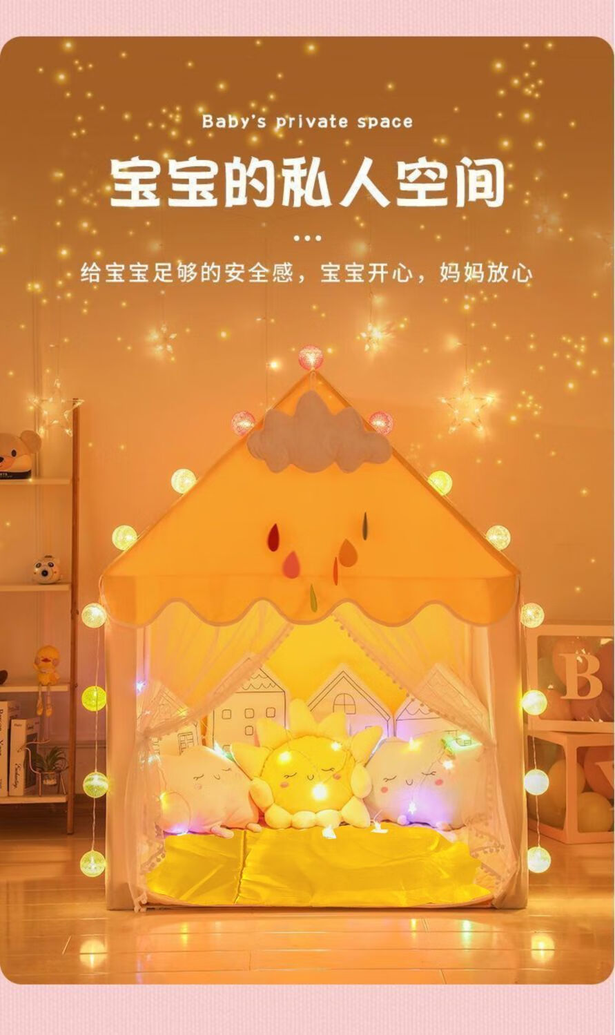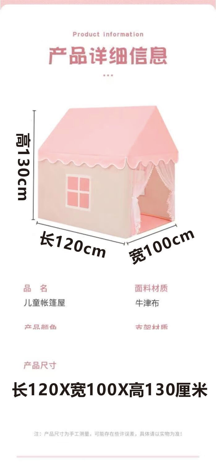 婕茵桐秘密基地小屋帐篷 游戏屋小房子城堡公主屋睡觉过家家玩具蚊帐 粉色帐篷【PVC杆】 帐篷+棉垫+彩灯+云朵+蝴蝶
