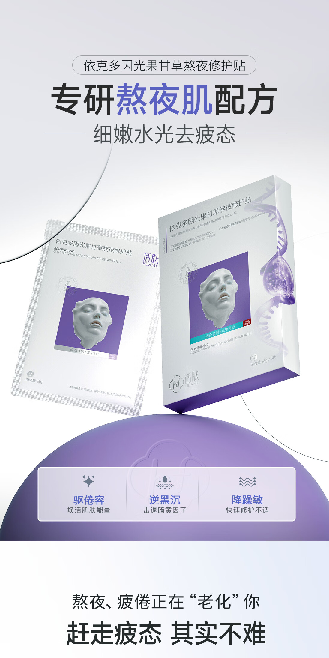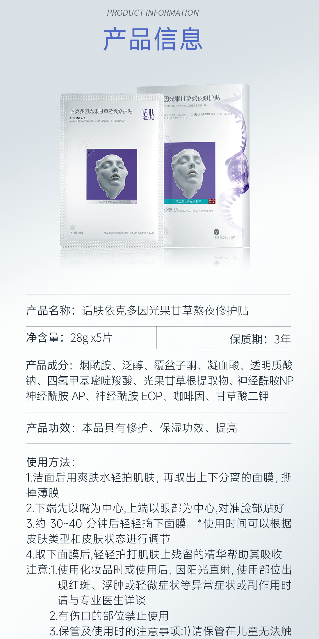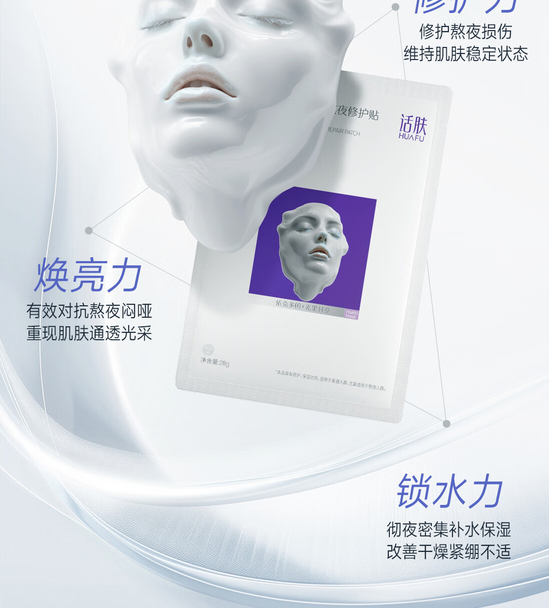 话肤HUAFU 依克多因光果甘草熬夜修护贴面膜 嫩肤抗暗沉水嫩肌肤礼物 1盒送1片