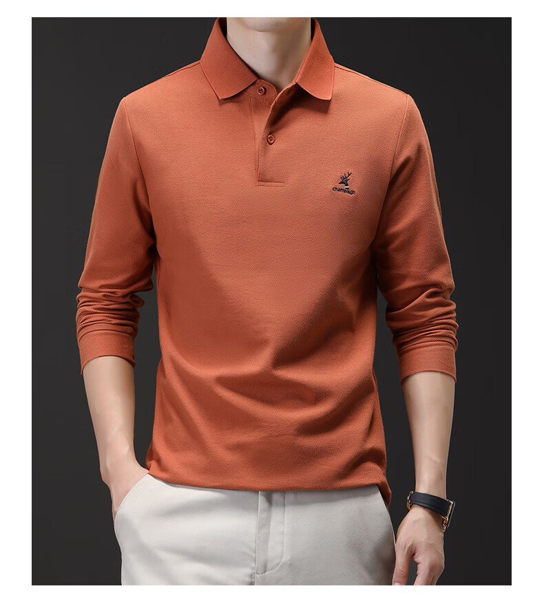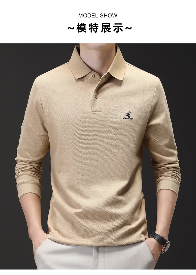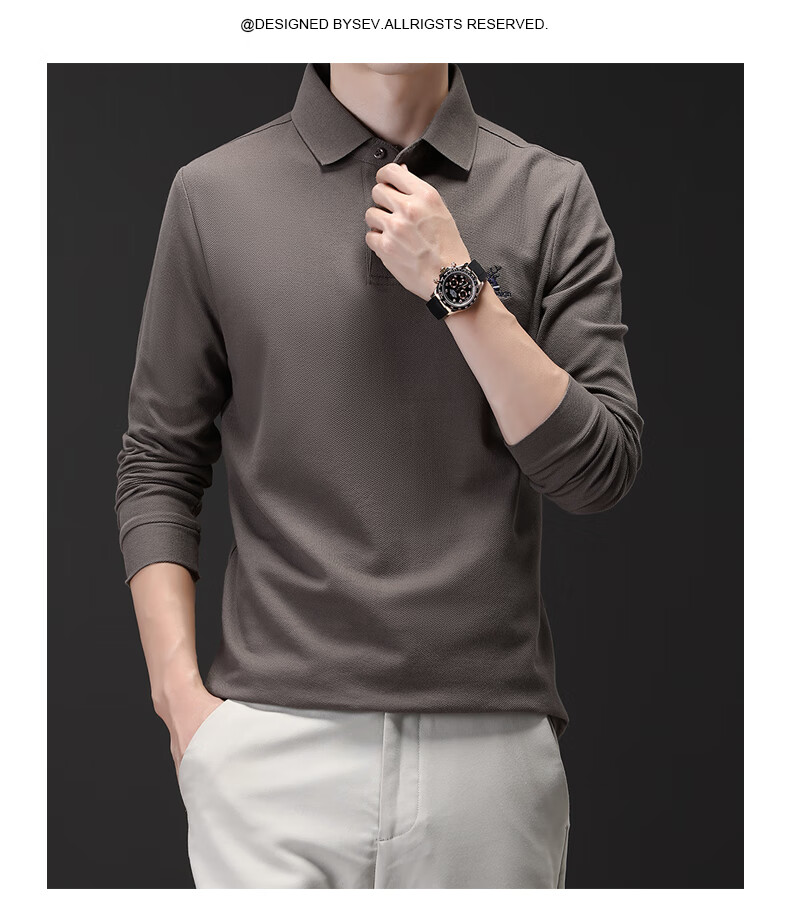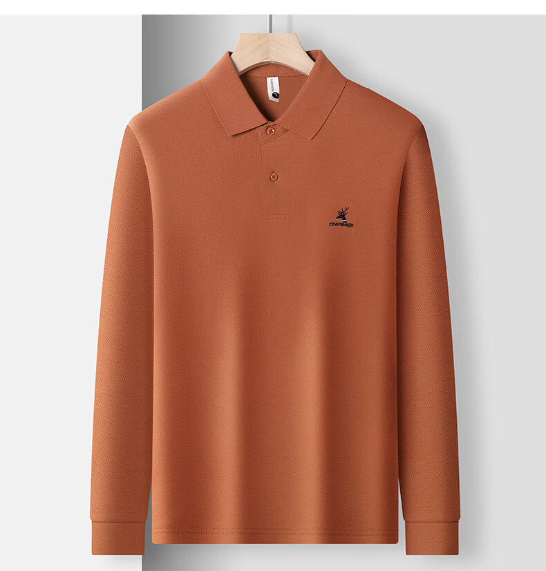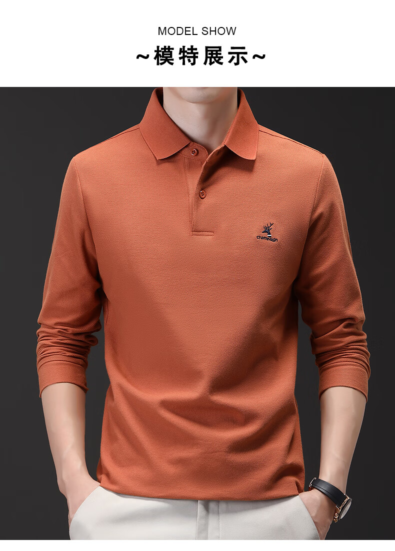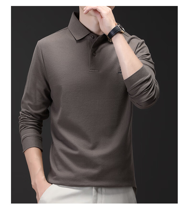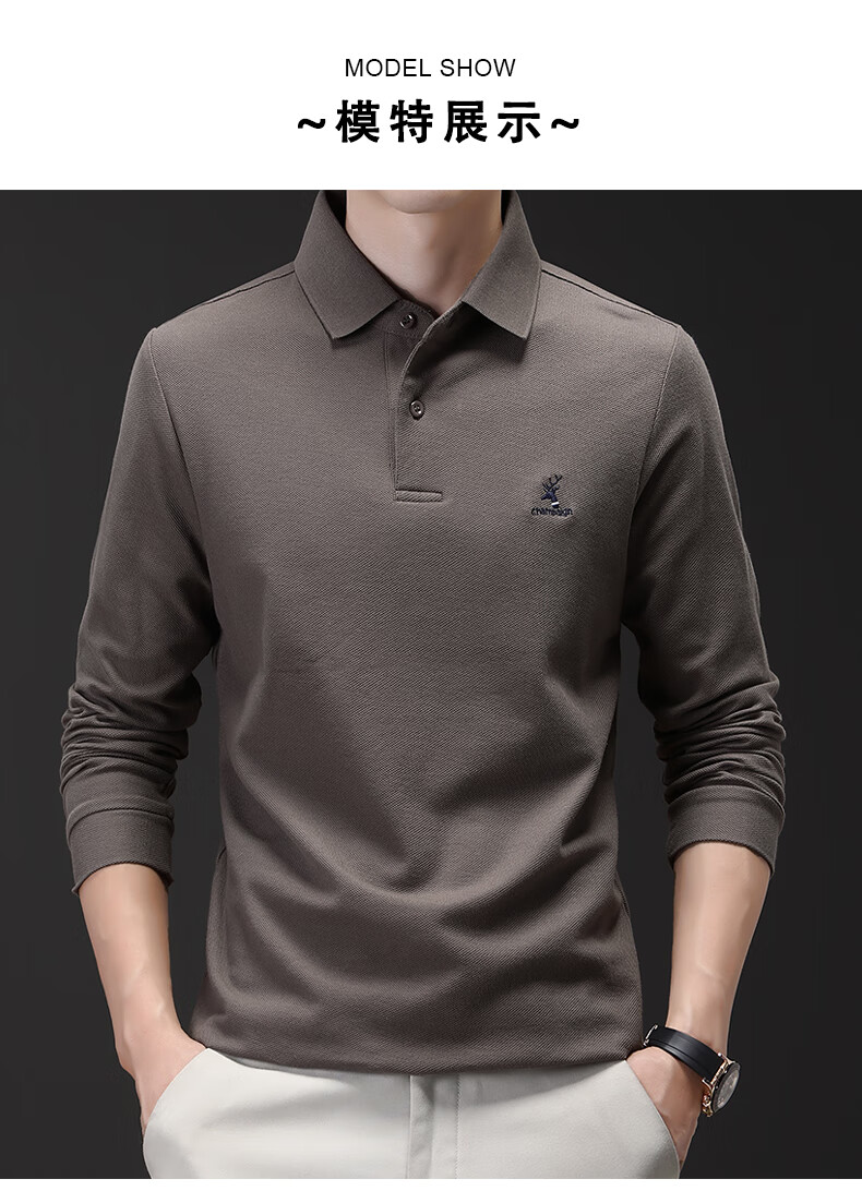 罗蒙(ROMON)2024秋季新款纯棉长袖t恤男翻领加绒保暖上衣男装体恤打底polo衫 24549-咖色 XL 【建议140-160斤】